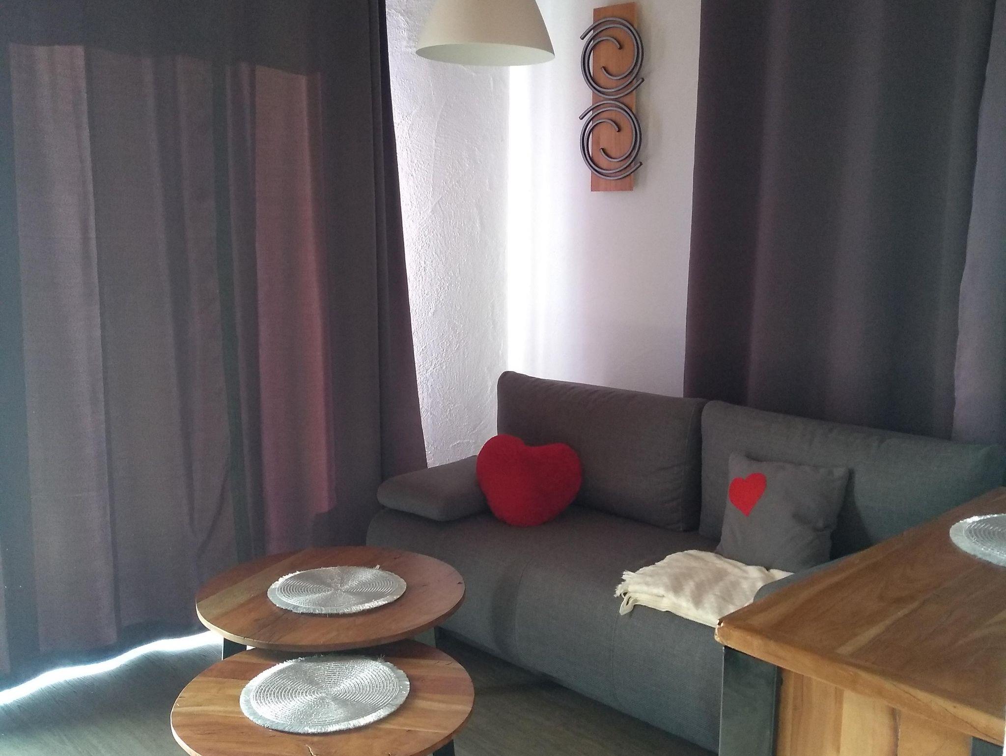 Die Ferienwohnung verfügt über ein Schlafzimmer mit Doppelbett, einem offenen Wohn- / Essbereich, eine eingerichtete Küche (mit Kühl-/Gefrierkombination, Backofen, Ceranfeld, Dunstabzugshaube, Spülmaschine, Kaffeemaschine, Toaster, Wasserkocher, u.a.) mit Sitzgelegenheit, einem Bad und einem Balkon.