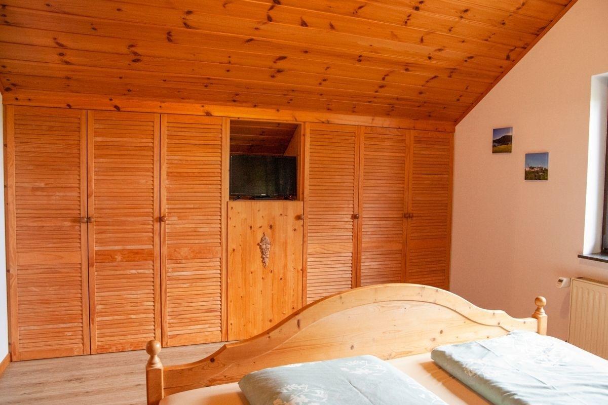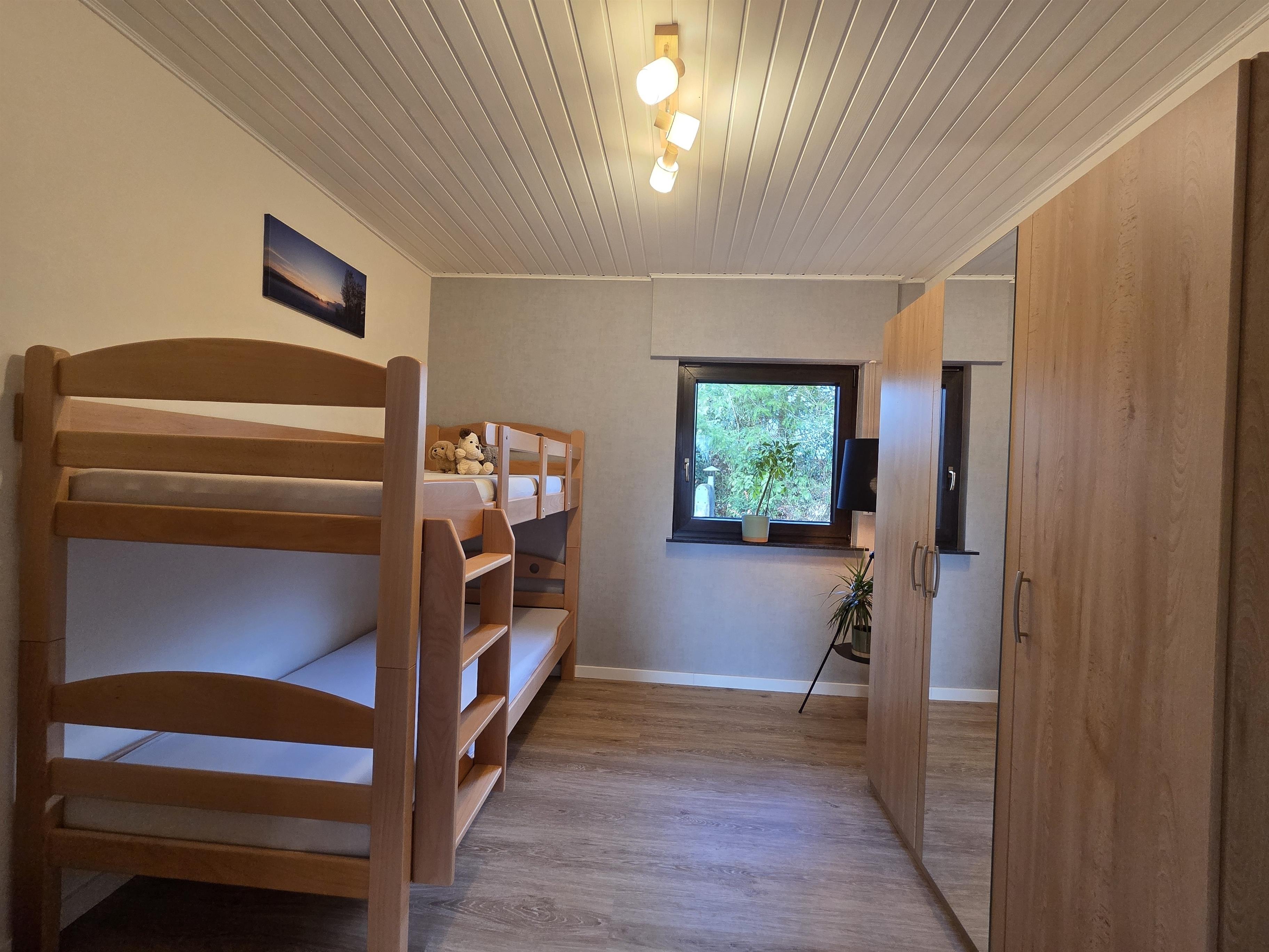 Die zwei Schlafzimmer mit Doppelbetten in der ersten Etage verfügen über genügend Stauraum sowie in jedem Raum über einen Fernseher. Es steht zudem ein seprerates WC im 1. OG zur Verfügung.