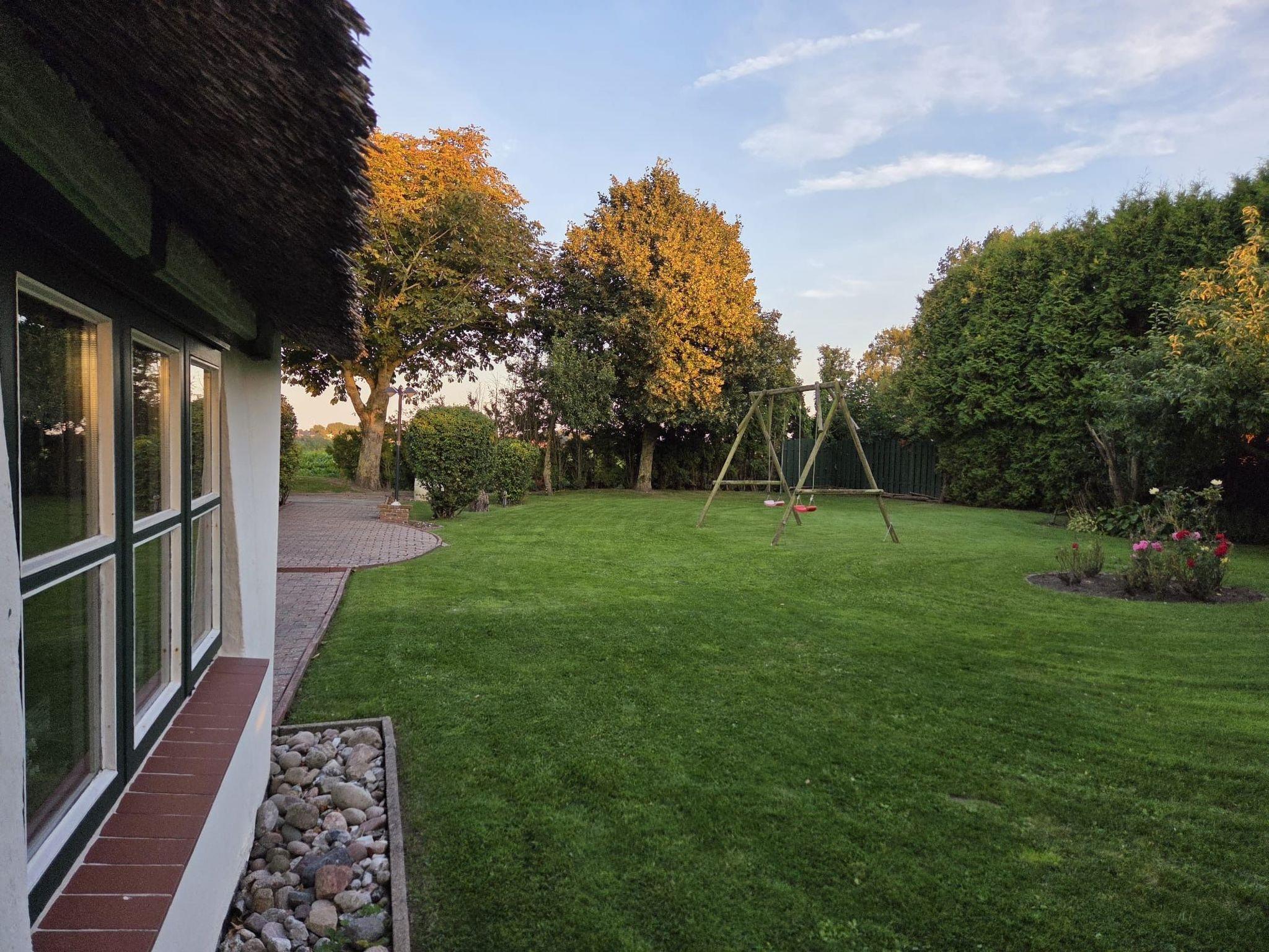 The beautifully ingrown property is approx. 1,000 sqm in size and has a large, well-kept, romantic garden with sunbathing lawn, terrace, barbecue, beach chair, play facilities, swing etc... Should it rain, you can make yourself comfortable on the partially covered terrace.