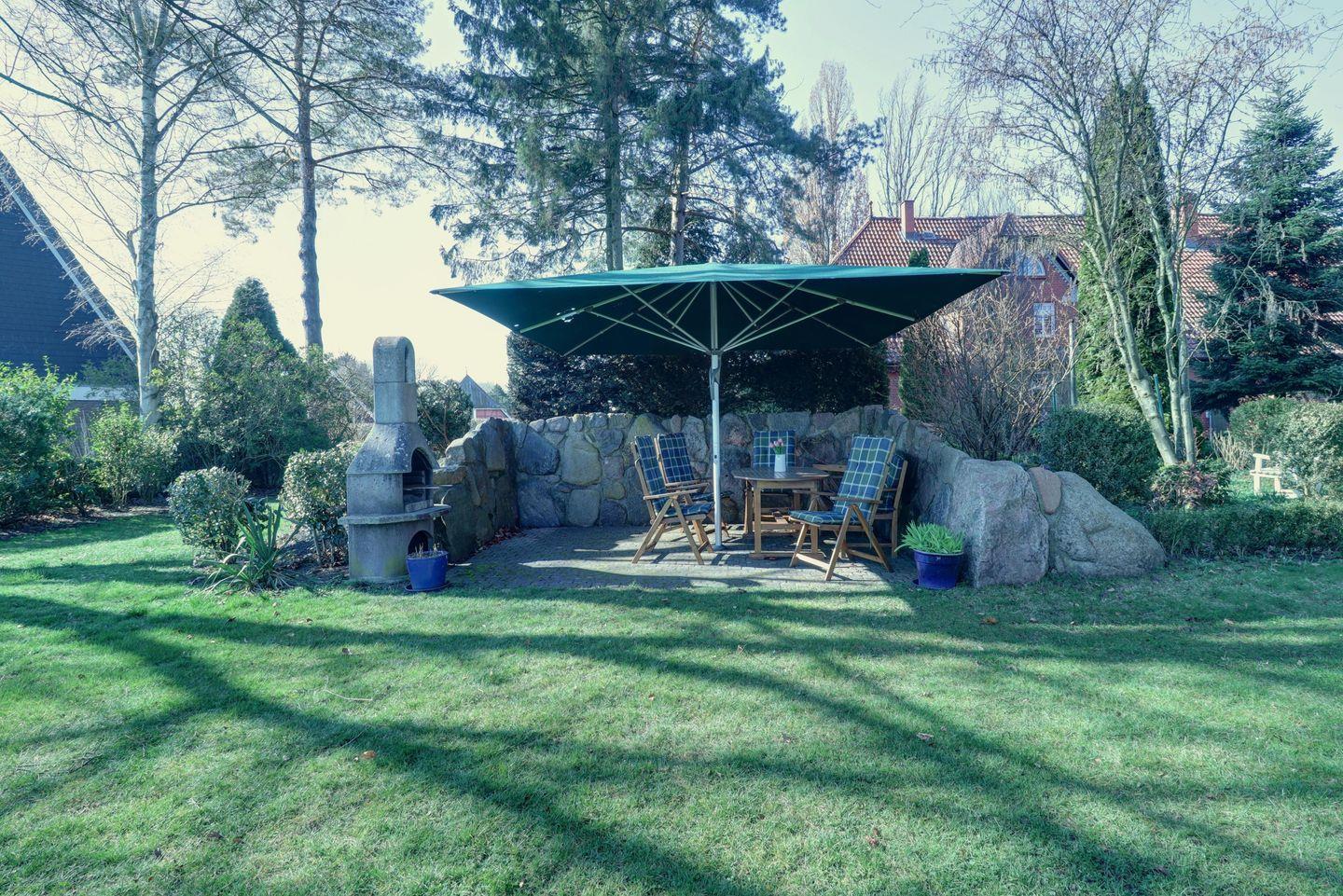 Draußen erwartet Sie Ihr ganz persönliches Urlaubsglück: ein Kohlegrill sorgt für gesellige Abende, während Kinder sich über Schaukel und Spielplatz freuen.