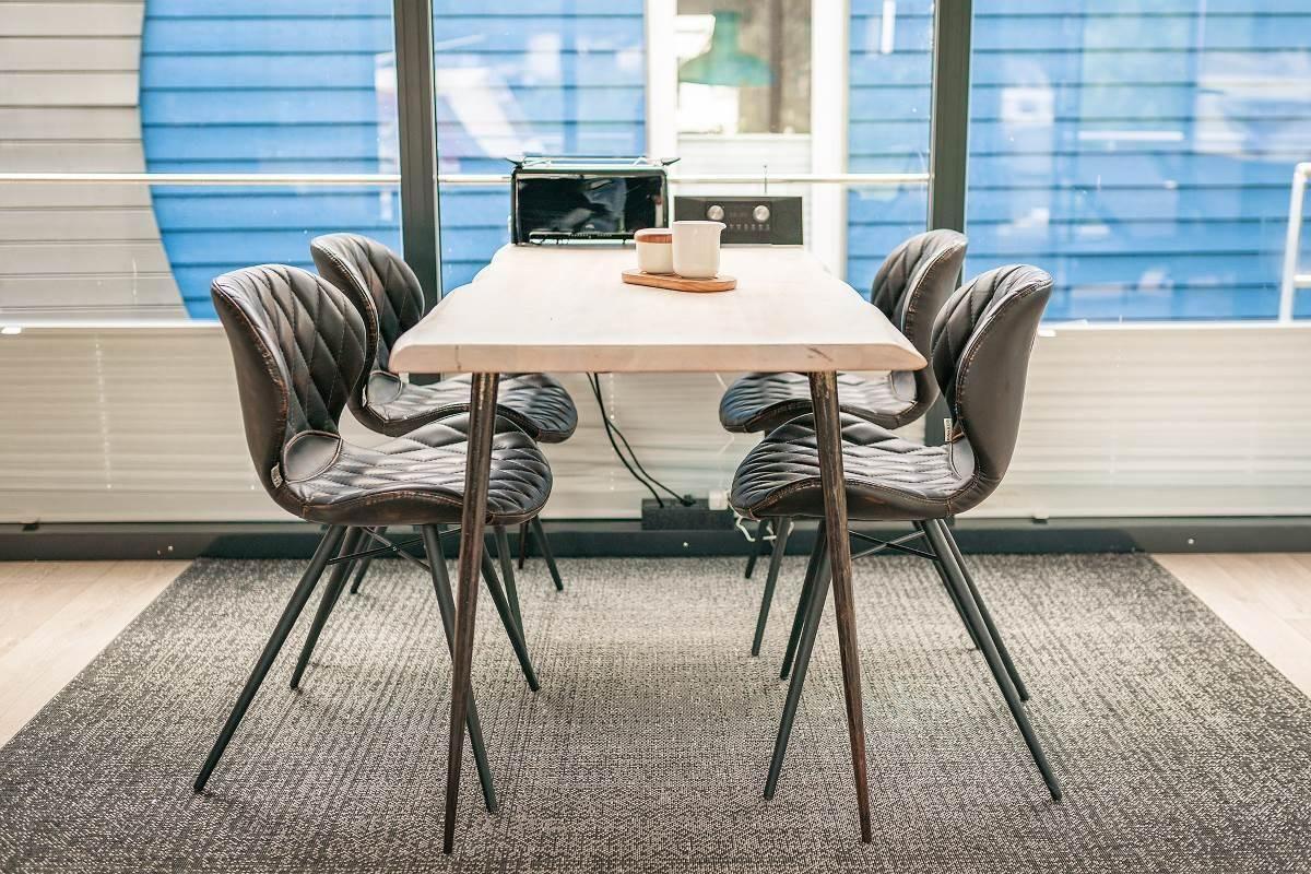 Auf 44 m² stehen Ihnen insgesamt 3 Zimmer zur Verfügung, darunter 2 Schlafzimmer und 1 Badezimmer. Das Floatinghouse bietet Schlafmöglichkeiten für bis zu 4 Personen und eignet sich damit für Paare, Familien und alle, die eine ruhige, abgelegene Auszeit suchen – ebenso für sportlich Aktive oder romantische Tage am See. Der Wohnbereich ist mit Sofa, Sofaecke, TV und Radio ausgestattet; ein Esstisch und ein separater Essbereich runden den gemeinsamen Aufenthaltsraum ab. Die offene Küche ist zum Wohnzimmer hin gestaltet und vollständig für die Selbstversorgung eingerichtet: Ceran-Herd, Kühlschrank mit Gefrierfach (Fach im Kühlschrank), Spülmaschine, Kaffeemaschine, Wasserkocher, Toaster sowie Küchenutensilien, Geschirr und Besteck sind vorhanden. Für gesellige Mahlzeiten im Außenbereich steht Ihnen ein Elektrogrill zur Verfügung.
