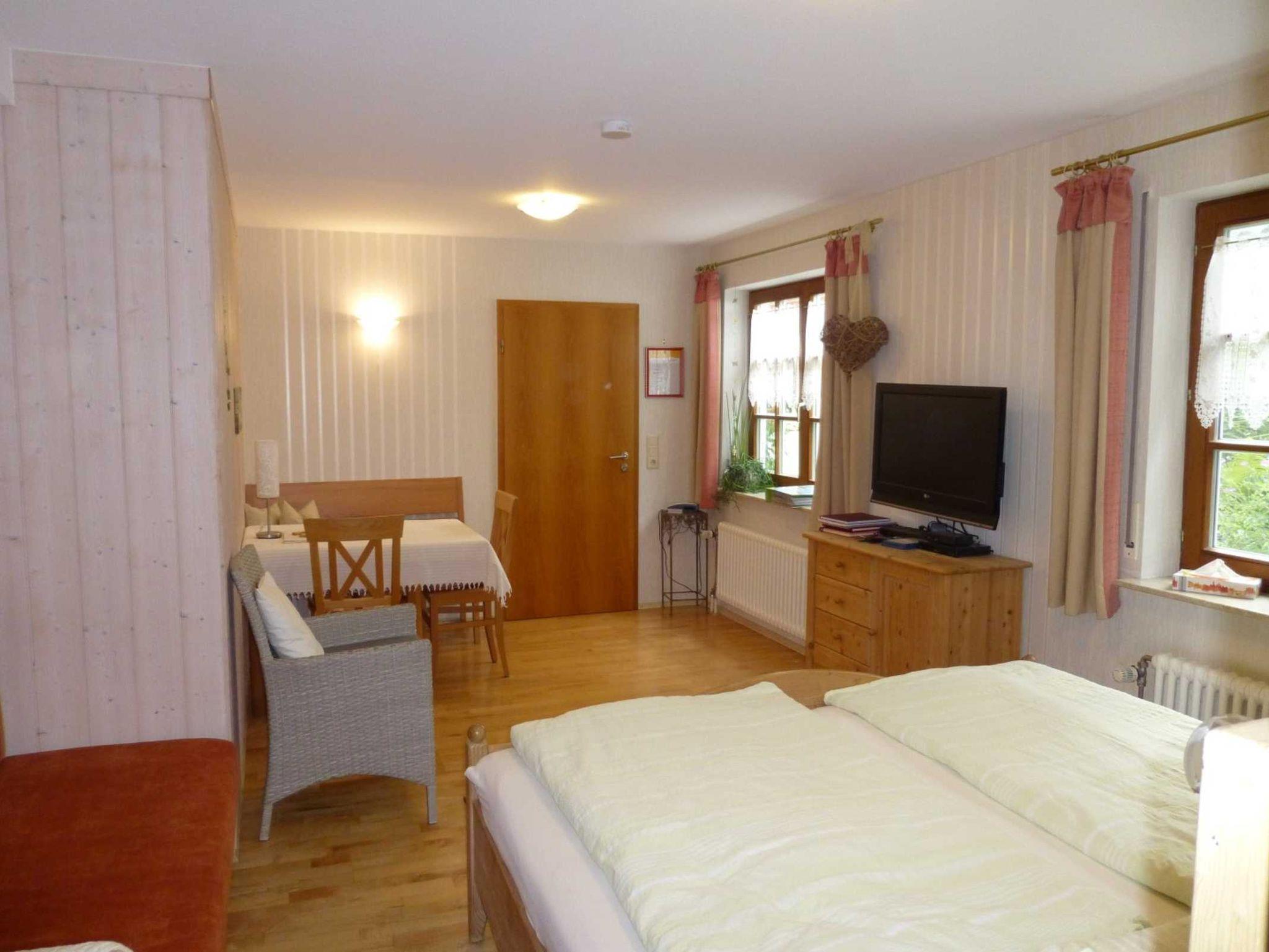 Die FEWO besteht aus einem Wohn/Schlafraum mit Sitzecke, Duschbad, WC. Der Wohn/Schlafraum ist mit einem großen Doppelbett, Kleiderschrank sowie einer Sitz/Schlafcouch für die 3. Person ausgestattet. Ein Flachbildschirm, DVD-Player, CD-Player stehen zur Verfügung. Das Duschbad hat eine geräumige Dusche, großer Spiegel und Ablageflächen, Waschbecken, WC, Fön etc .