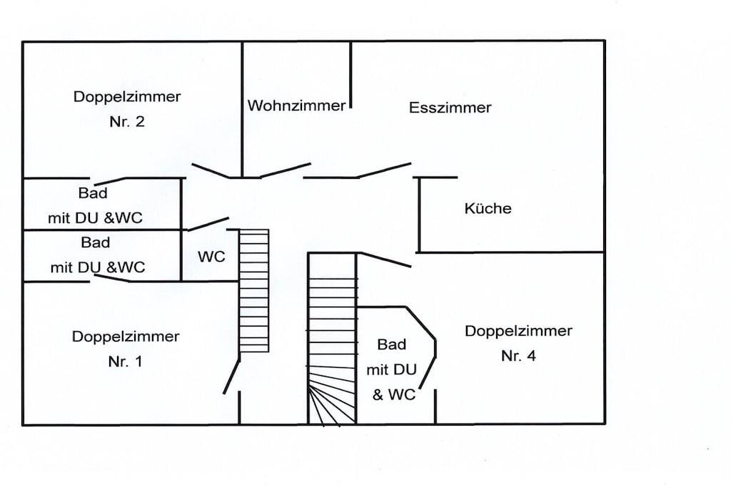 Mellomliggende etasje: (drying room(tørketrommel, vaskemaskin, strykebrett, strykejern, tørkeskap)) i 2. etasje: (Kjøkken(, , Åpent kjøkke, vedovn, komfyr med kokeplater, vannkoker, brødrister, kaffetrakter, stekovn, mikrobølgeovn, oppvaskmaskin, kjøleskap, fryser), Stue/spisestue(, , , bibliotek, TV, spisebord, radio, CD-spiller, leketøy, insekt skjermer), soveværelse(, , 1 persons sovesofa, dobbeltseng, TV, radio, insekt skjermer), soveværelse(, , 1 persons sovesofa, dobbeltseng, TV, radio, insekt skjermer), soveværelse(, , dobbeltseng, TV, radio, insekt skjermer), bad(, WC, dusj, dusj, håndvask, Hårtørker, insekt skjermer), bad(, WC, dusj, dusj, håndvask, Hårtørker, insekt skjermer), bad(, WC, dusj, dusj, håndvask, Hårtørker, insekt skjermer), guest toilet(, WC, håndvask)) Loftet: (terrassemøbler(, , , radio, bordfotball, insekt skjermer)) , , Internett-tilgang, Førstehjelp, balkon(balkon), oppvarming, hage(, Plen, radio, grill, grill, hagemøbler, solsenge, sandkasse, Hagebu, Huskestativ), parkering