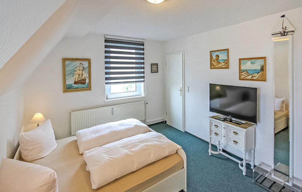 Dette av to røykfrie ferierom ligger i øverste etasje i et bolighus på eierens 1500 kvadratmeter store eiendom, ca. 10 minutters gange fra Østersjøstranden. Du finner shoppingmuligheter og en restaurant mindre enn 500 meter unna. Ferierommene er utstyrt med dobbeltseng, radio, flatskjerm-TV, sittegruppe, kjøleskap, kaffemaskin og dusj/WC. Badet i rom 2 er romlig adskilt fra boenheten og kan nås via den lille korridoren. Her er det også mulighet for å vaske opp.