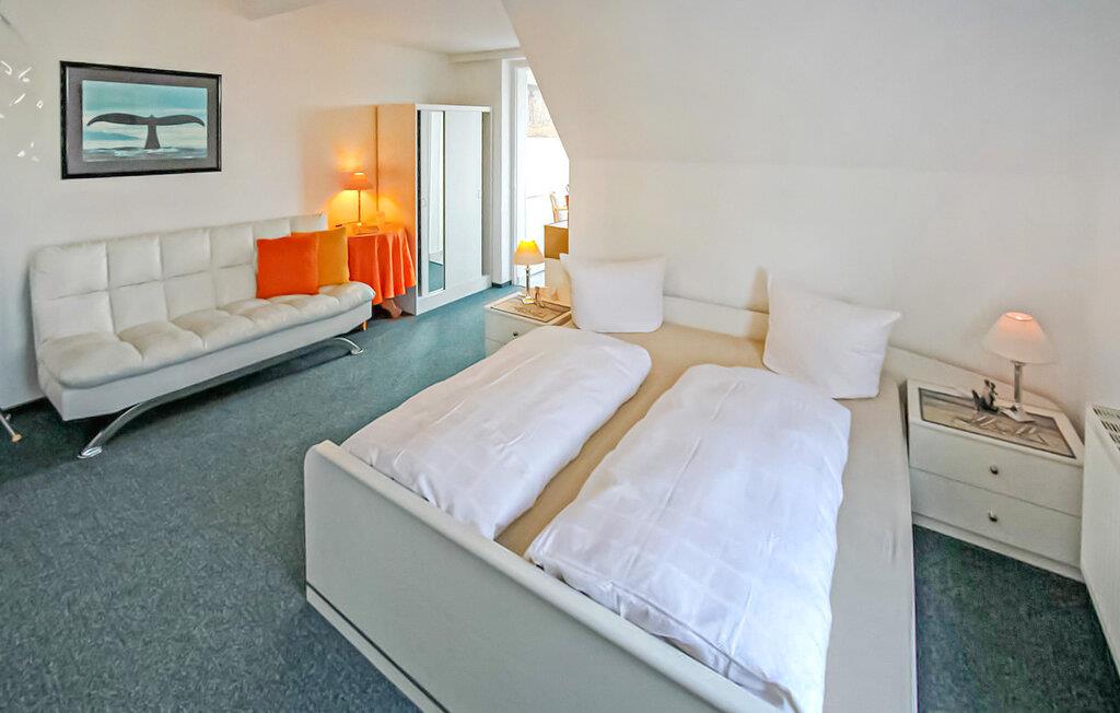 Ferierommet ditt i øverste etasje er utstyrt med: Dobbeltseng, radio, flatskjerm-TV, sittegruppe, kjøleskap, kaffemaskin og dusj/WC.