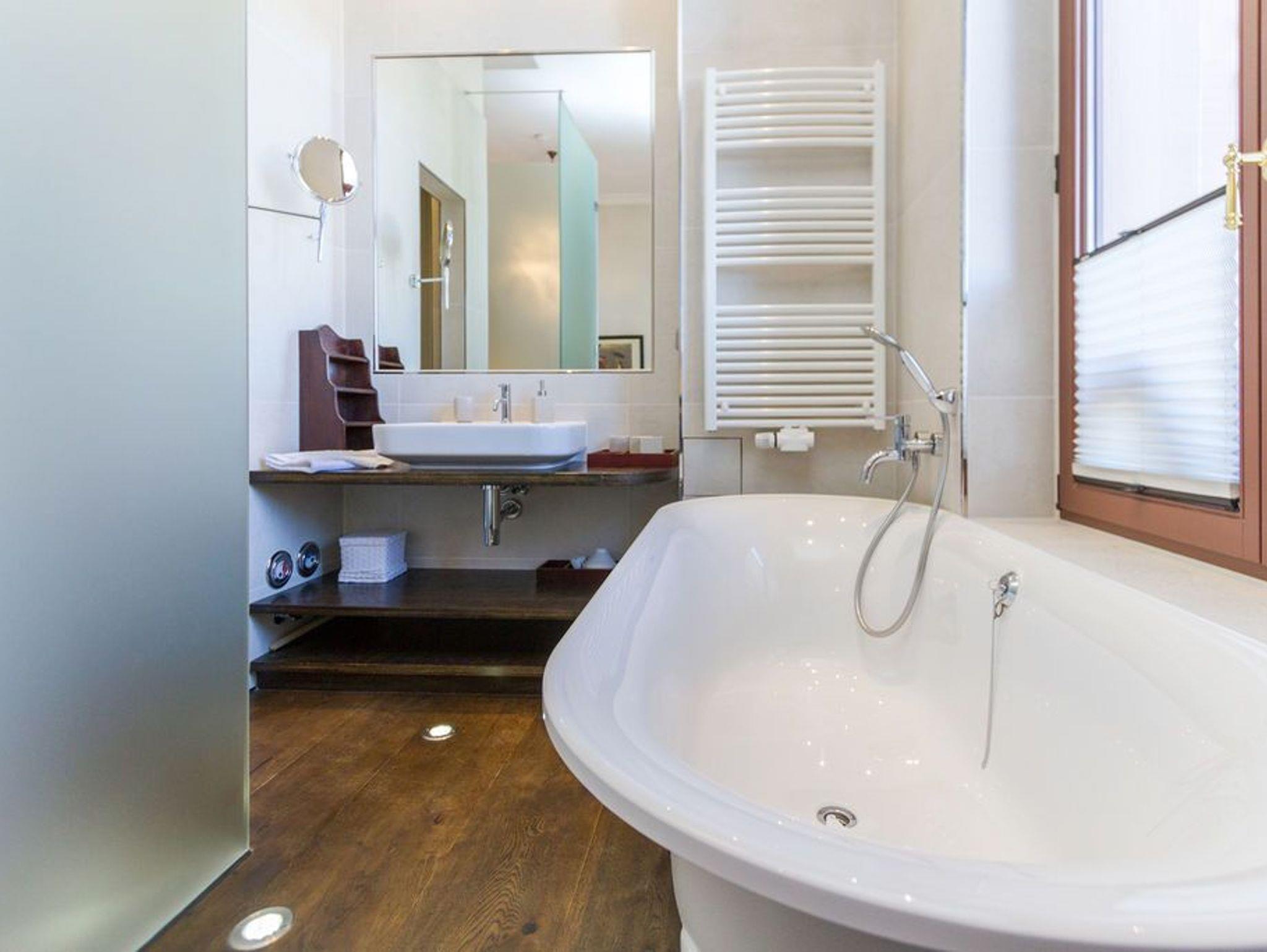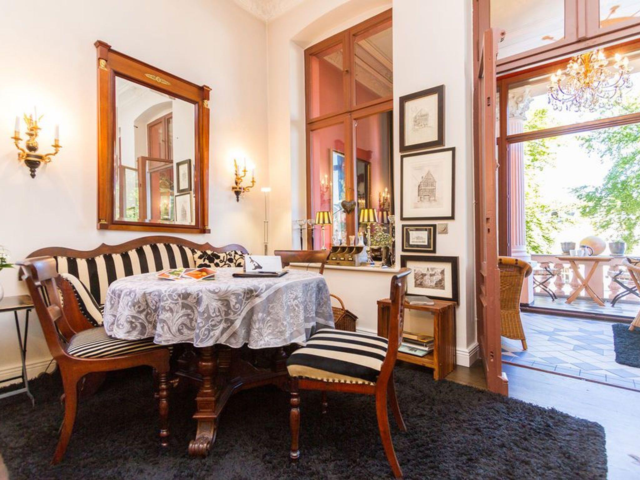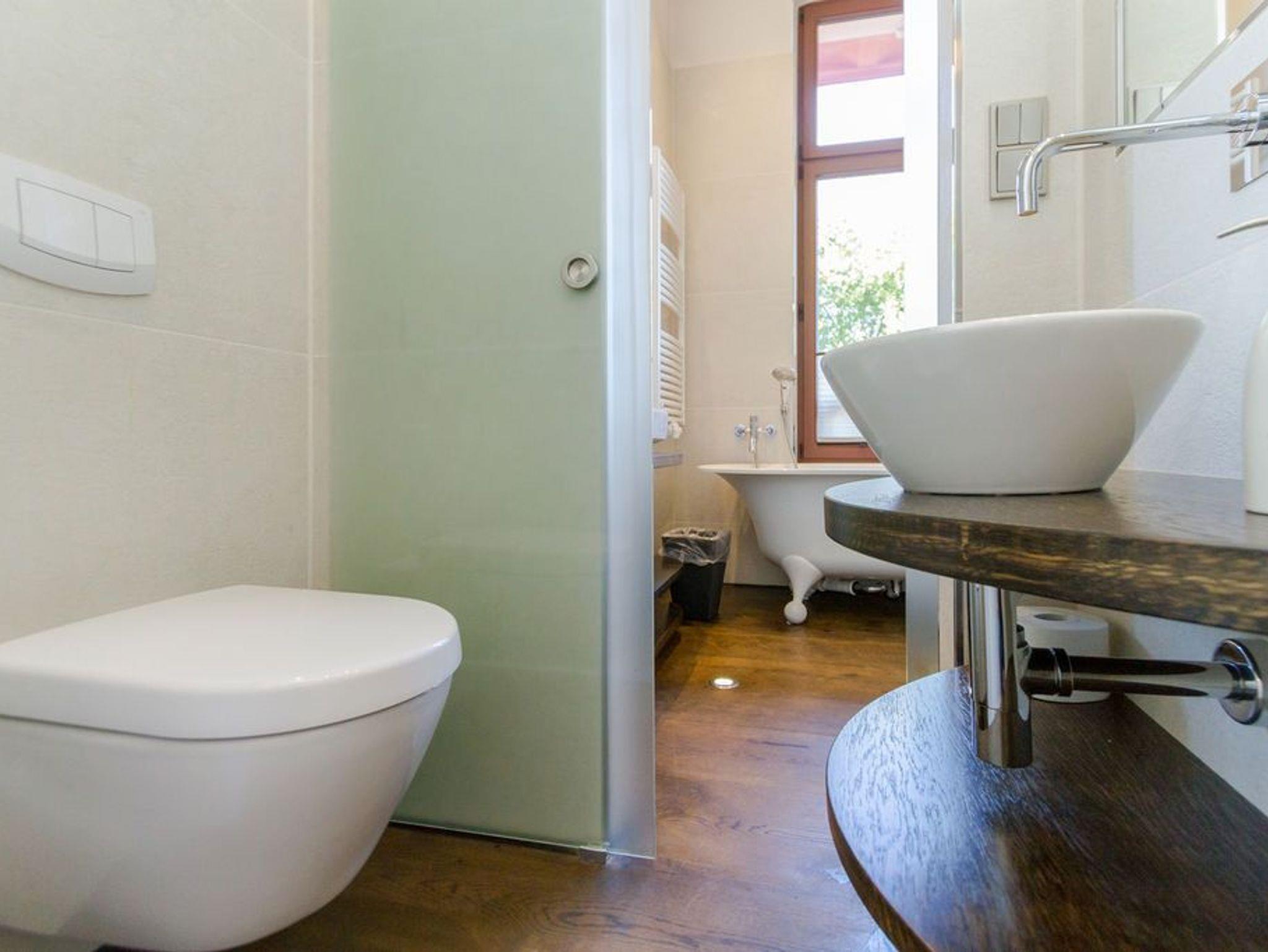 Die Ferienwohnung 6 ist im Hochparterre der Villa Hintze gelegen, verfügt über ein Wohnzimmer, eine verglaste Veranda, eine offene, komplett ausgestattete Küche, ein Schlafzimmer mit Doppelbett, ein Badezimmer offen im Schlafzimmer integriert mit Dusche und Badewanne, WC separat und einen großzügigen Balkon. Für die 3. Person steht eine Aufbettungsmöglichkeit im Wohnraum zur Verfügung. Für ein Kleinkind kann im Vorwege ein Kinderreisebett bestellt werden. Das W-Lan kann kostenfrei genutzt werden.