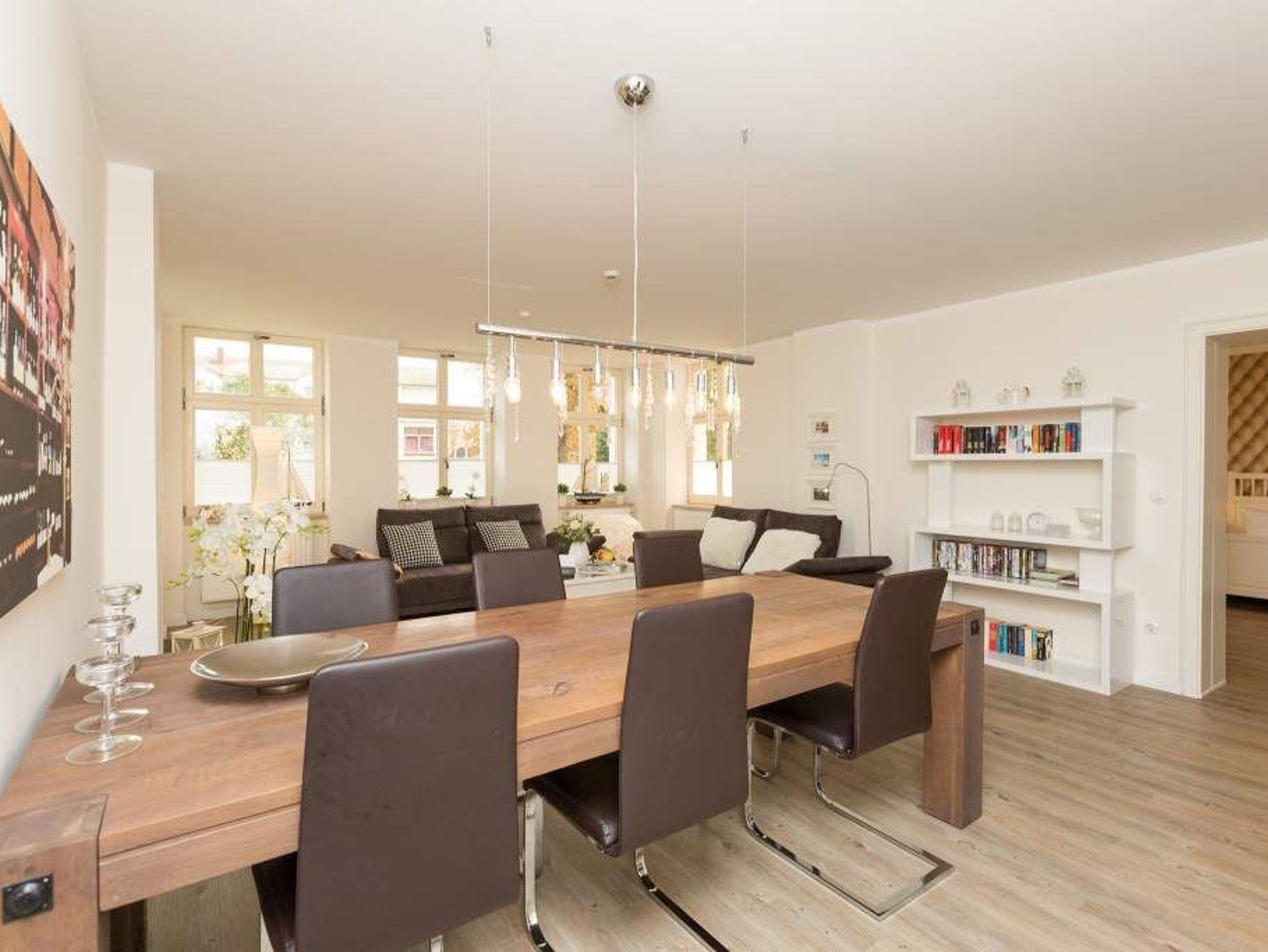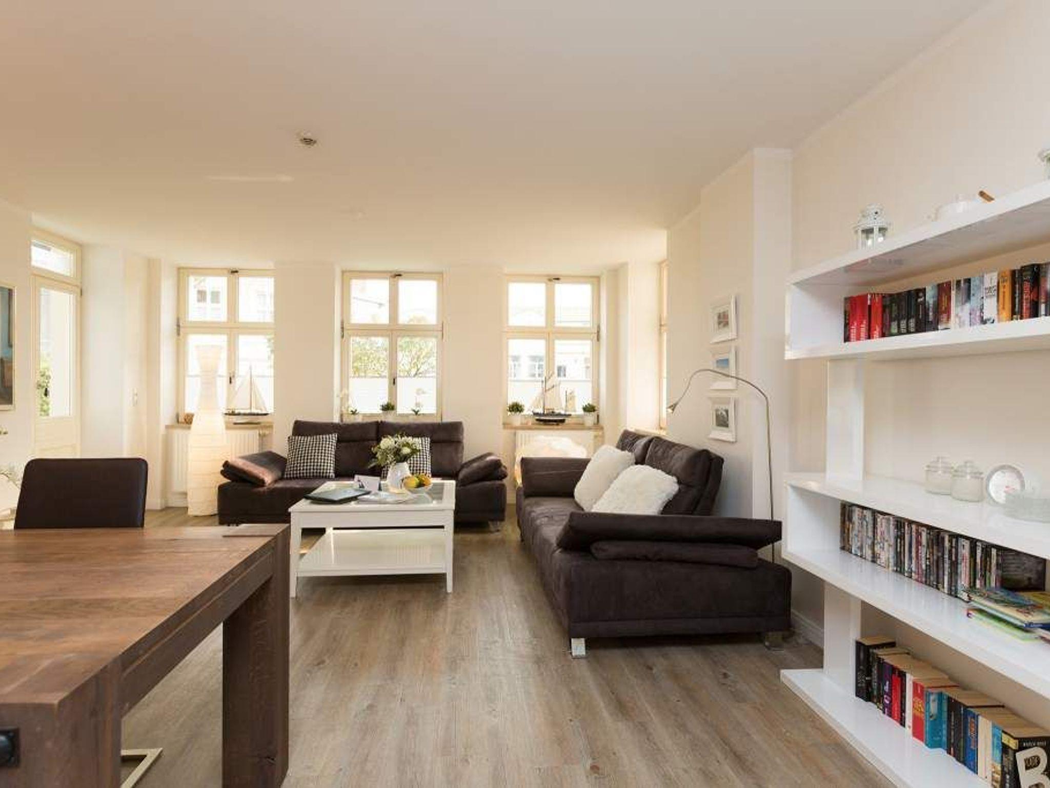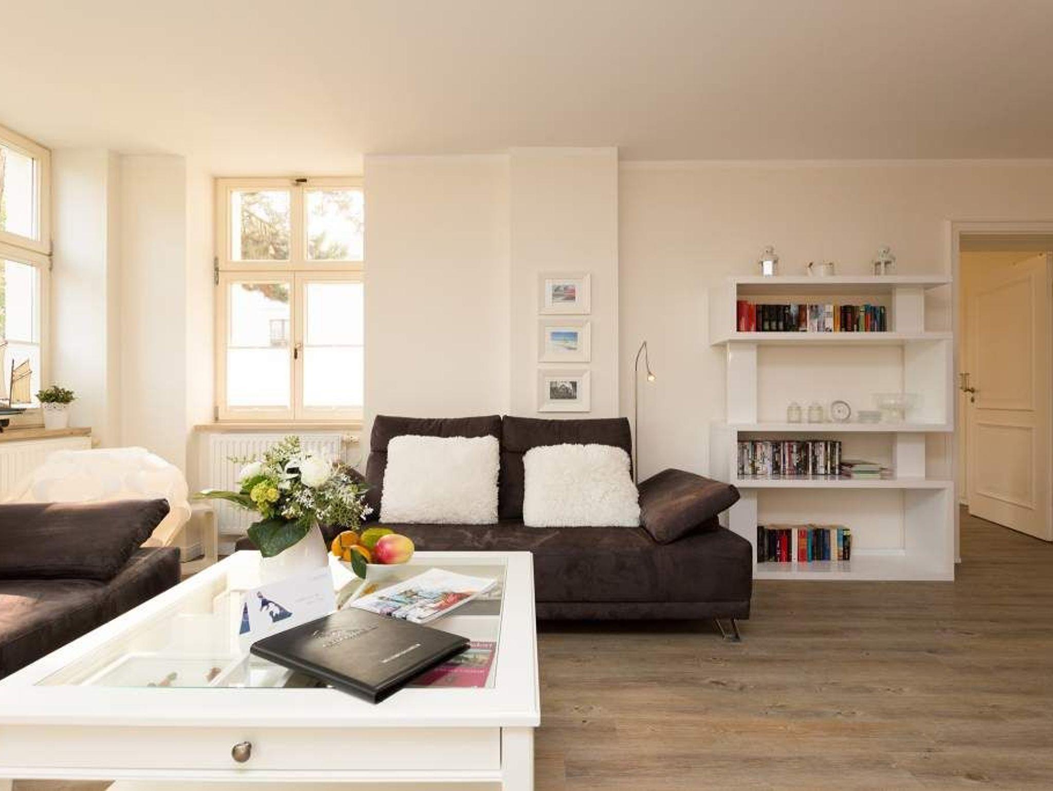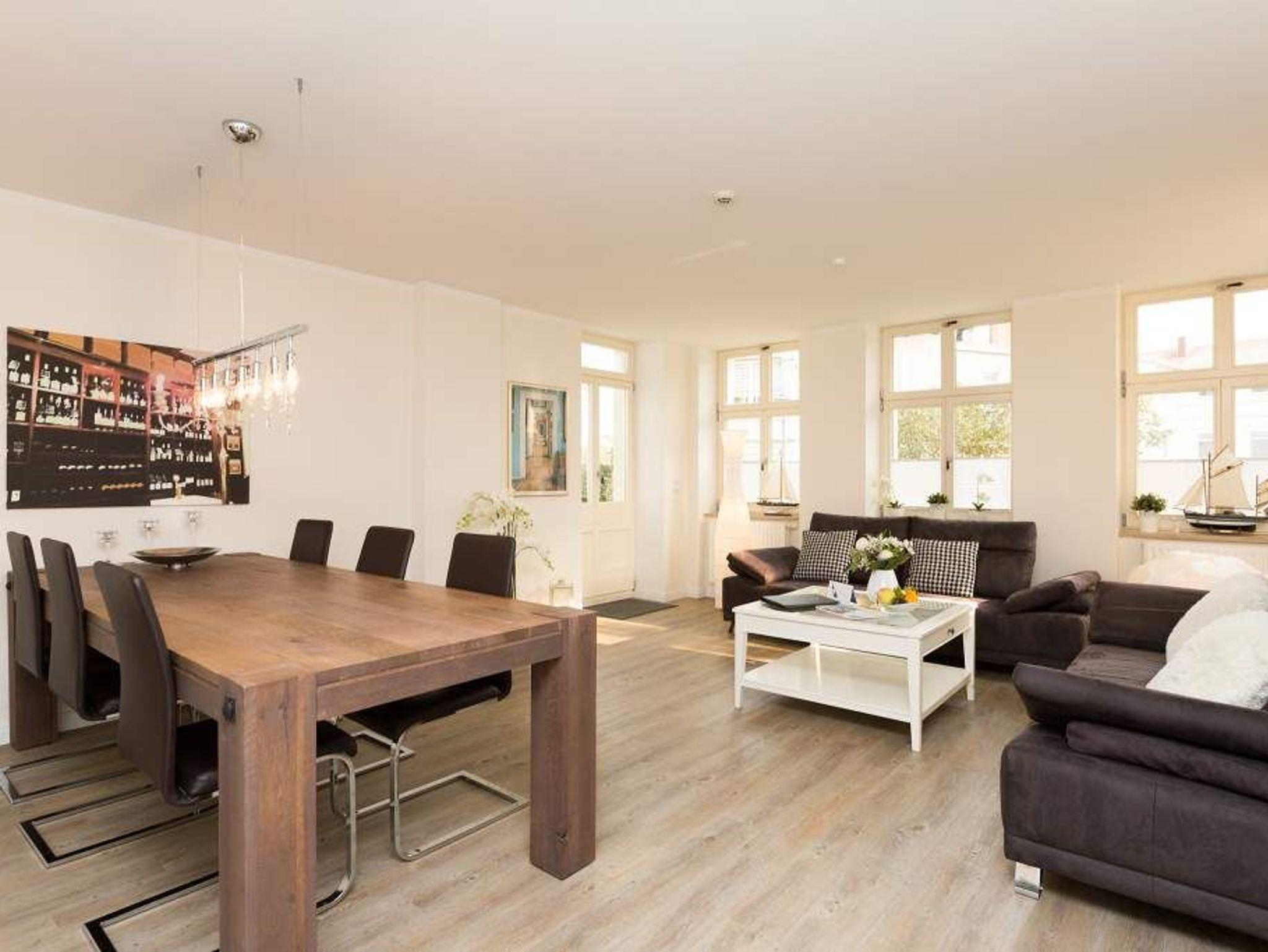 Diese großzügige 3-Raum-Ferienwohnung im Erdgeschoss bietet mit rund 100 Quadratmetern viel Platz für entspannte Urlaubstage. Ideal geeignet ist sie für zwei bis vier Erwachsene sowie ein Kind bis zwölf Jahre (keine Kleinkinder). Der helle Wohnraum bildet den Mittelpunkt der Wohnung. Eine komfortable Sitzgruppe lädt zum Verweilen ein, am großen Esstisch ist ausreichend Platz für gemeinsame Mahlzeiten oder einen Spieleabend. Die separate Küche ist praktisch geschnitten und ermöglicht ungestörtes Kochen. Zwei Schlafzimmer sorgen für erholsamen Schlaf. In einem Zimmer stehen ein Doppelbett, ein zusätzliches Jugendbett sowie ein Fernseher zur Verfügung. Das zweite Schlafzimmer ist ebenfalls mit einem Doppelbett ausgestattet, das auf Wunsch getrennt gestellt werden kann, auch hier gehört ein TV zur Ausstattung. Das moderne Bad überzeugt mit einer großzügigen Regenwalddusche und WC. Auf der Terrasse können Sie den Tag an der frischen Luft beginnen oder entspannt ausklingen lassen. Gartenmöbel stehen bereit. Ein PKW-Stellplatz befindet sich direkt am Haus. Für einen angenehmen Start in den Urlaub sind die Betten bei Ihrer Anreise bereits bezogen, Handtücher liegen als Erstausstattung für Sie bereit. WLAN nutzen Sie kostenfrei. Eine Wohnung, die Komfort, Platz und Ruhe auf angenehme Weise verbindet.