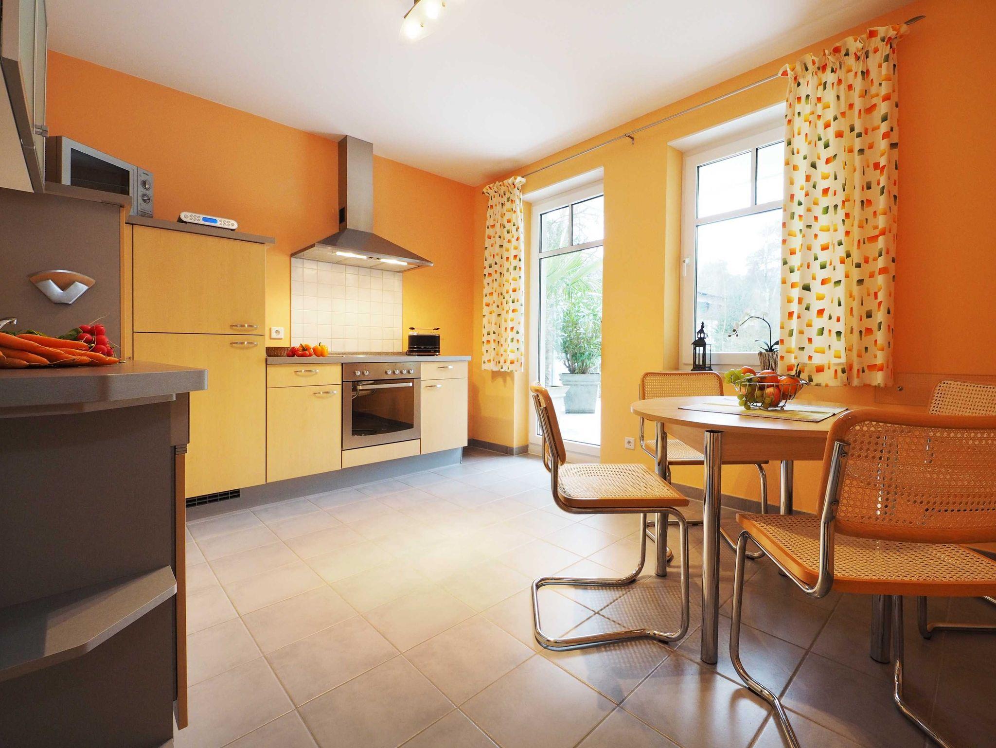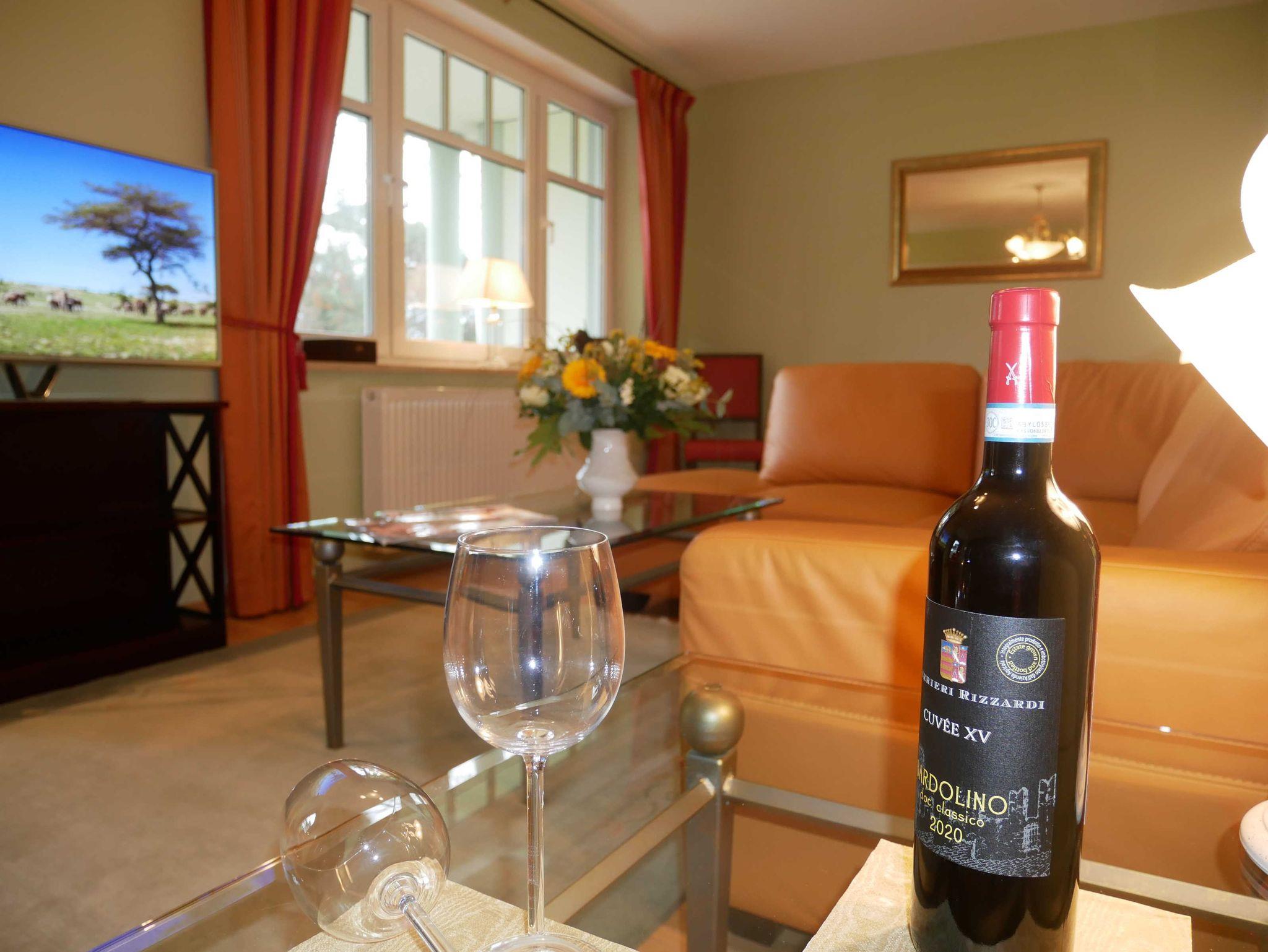 Die komfortable 2-Raum-Ferienwohnung befindet sich im Ergeschoss der Villa und verfügt über ein Wohnzimmer und ein Schlafzimmer, 1 voll ausgestattete separate Küche mit Essplatz und 2 Terrassen (Meer- und Südseite). Das Badezimmer ist mit Dusche/WC und einer Badewanne ausgestattet. Die Wohnung verfügt über Laminatboden, antike Möbel und moderner Funktionsausstattung wie FLAT-TV und W-LAN.