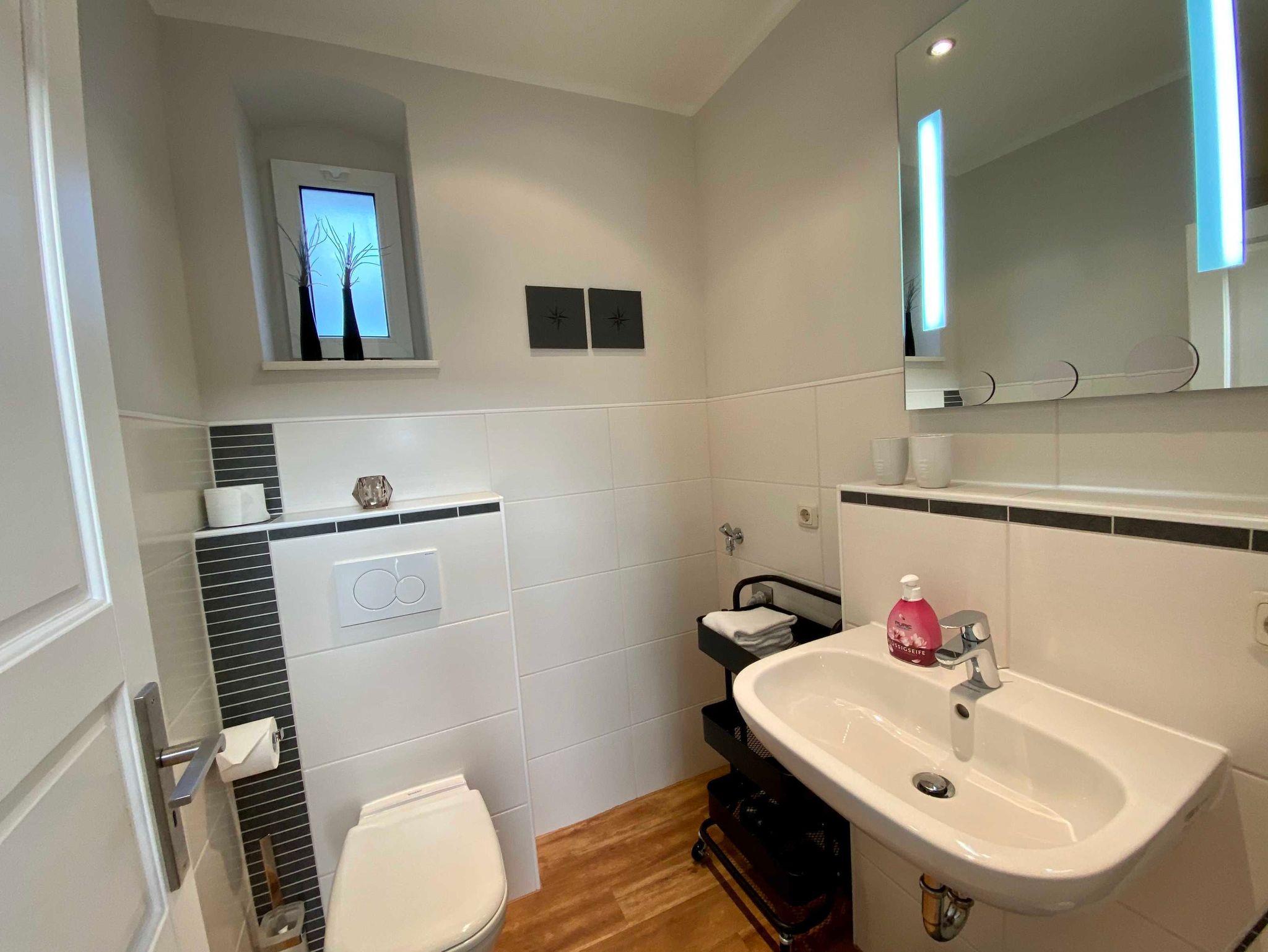 Auch der Anbau der Villa Anna wurde liebevoll saniert. Hier entstanden zwei schöne Ferienwohnungen, im Erdgeschoss die Kleine Anna, die ebenso modern und stilsicher eingerichtet wurde. Auf dem Grundstück gibt es pro Ferienwohnung einen Stellplatz und eine Aufladestation für E-Autos inklusive.