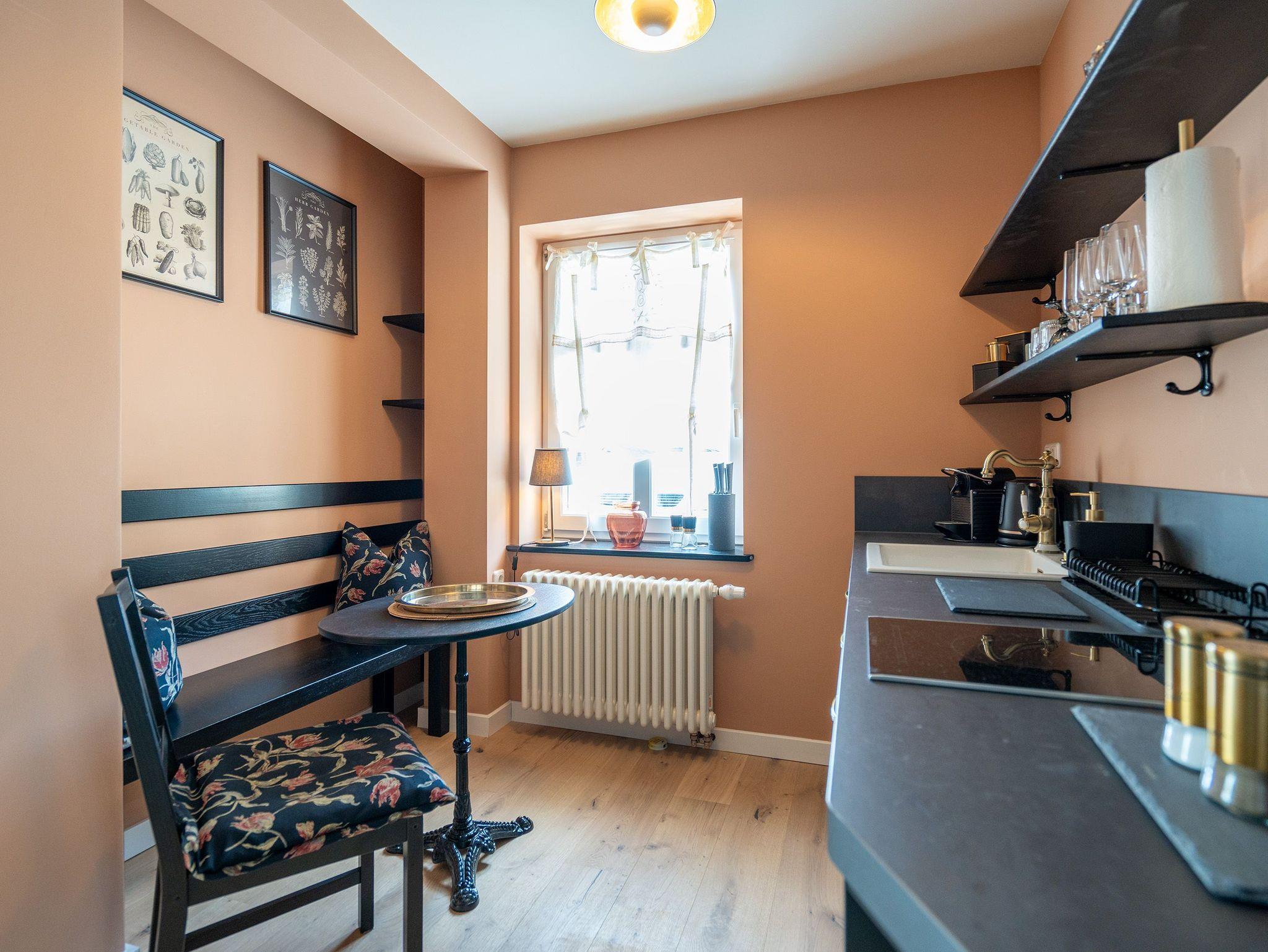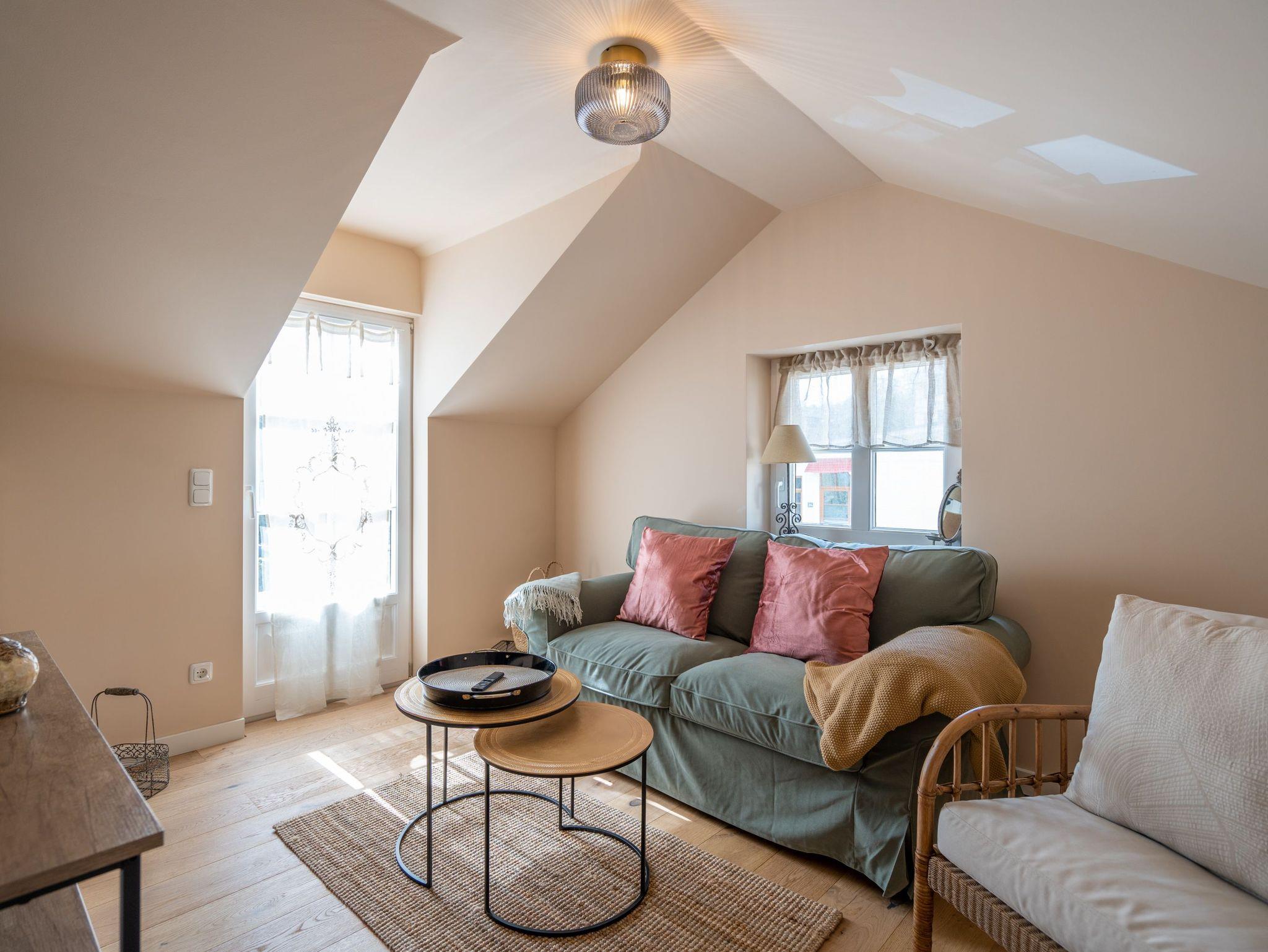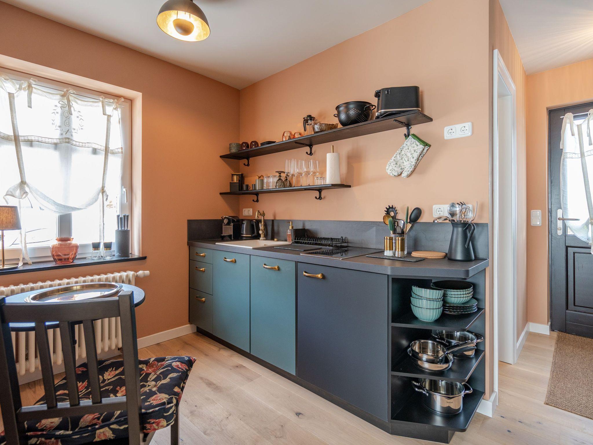 Willkommen in der Villa Saphira, Appartement 06! Dieses charmante Maisonette-Appartement erstreckt sich über 55 Quadratmeter auf zwei Etagen und bietet Platz für 2 Personen. Im Erdgeschoss erwartet Sie eine offene Gestaltung mit einer modernen Küchenzeile, ausgestattet u.a. mit einem 2-Platten-Cerankochfeld, einem Kühlschrank mit Gefrierfach und einer Nespresso Kapselmaschine. Hier befindet sich auch ein gemütlicher Essplatz. Der Schlafbereich verfügt über ein komfortables Doppelbett (1,80m x 2,00m), einen offenen Kleiderschrank, eine Kommode und einen Smart-TV (32 Zoll). Das angrenzende Badezimmer ist mit einer Dusche, einem WC, einem Waschtisch und einem Föhn ausgestattet.