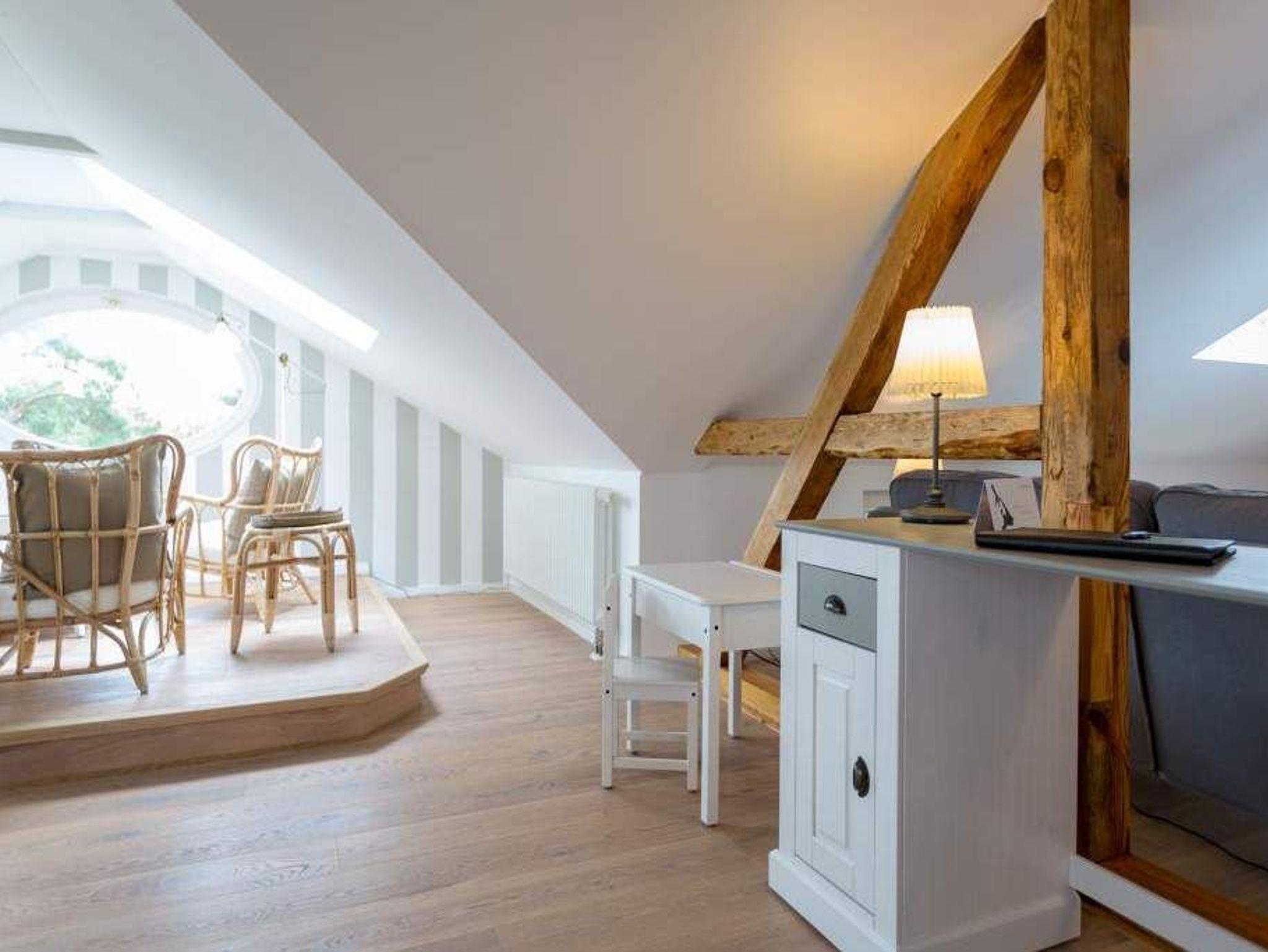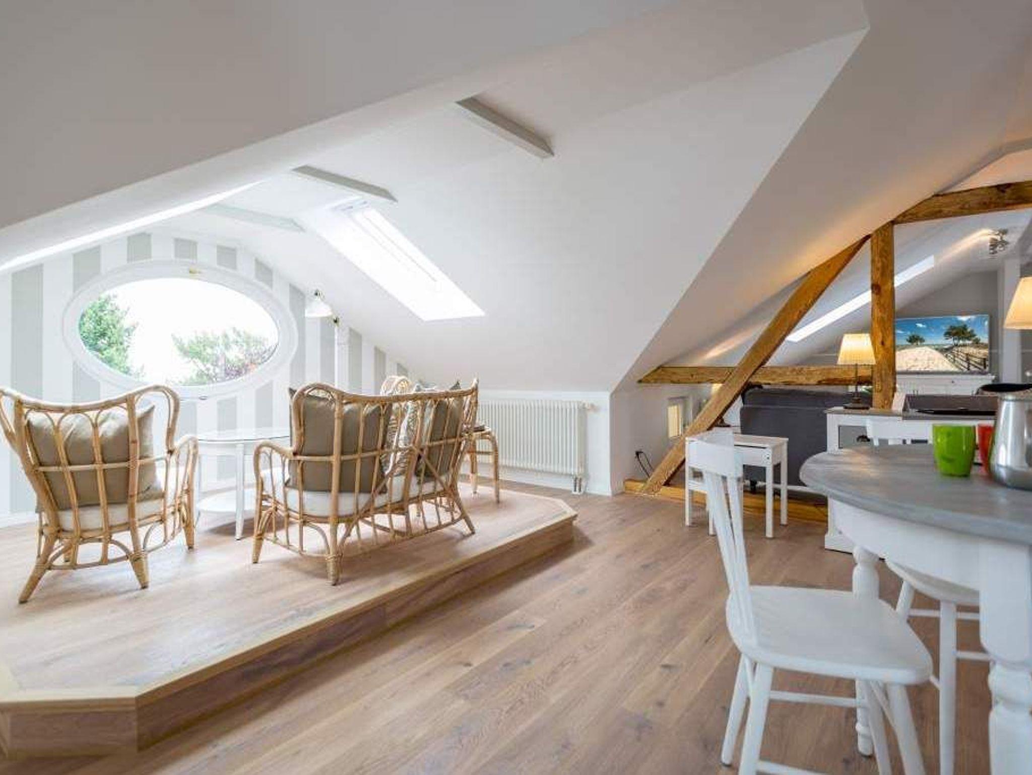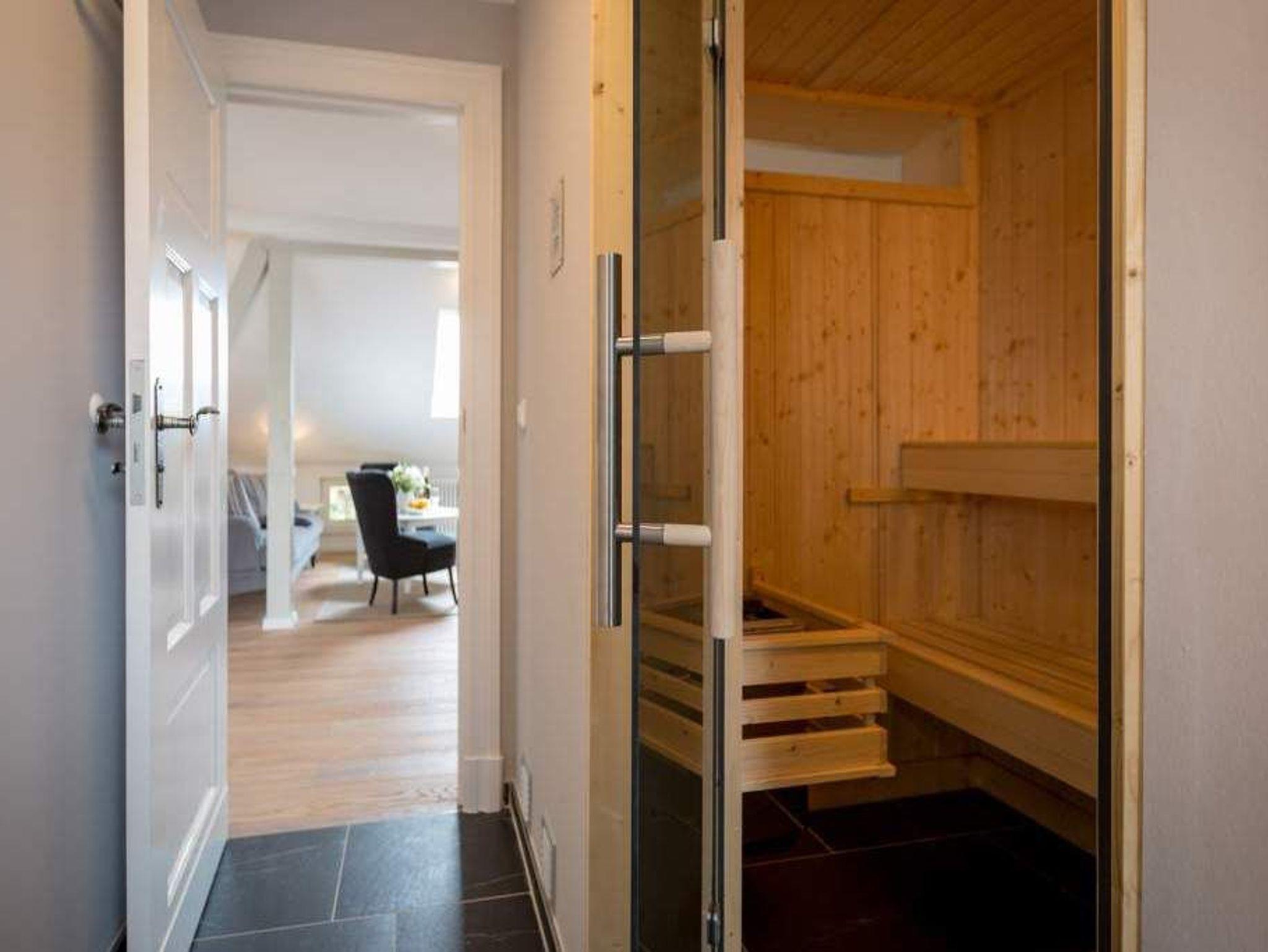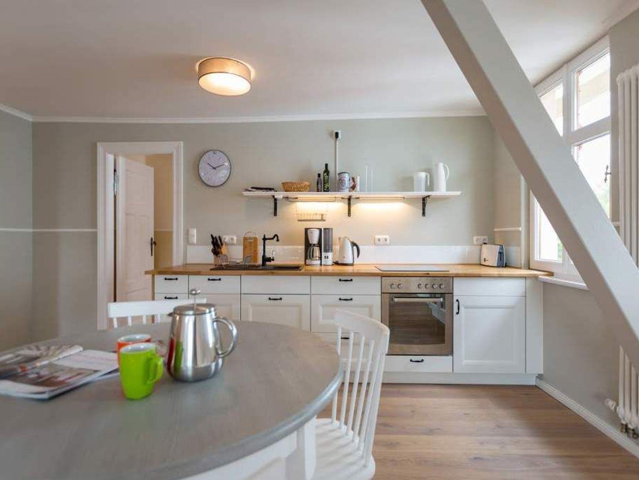 Großzügig und absolut strandnah, stylisch und absolut gemütlich ? die Wohnung 11 mit Meerblick im Dachgeschoss der wunderschön sanierten Bädervilla Saphira verspricht Urlaub der Extraklasse. In den drei Räumen ist Platz; viel Platz für bis zu 5 Personen und ein Kleinkind (bis 3 Jahren im Kinderreisebett). Der lichtdurchflutete Erker ist Küche und Ess-Zimmer in einem. Voll ausgestattet mit Herd, Kühlschrank, Spülmaschine, Kaffeemaschine, Toaster und Wasserkocher ist sie der ideale Ort zum Kochen und Beisammensein. Der stylische runde Tisch ist groß genug für alle auszeithungrigen Esser. Das offene Wohnzimmer ist groß und stilvoll eingerichtet. Die bequeme Sofa-Sitzgruppe eignet sich bestens zum Fernsehschauen. In der Wohnung 11 stehen Ihnen zwei Schlafzimmer zur Verfügung. Alle zwei sind hell und freundlich, haben einen Flat-TV und einen Kleiderschrank. Maritimes Flair durchzieht die Räume. Schlafzimmer eins ist mit einem Doppelbett (1,80 m x 2,00 m) ausgestattet und hat einen Zugang zum Südbalkon (ca.5 qm). Schlafzimmer zwei verfügt über ein Doppelbett (1,60 m x 2,00 m) und ein Einzelbett (0,80 m x 2,00 m). Auf Wunsch stellen wir für unsere kleinen Gäste ein Kinderreisebett (ohne zusätzliche Matratze [&] Bettzeug) und einen Kinderhochstuhl ( gegen einen Aufpreis) zur Verfügung. Das moderne Bad mit Tageslicht verfügt über eine Dusche, Dampfsauna und ein WC. Kommen Sie an und schalten Sie ab. Denn Ihre Betten sind bereits bezogen und Handtücher liegen bereit. Der Pkw-Parkplatz (Nr.11) befindet sich am Haus. Das WLAN ist kostenfrei.