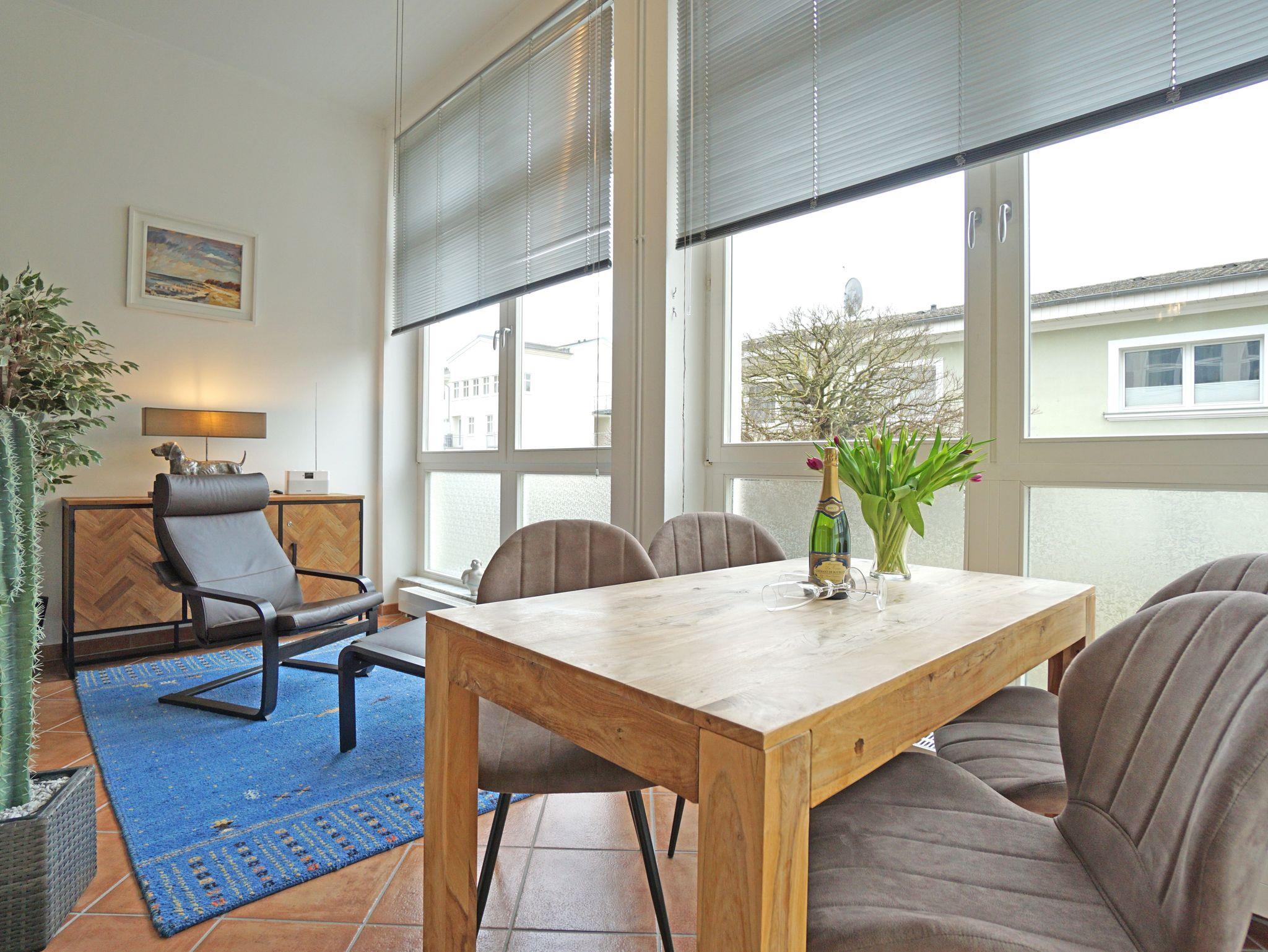 Die komfortable Nichtraucherferienwohnung ist ca. 58qm groß und für zwei Personen ideal geeignet. Der Wohnbereich verfügt über eine gemütliche Couch, Flachbild-TV, Blue-Ray-Player sowie ein CD-Radio. Die offene Küchenzeile ist voll ausgestattet mit einem Ceranfeld, Mikrowelle mit Backofenfunktion, Geschirrspüler, Kühlschrank mit Gefrierfach, Wasserkocher, Kaffeemaschine und Toaster. In dem schönen Wintergarten befindet sich der Esstisch mit vier Stühlen. Das separate Schlafzimmer erwartet Sie mit einem Doppelbett, einem zusätzlichen TV sowie einem geräumigen Kleiderschrank. Das im Jahr 2026 sanierte Badezimmer verfügt über eine Dusche, WC und Haartrockner.