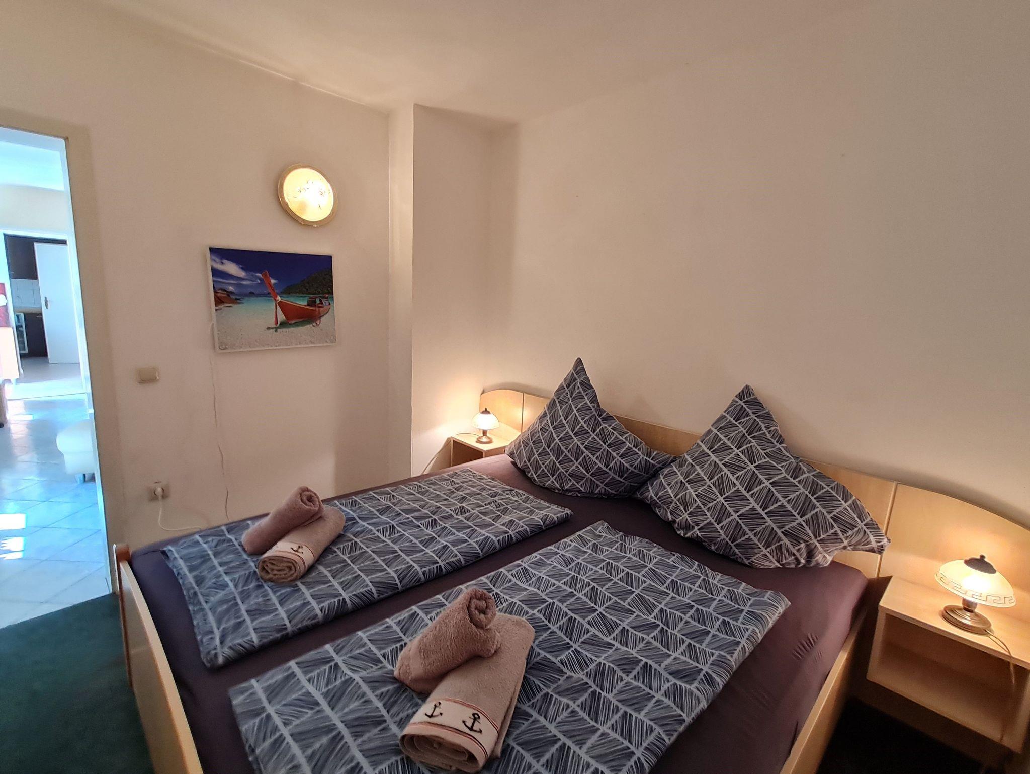 Das Appartement 10 befindet sich in einem kleinen Nebenhaus auf dem Grundstück. Auf 46m² finden drei Erwachsene und ein Kleinkind bis drei Jahre genug Platz, um einen wundervollen Aufenthalt in Heringsdorf zu verbringen. Aufgeteilt ist die Wohnung in ein Schlafzimmer mit Doppelbett und Kleiderschrank. Ein Badezimmer mit Dusche und WC, welches sich direkt neben der Küche befindet. Diese ist voll ausgestattet, mit einem Mini-Ofen und Mini-Geschirrspüler. Im Wohnzimmer können Sie auf der großen Couch entspannen und zusammen sitzen.
