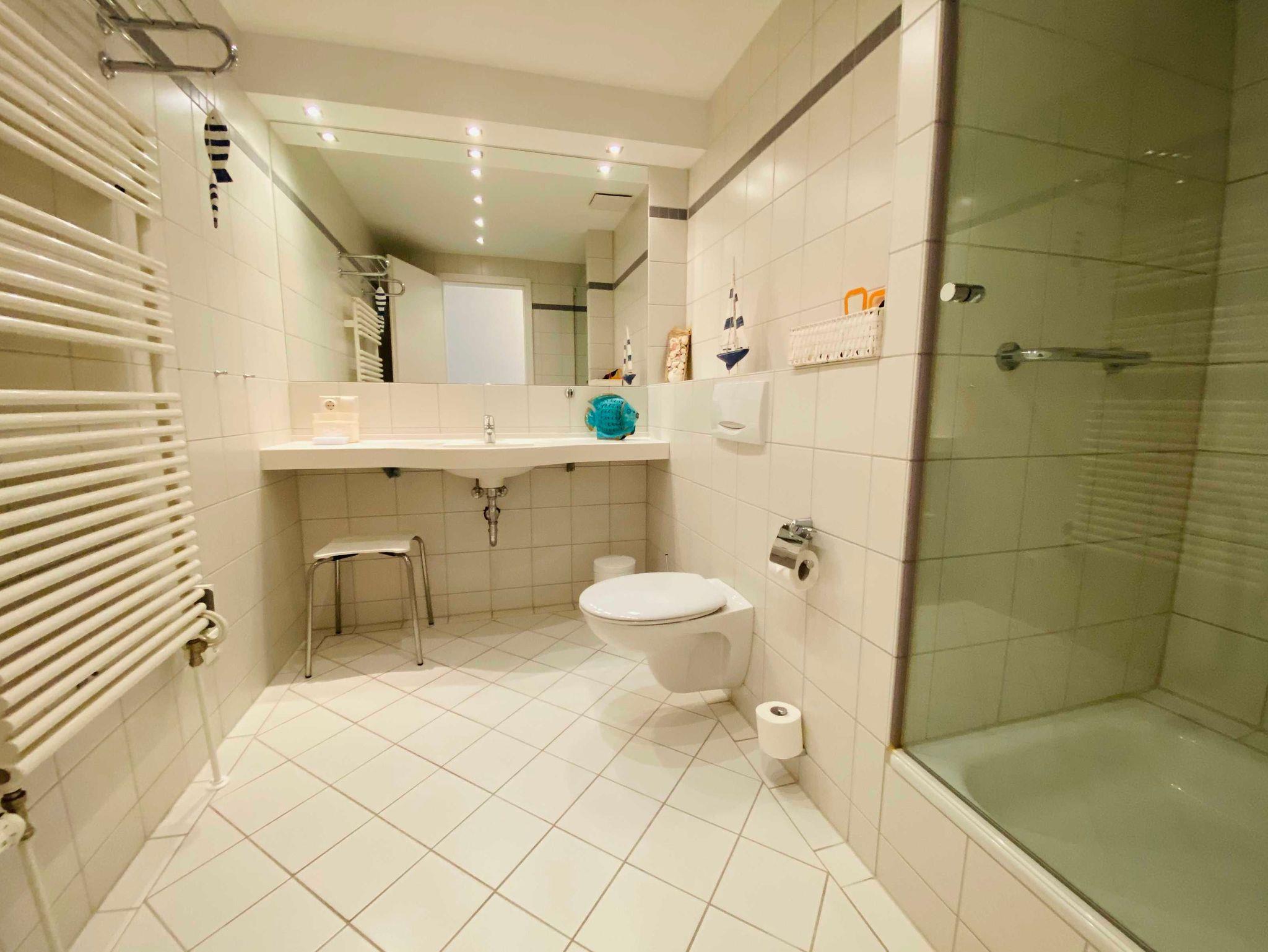 Die Wohnung hat 2 Schlafzimmer mit Doppelbett bzw. 2 Einzelbetten.Es gibt zwei Bäder mit Dusche und Wanne.