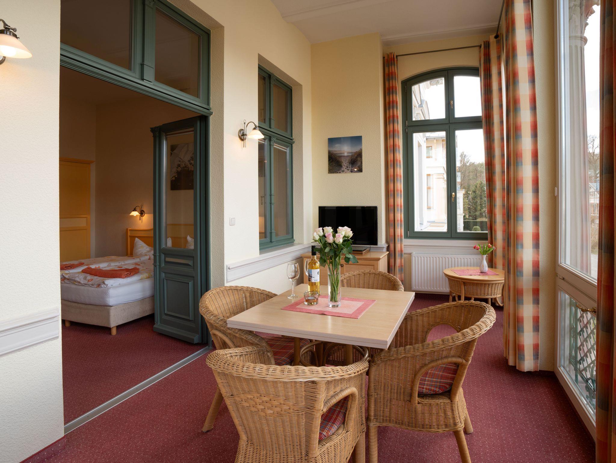 Auf der Terrasse vor dem Haus (Gemeinschaftsnutzung) haben Sie einen herrlichen Blick auf die alten Villen im Stil der Bäderarchitektur.