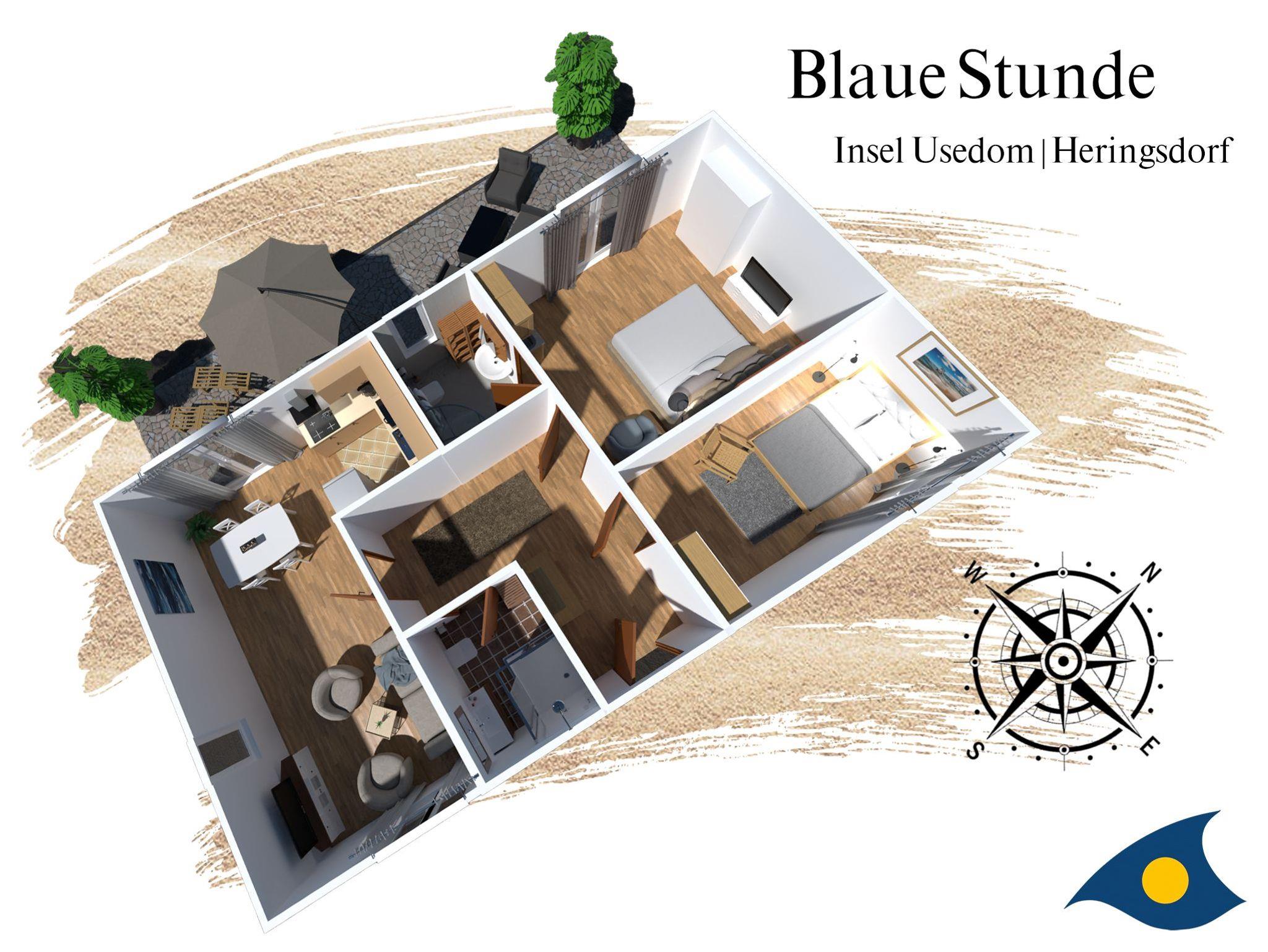 Das Haus in der Heringsdorfer Delbrückstraße wurde zur Saison 2010 vollständig renoviert und neu eingerichtet. Heute stehen in der Blauen Stunde ein modernes Appartement mit 78 qm zur Verfügung. Das ganze Haus bietet Platz für fünf Personen. Zu dem Objekt gehört eine südlich gelegene, großzügige Natursteinterrasse. Zwei PKW-Stellplätze und Unterstellmöglichkeiten für Ihre Fahrräder sind vorhanden.