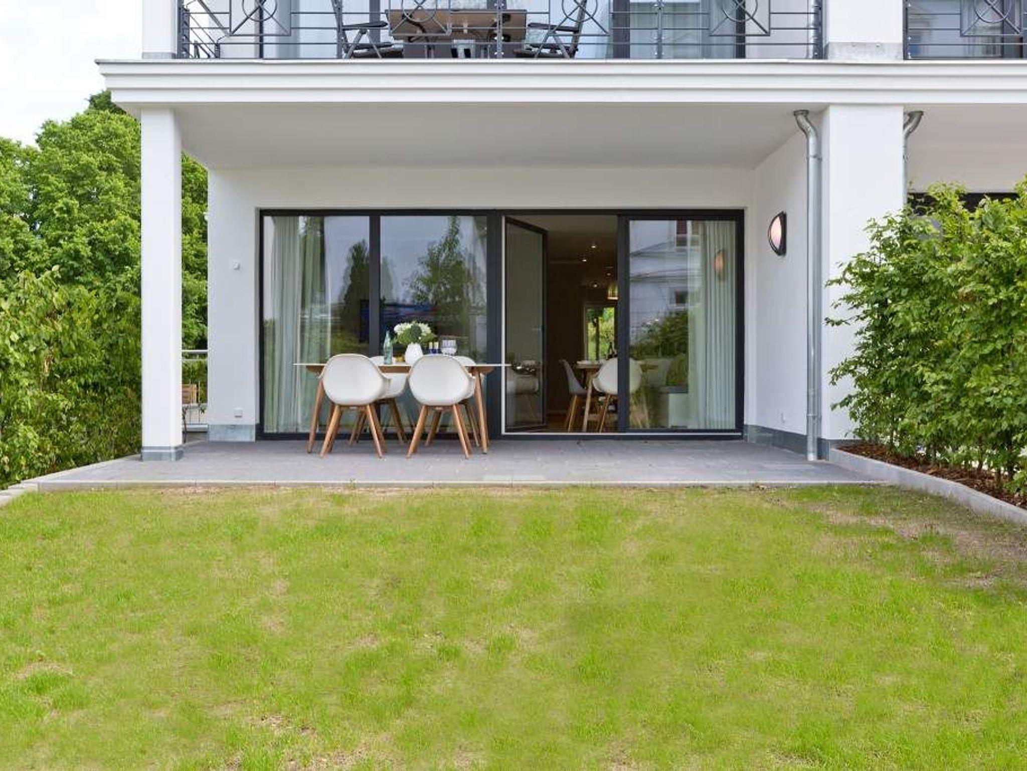 Vogelzwitschern und das sanfte Rauschen der Ostsee: Umgeben von wunderschönen, alten Bäumen atmet die 2017 fertig gestellte Villa Strandgrün das Flair der sie umgebenden Bädervillen. Mit seinen Balkonen und Erkern, die die Fassade untergliedern und auflockern, passt sich das strandnahe (100 Meter) Urlaubsdomizil angenehm in das Bild der aufwendig sanierten Villen um sie herum ein und wirkt selbst wie eine Weiterführung der einst mondänen Architektur des 19. Jahrhunderts. Das stilvolle Äußere setzt sich im exklusiven und eleganten Wohndesign im Inneren fort. Jede Ferienwohnung verfügt über eine Sonnenterrasse oder mehrere Balkone. Besondere Highlights eines jeden Appartements sind der Kamin, eine Sauna und je zwei Bäder bzw. ein zusätzliches Gäste WC. Die großzügigen 3- und 4-Raum-Suiten wurden mit allem Komfort konzipiert und ausgestattet. Vom ASA-Geschirr bis zu den hochwertigen Designmöbeln steht das Wohlfühlen an erster Stelle. In der Tiefgarage gibt es für jedes Appartement einen Stellplatz. Außerdem steht für jede Wohnung ein Briefkasten am Haus zur Verfügung.