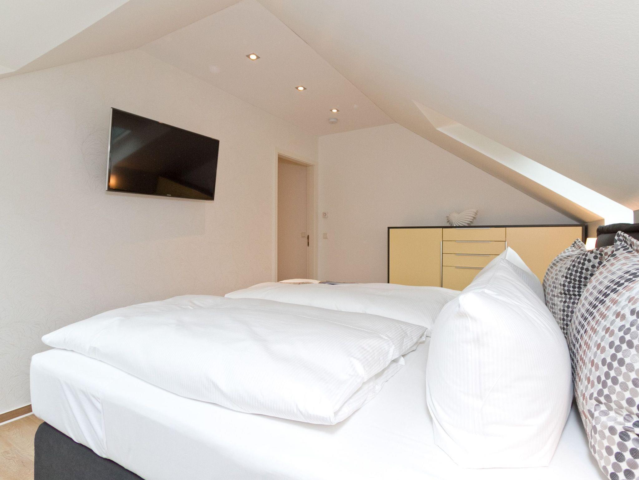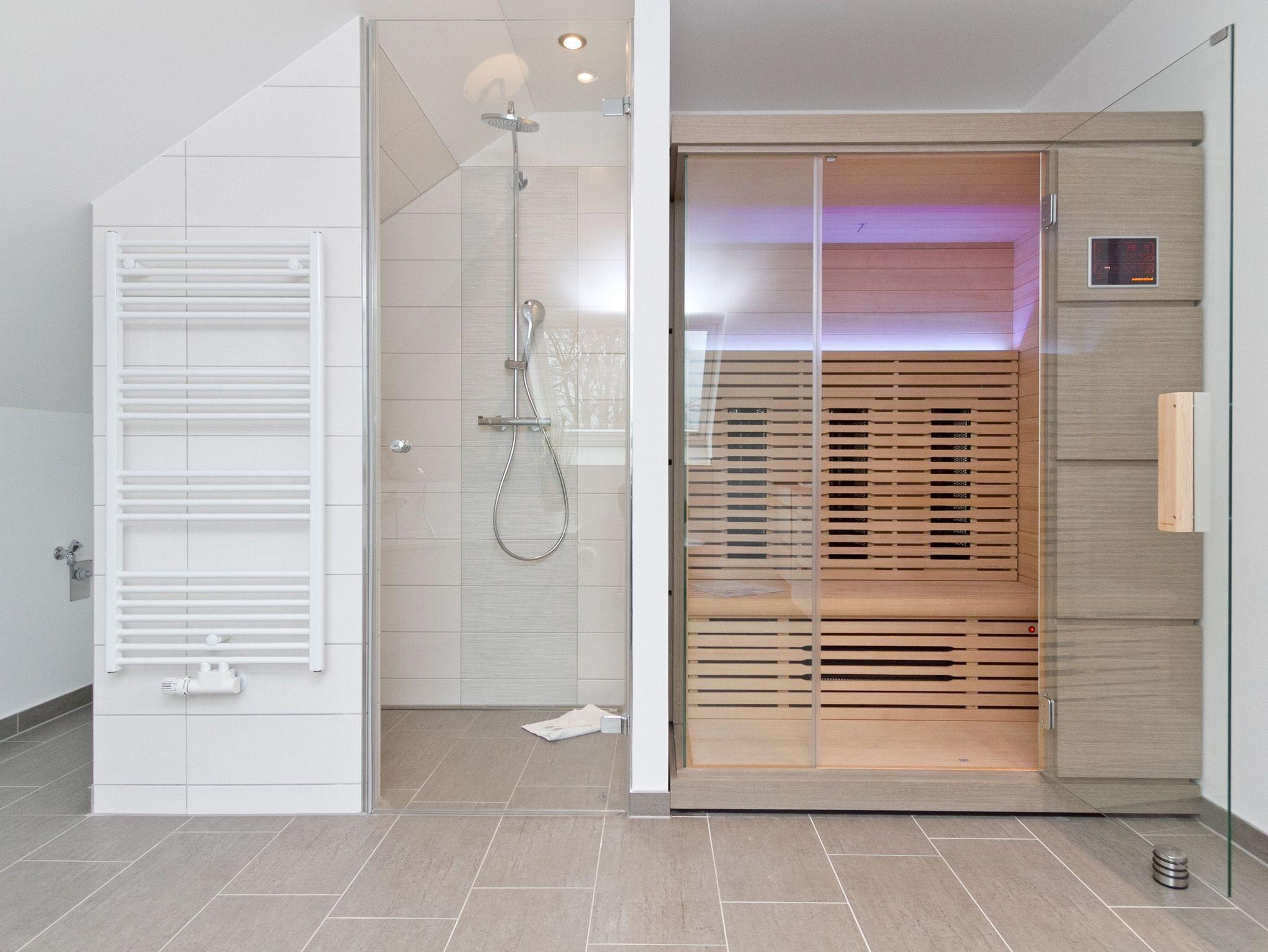 Vier Personen und ein Kleinkind im Kinderreisebett werden sich hier im 2. Obergeschoss im Appartement Nummer 18 pudelwohl fühlen. Denn es bietet mit seinen 85 Quadratmetern allen nur erdenklichen Wohnkomfort und überrascht mit einigen Extras. Hell und großzügig empfängt die Urlaubshungrigen das Wohnzimmer mit seinem Echtholzkaminofen, seiner Sofa-Sitzgruppe und dem großen Flat-TV mit DVD-Player. Kommen Sie an und entspannen Sie einfach drauf los. Hier brauchen Sie sich um nichts zu sorgen. Die Betten sind bezogen. Handtücher liegen bereit. Die separate Küche ist mit hochwertigen Küchengeräten bestens ausgerüstet. Auch Geschirr fehlt nicht. Am gläsernen, zur Küche gehörenden Essplatz finden alle Platz. Ihr Urlaubsdomizil verfügt über gleich zwei, sonnenverwöhnte Balkone (einer mit 8 Quadratmetern in Richtung Ost/ Süd-Ost; ein 2. zur Südseite, 6 Quadratmeter groß), auf denen Sie die frische Ostseeluft direkt einatmen können. In den zwei Schlafzimmern befinden sich bequeme Boxspringdoppelbetten (1,80 m x 2,00 m). Jedes ist mit einem Flat-TV und einer Kommode für die Urlaubsgarderobe ausgestattet. Das riesige Badezimmer ist eine kleine Wellness-Oase mit Badewanne, Dusche, Waschtisch und einer eigenen Infrarotsauna. Hier können Sie an kühlen Tagen oder Abenden bei kreislaufschonend kuscheligen Temperaturen ordentlich ins Schwitzen kommen und allen Stress loslassen. Im Appartement gibt es zudem ein separates Gäste-WC. Zwei hintereinander befindliche Parkplätze gehören zur Nummer 18 dazu. Auch ein Briefkasten steht zur Verfügung. Auf Wunsch stellen wir für unsere kleinen Gäste ein Kinderreisebett (ohne zusätzliche Matratze [&] Bettzeug) und einen Kinderhochstuhl (gegen einen Aufpreis) in die Wohnung. Das WLAN können Sie kostenfrei nutzen.