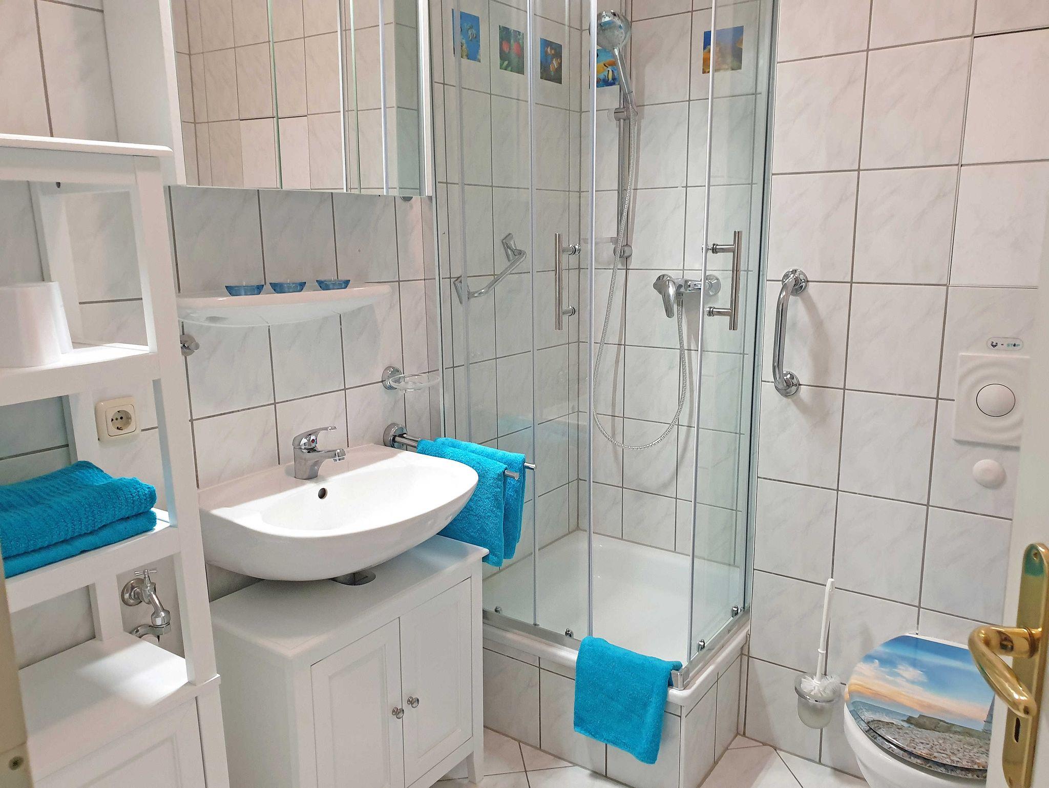 Die 2018 neu renovierte und ausgestattete Wohnung besteht aus einem Wohnzimmer mit hochwertigem Esstisch und großzügiger Schlafcouch, einem Schlafzimmer mit großem Doppelbett, einer separaten voll ausgestatteten Küche und einem Duschbad. Außerdem verfügt die Ferienwohnung über einen Balkon, einen eigenem kostenlosen Parkplatz und auch ein Aufzug ist vorhanden.