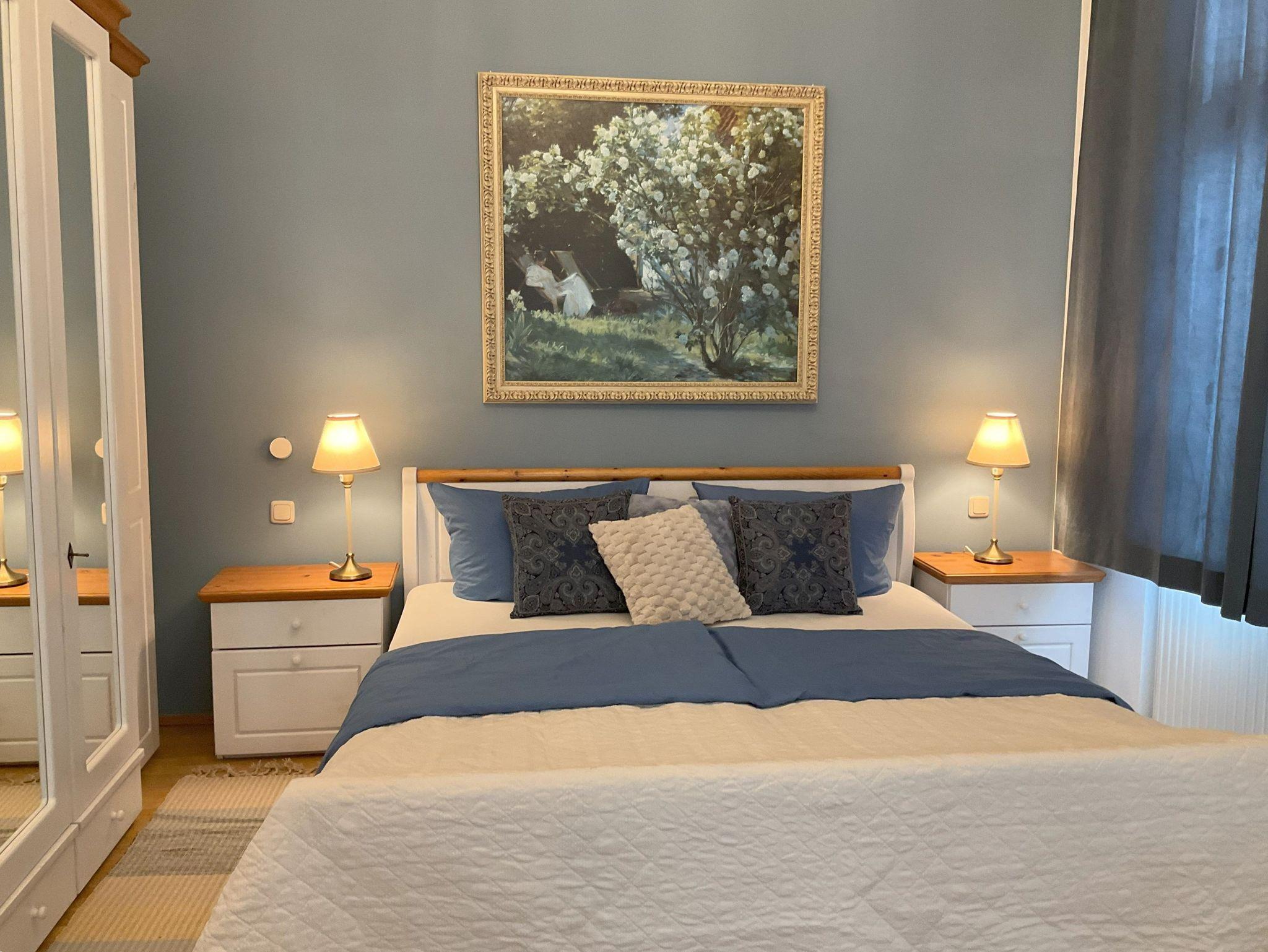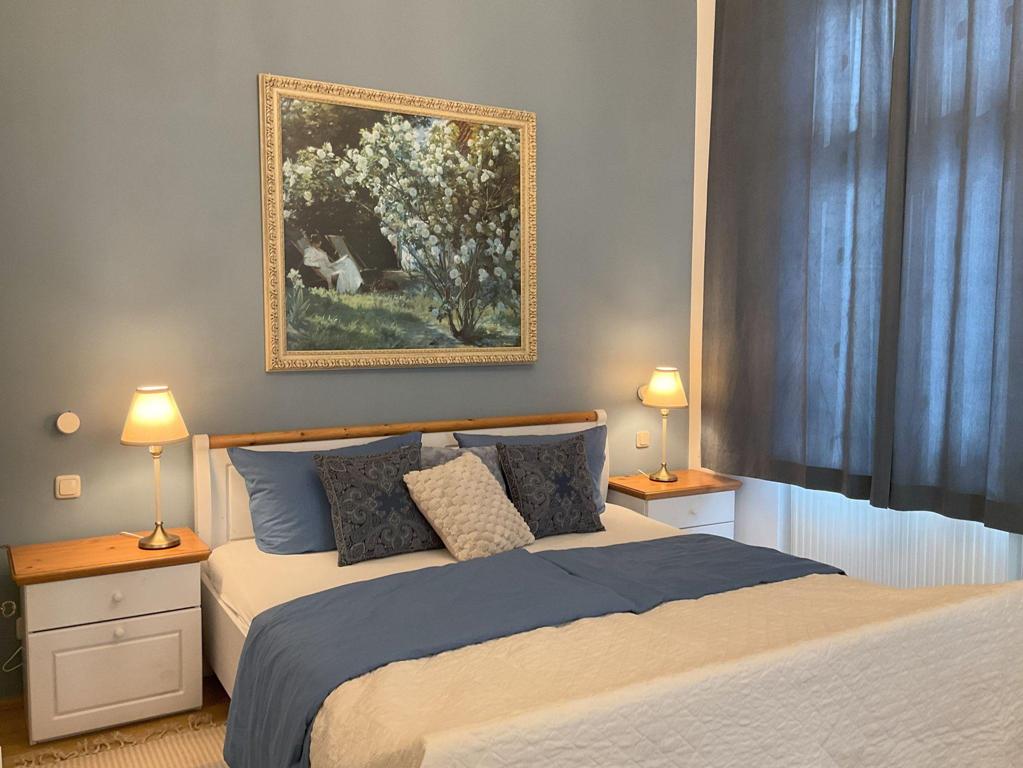 Die Ferienwohnung Klatschmohn befindet sich im 1. Obergeschoß der Villa Kramme im Seebad Heringsdorf. Trotz Zentrumsnähe ist hier absolute Ruhe. In der stilvoll und gemütlich eingerichteten Wohnung kommt sofort Urlaubsfeeling auf.