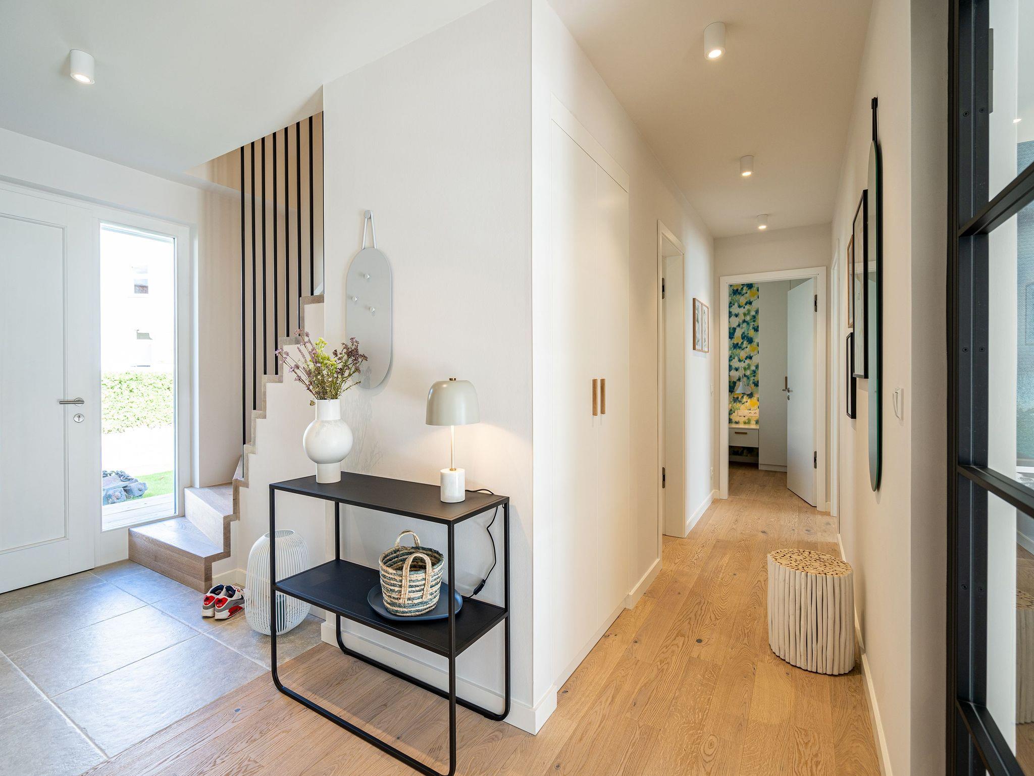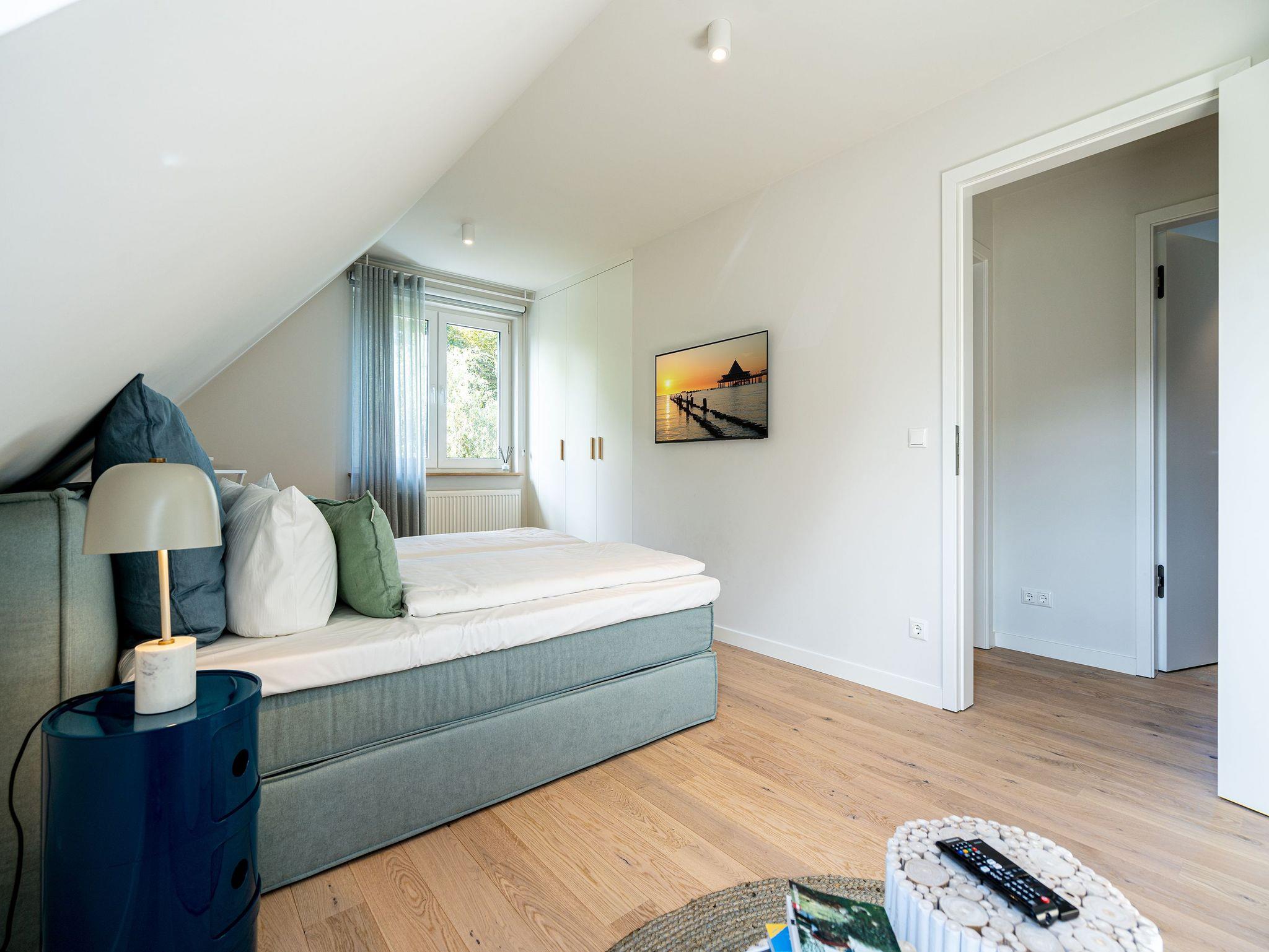Unweit vom Strand liegt das Ferienhaus „Das Strandod“ wie ein Juwel in der Strandstraße im schönen Seebad Heringsdorf. Modernes Design und helle Farben sorgen für ein luxuriöses Strandhausfeeling. Über 2 Etagen erstrecken sich die insgesamt 170qm. Die durchdachte Raumaufteilung der insgesamt 5 Schlafzimmer und 3 Bäder macht dieses Objekt zum idealen Aufenthaltsort für Ihre Reise mit Freunden oder der Familie. Der offene Wohn-Essbereich im Erdgeschoss für bis zu 10 Erwachsenen [&] 2 Kinder bis 15 Jahre lädt zum gemeinsamen Verweilen ein. Neben Flat-TV und Sonoro Musikanlage mit CD-Player, Streaming und Radio wurde auch an einen gemütlichen Holzkamin gedacht. Stilvolle Möbel und dezente Design-Accessoires gepaart mit wenigen Farbtupfern perfektionieren die exklusive Inneneinrichtung im Erdgeschoss. In der voll ausgestatteten, modernen Küche stehen Ihnen hochwertige Markengeräte (Kühlschrank, Induktionskochfeld und Geschirrspülmaschine) zur Verfügung. Hier finden Sie außerdem zwei Backöfen, davon einer mit Mikrowellenfunktion, und diverse Kleinküchengeräte (darunter 2 Kaffeemaschinen sowie einer zusätzliche Nespresso-Kapselmaschine). Für das perfekte Klima für Ihre Weine sorgt ein extra Weinkühlschrank. Genießen Sie die Vorzüge der großzügigen Sonnenterrasse, die bequem von Wohnzimmer und Küche begehbar ist. Bis zu 12 Personen finden am einzigartigen Holztisch an gemeinsamen Grillabenden Platz. Ein Holzkohlengrill steht Ihnen ebenfalls zur Verfügung. Sonnenliegen und ein Außen-Whirlpool komplettieren die exklusive Außenanlage. Ebenfalls im Untergeschoss gelegen sind zwei der fünf Schlafzimmer, die jeweils mit einem Boxspringbett (1,80m x 2,00m), Flat-TV und Einbauschrank ausgestattet sind. Für 1 Kleinkind steht Ihnen außerdem ein Babyreisebett soweit 1 Hochstuhl im Hauswirtschaftsraum bereit. Das Masterbad mit freistehender Badewanne, Dusche, Waschtisch und WC mit Bidet-Brause rundet diese Etage ab. Drei weitere Schlafzimmer im Obergeschoss mit Boxspringbetten (1,80m x 2,00m), Einbauschränken und Flat-TVs versprechen höchsten Schlafkomfort während Ihres Aufenthaltes. Besonders praktisch sind die beiden Bäder mit Dusche, Waschtisch und WCs mit Bidet-Brausen auf der selben Etage - perfekt für Ihren Urlaub mit mehreren Reisenden. Das Highlight im Obergeschoss bildet der separate Relaxraum mit Relaxsesseln, zwei kleinen Kühlschränken, einer Sonoro-Streaming Anlage sowie einer Holzsauna für bis zu 4 Personen. Damit Sie auch im Urlaub nicht auf Waschkomfort verzichten müssen, verfügt das Ferienhaus über eine Waschmaschine und einen Trockner. Mit 4 PKW-Stellplätzen sowie einem Stellplatz in der Doppelgarage sind ausreichend Parkmöglichkeiten vorhanden. Für Ihr E-Auto steht eine E-Ladesäule (kostenpflichtig) zur Verfügung. Reisende mit Fahrrädern können diese in der zweiten Hälfte der Doppelgarage einschließen. Für einen komfortablen Start in Ihren Urlaub sind die Betten bei Anreise bezogen und Handtücher liegen für Sie bereit. Kostenfreies WLAN komplettiert das Ferienhaus „Das Strandod“.