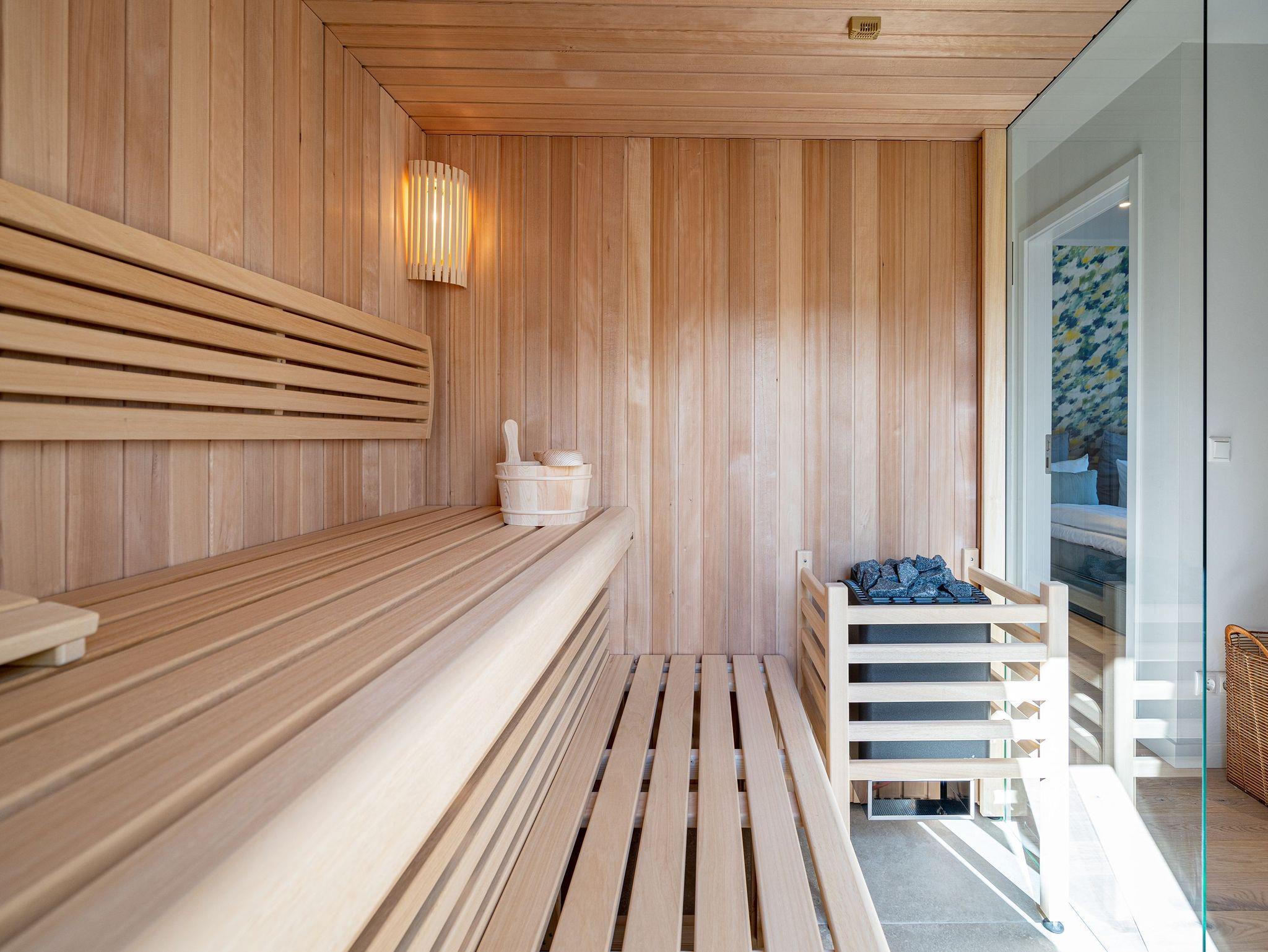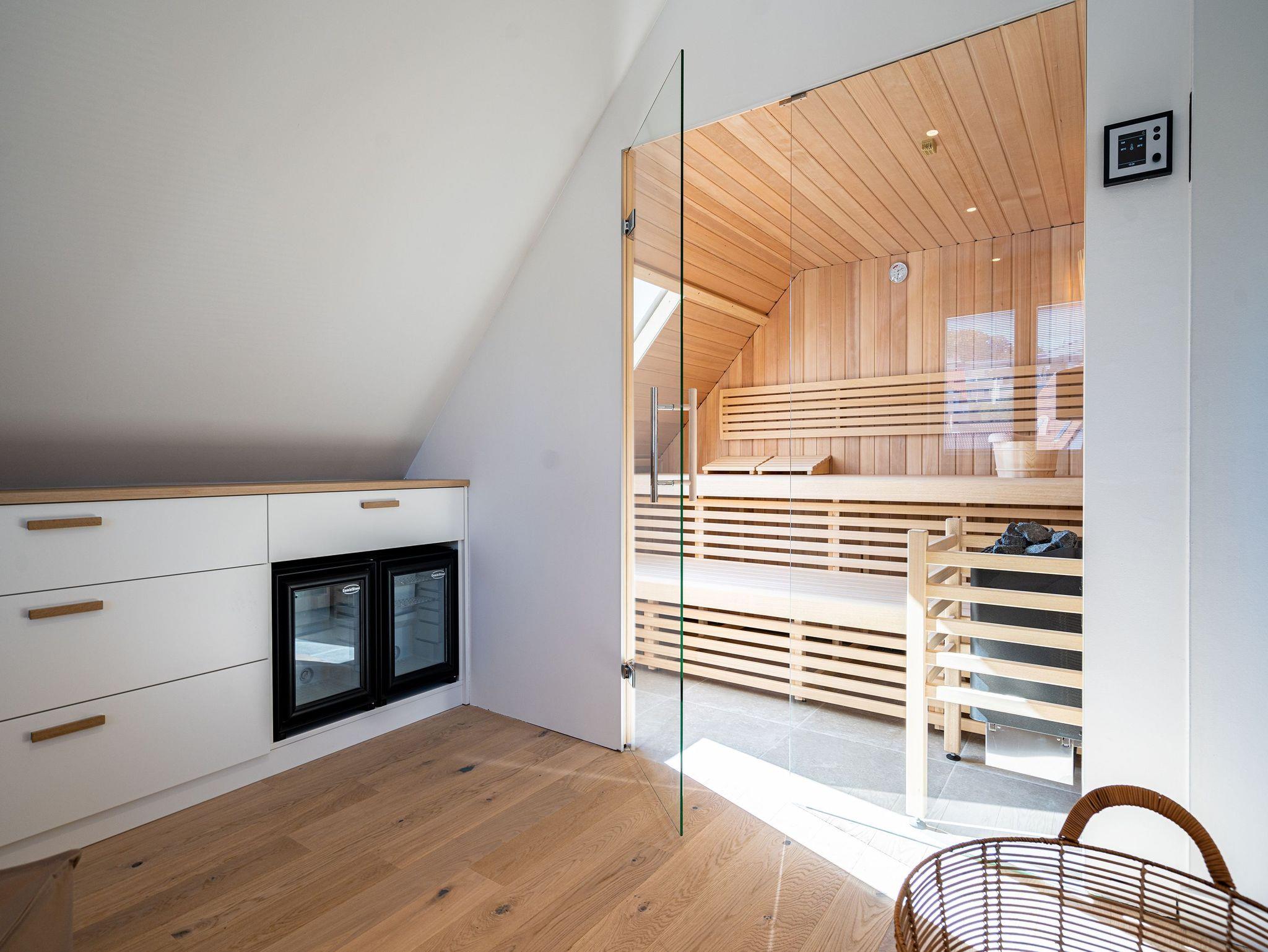 Unweit vom Strand liegt das Ferienhaus ?Das Strandod? wie ein Juwel in der Strandstraße im schönen Seebad Heringsdorf. Modernes Design und helle Farben sorgen für ein luxuriöses Strandhausfeeling. Über 2 Etagen erstrecken sich die insgesamt 170qm. Die durchdachte Raumaufteilung der insgesamt 5 Schlafzimmer und 3 Bäder macht dieses Objekt zum idealen Aufenthaltsort für Ihre Reise mit Freunden oder der Familie. Der offene Wohn-Essbereich im Erdgeschoss für bis zu 10 Erwachsenen [&] 2 Kinder bis 15 Jahre lädt zum gemeinsamen Verweilen ein. Neben Flat-TV und Sonoro Musikanlage mit CD-Player, Streaming und Radio wurde auch an einen gemütlichen Holzkamin gedacht. Stilvolle Möbel und dezente Design-Accessoires gepaart mit wenigen Farbtupfern perfektionieren die exklusive Inneneinrichtung im Erdgeschoss. In der voll ausgestatteten, modernen Küche stehen Ihnen hochwertige Markengeräte (Kühlschrank, Induktionskochfeld und Geschirrspülmaschine) zur Verfügung. Hier finden Sie außerdem zwei Backöfen, davon einer mit Mikrowellenfunktion, und diverse Kleinküchengeräte (darunter 2 Kaffeemaschinen sowie einer zusätzliche Nespresso-Kapselmaschine). Für das perfekte Klima für Ihre Weine sorgt ein extra Weinkühlschrank. Genießen Sie die Vorzüge der großzügigen Sonnenterrasse, die bequem von Wohnzimmer und Küche begehbar ist. Bis zu 12 Personen finden am einzigartigen Holztisch an gemeinsamen Grillabenden Platz. Ein Holzkohlengrill steht Ihnen ebenfalls zur Verfügung. Sonnenliegen und ein Außen-Whirlpool komplettieren die exklusive Außenanlage. Ebenfalls im Untergeschoss gelegen sind zwei der fünf Schlafzimmer, die jeweils mit einem Boxspringbett (1,80m x 2,00m), Flat-TV und Einbauschrank ausgestattet sind. Für 1 Kleinkind steht Ihnen außerdem ein Babyreisebett soweit 1 Hochstuhl im Hauswirtschaftsraum bereit. Das Masterbad mit freistehender Badewanne, Dusche, Waschtisch und WC mit Bidet-Brause rundet diese Etage ab. Drei weitere Schlafzimmer im Obergeschoss mit Boxspringbetten (1,80m x 2,00m), Einbauschränken und Flat-TVs versprechen höchsten Schlafkomfort während Ihres Aufenthaltes. Besonders praktisch sind die beiden Bäder mit Dusche, Waschtisch und WCs mit Bidet-Brausen auf der selben Etage - perfekt für Ihren Urlaub mit mehreren Reisenden. Das Highlight im Obergeschoss bildet der separate Relaxraum mit Relaxsesseln, zwei kleinen Kühlschränken, einer Sonoro-Streaming Anlage sowie einer Holzsauna für bis zu 4 Personen. Damit Sie auch im Urlaub nicht auf Waschkomfort verzichten müssen, verfügt das Ferienhaus über eine Waschmaschine und einen Trockner. Mit 4 PKW-Stellplätzen sowie einem Stellplatz in der Doppelgarage sind ausreichend Parkmöglichkeiten vorhanden. Für Ihr E-Auto steht eine E-Ladesäule (kostenpflichtig) zur Verfügung. Reisende mit Fahrrädern können diese in der zweiten Hälfte der Doppelgarage einschließen. Für einen komfortablen Start in Ihren Urlaub sind die Betten bei Anreise bezogen und Handtücher liegen für Sie bereit. Kostenfreies WLAN komplettiert das Ferienhaus ?Das Strandod?.