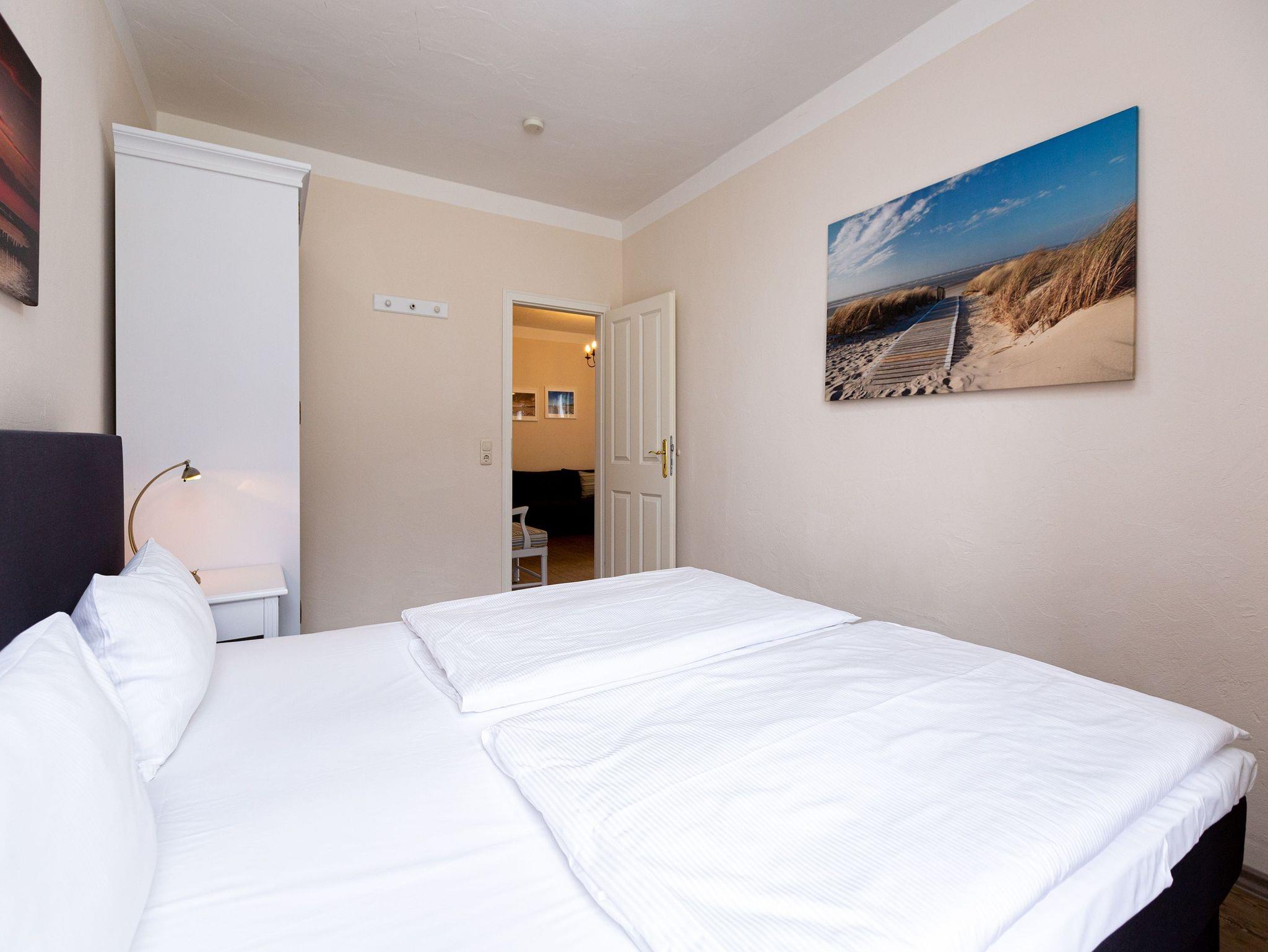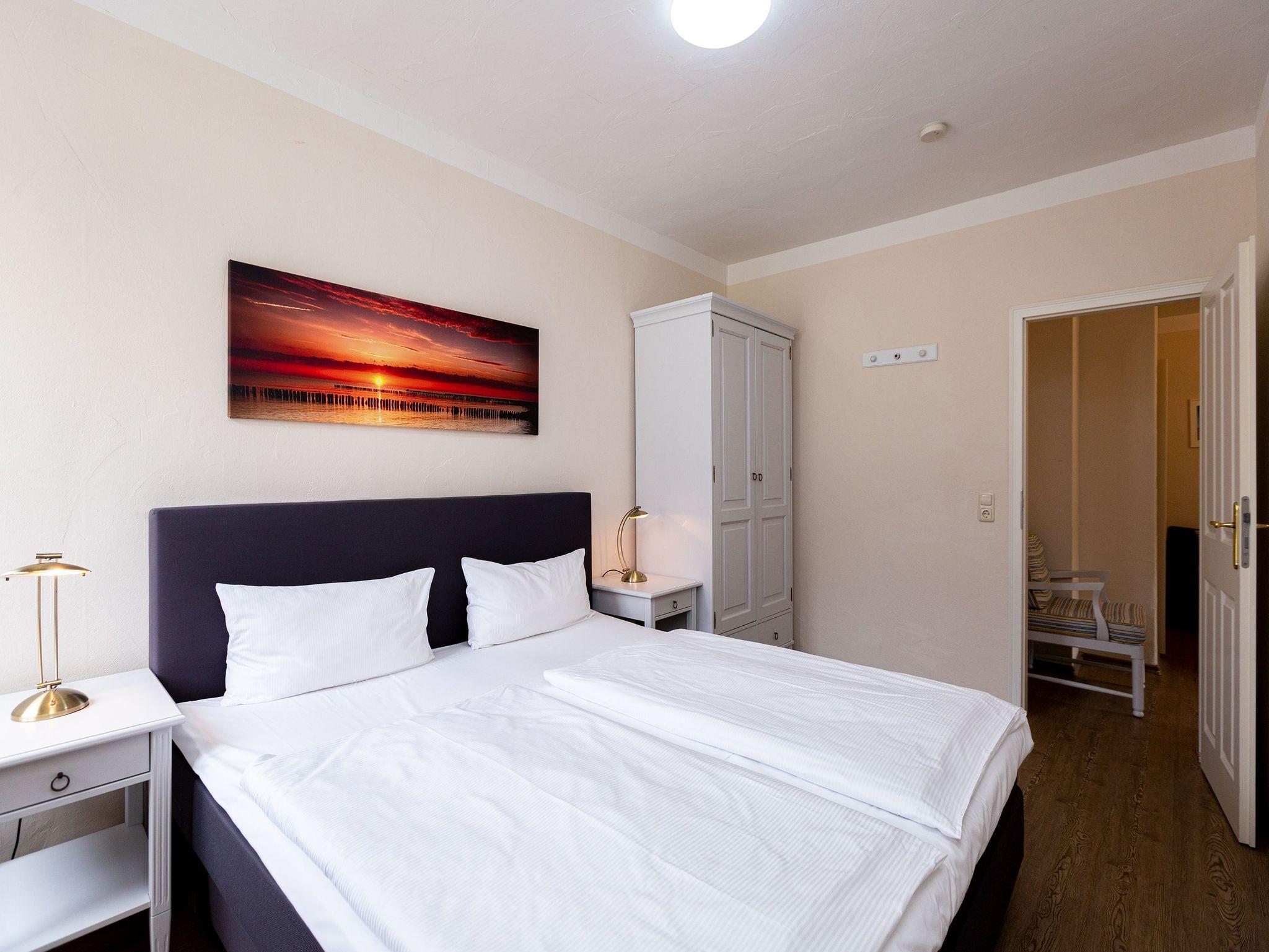 Ein schönes großes und offenes Wohn-Esszimmer empfängt den Urlaubshungrigen beim Eintreten in das Drei-Zimmer-Appartement unter dem Dach der sanierten Bädervilla Amelia. Edle Vintage-Sofas und ein großer Flat-TV warten nur darauf Ihnen eine entspannte Auszeit zu verschaffen. Gemeinsam kochen und essen, ist in diesem 50 Quadratmeter großen Ferienparadies auf jeden Fall möglich. Denn sowohl Küche als auch der in Weiß gehaltene Esstisch eigen sich dafür bestens. Zumal in der Küche alles zu finden ist, was ein Hobbykoch selbst für ein Mehr-Gänge-Menü brauchen kann. Inklusive Geschirr. Vom sonnigen Süd-Balkon aus haben Sie eine herrliche Sicht in die grüne Umgebung. Viel Ruhe finden Sie hier. Die beiden Schlafzimmer ? ausgestattet mit je einem Boxspringdoppelbett ? bringen vergnüglichen und erholsamen Schlaf. Die Schränke bieten viel Platz zum Verstauen. Das Badezimmer hat eine Dusche, ein WC und einen Waschtisch. Für einen rundum entspannten Urlaub sind die Betten bei Ihrer Anreise bezogen und Handtücher liegen bereit. Das WLAN Netz im Haus kann kostenfrei genutzt werden. Ein Pkw-Stellplatz befindet sich am Haus.