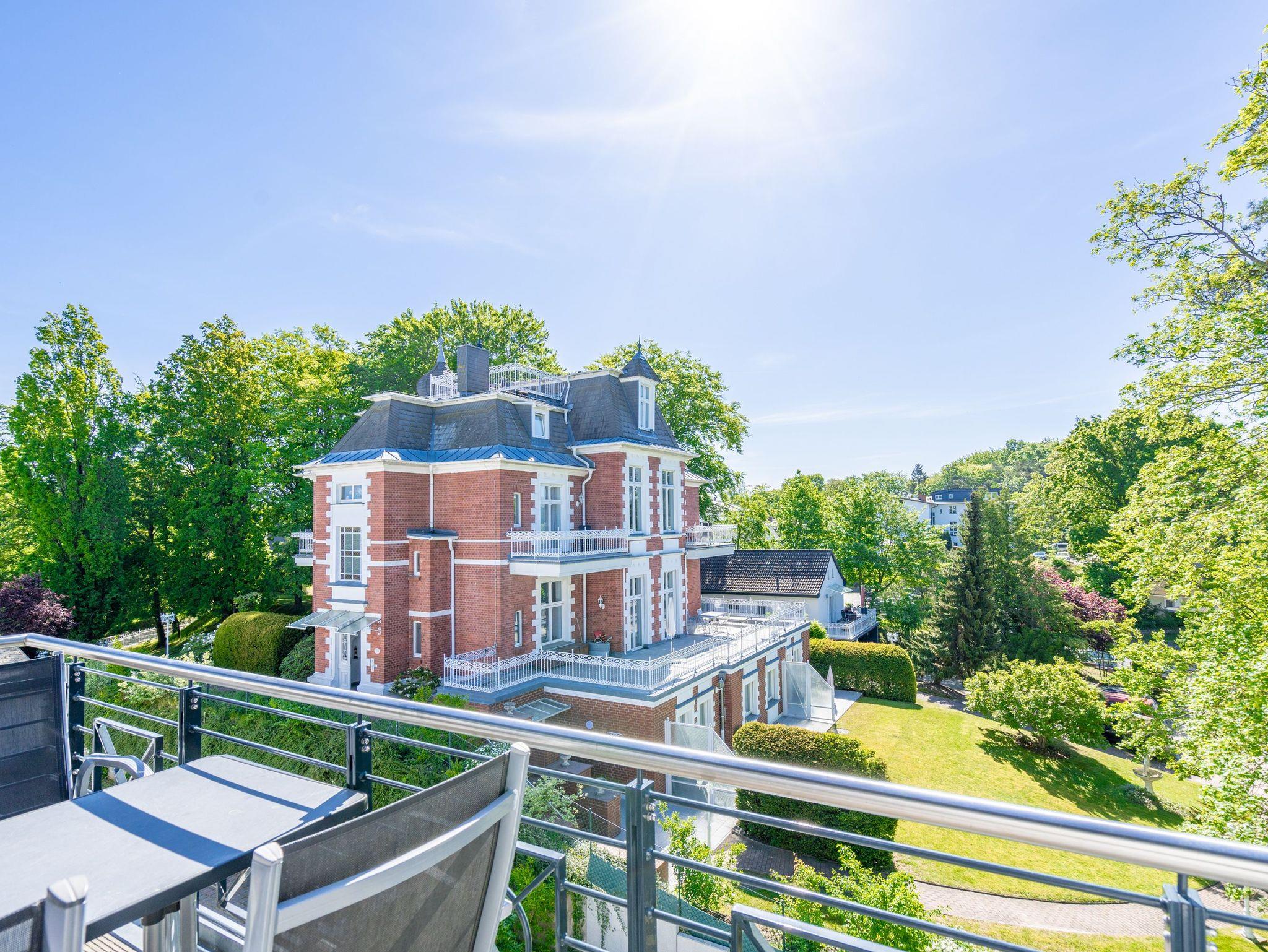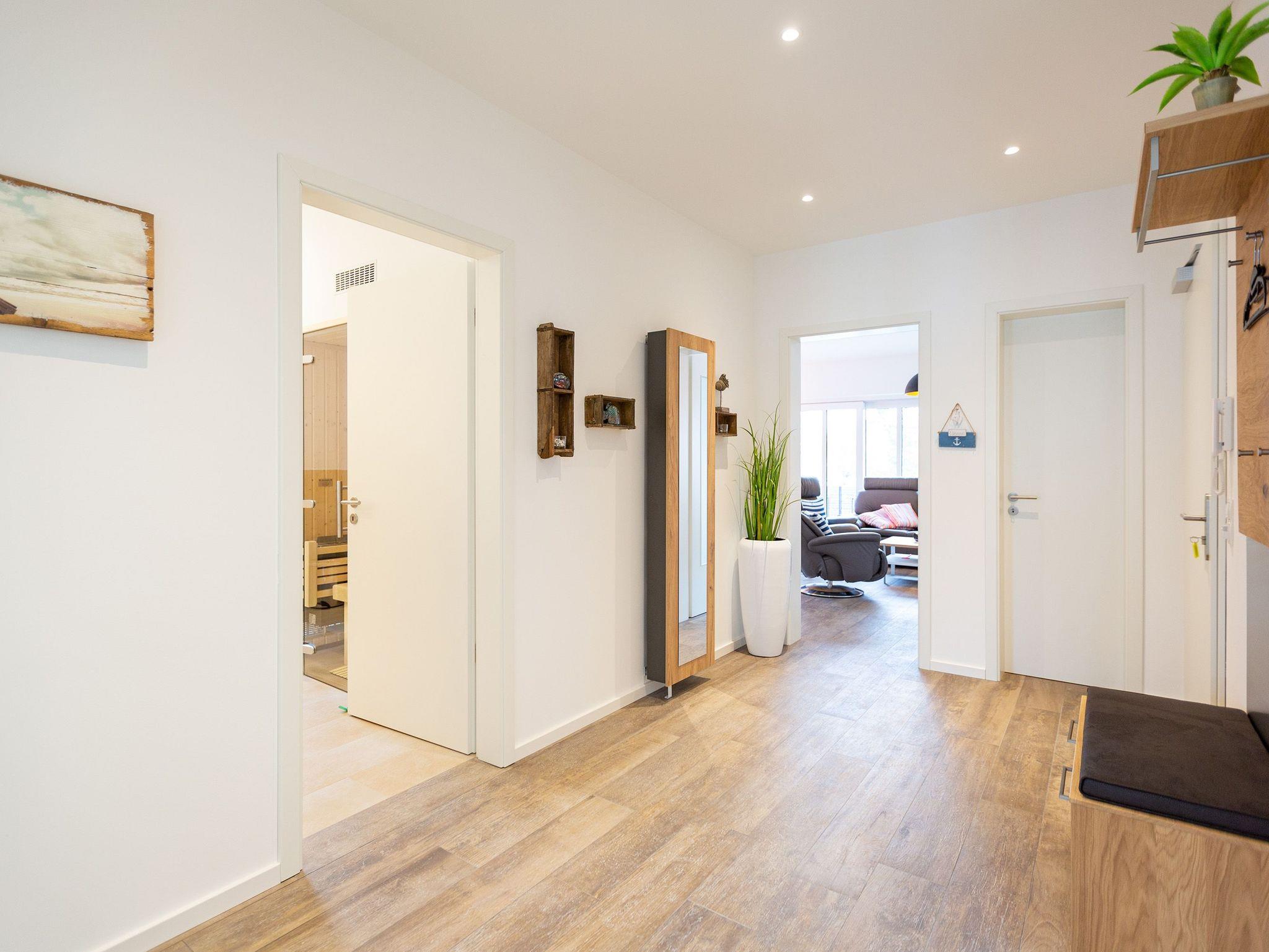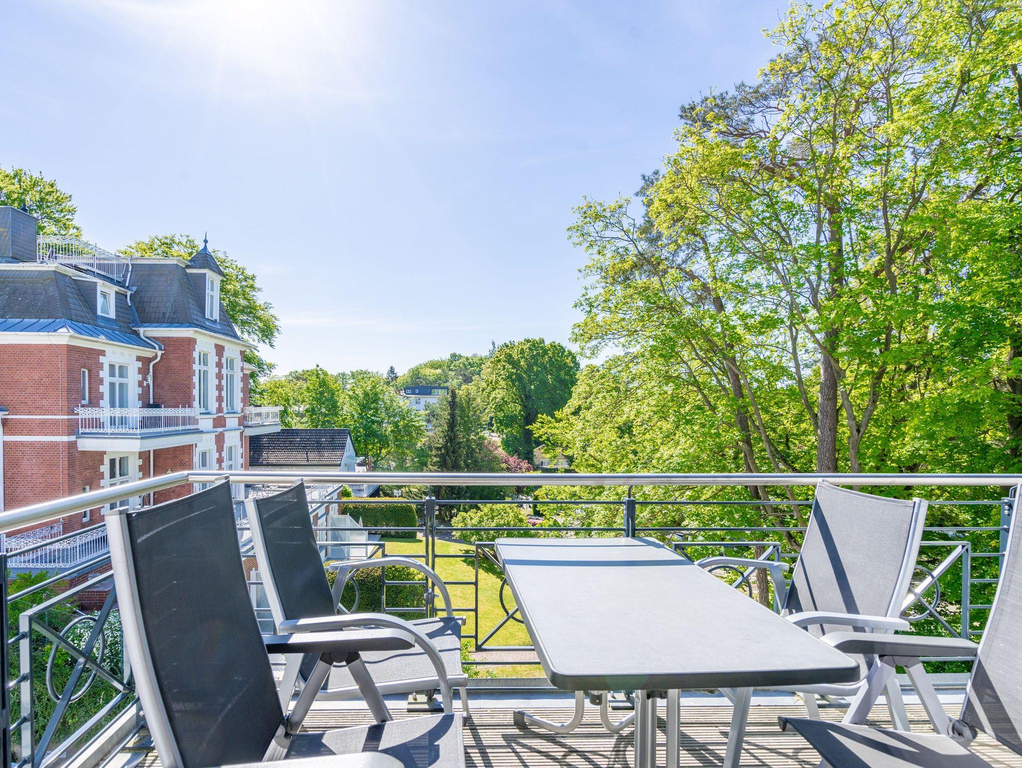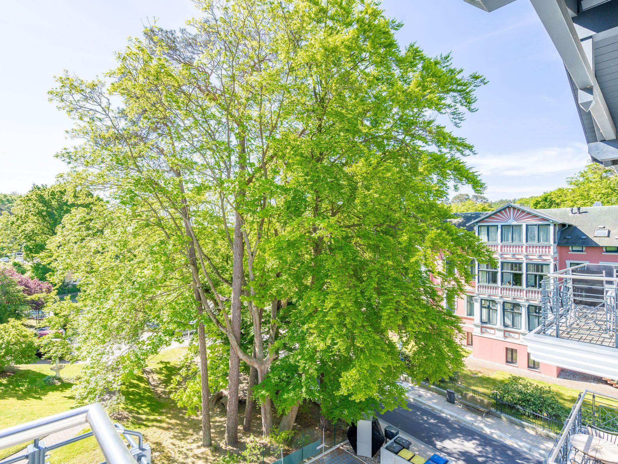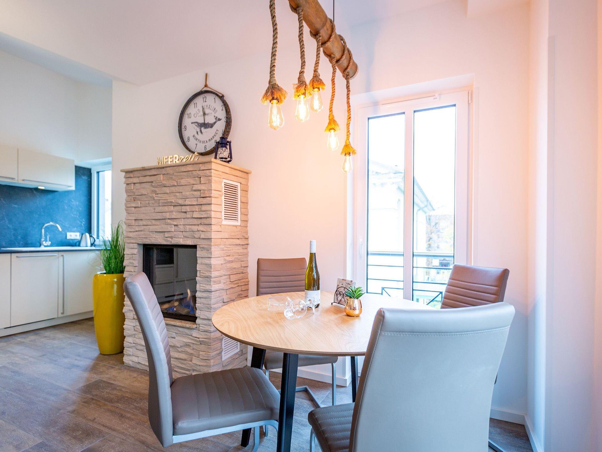 Das Appartement Nummer 7 in der 3. Etage besticht mit seiner freundlichen und sonnenhellen Atmosphäre. 82 Quadratmeter Wohlfühlzone mit Blick ins Grüne. Bis zu vier Personen können gemeinsam in den drei Zimmern eine entspannte Zeit verbringen. Rauf in die 3. Etage geht?s per Fahrstuhl. Offen und großzügig empfängt Sie das Wohn-Esszimmer. Bodentiefe Fenster sorgen für viel Licht. Ein kleiner Ost-Balkon (6 Quadratmeter) lädt zum Schlemmen an der frischen Ostseeluft ein. Eine gemütliche Leder-Sitzgruppe mit Sofa und Sesseln lässt im Wohnzimmer auf Anhieb das Stresslevel sinken. Zumal die Flammen des Gas-Kamins nicht nur Behaglichkeit vermitteln, sondern nachgewiesen auch äußerst entspannend wirken. Unterhaltung gibt?s via Flat-TV. Am runden Esstisch finden alle reichlich Platz. Die offene Küche ist mit Markengeräten wie einem Induktionsherd, einer Geschirrspülmaschine, einer Mikrowelle, einem Kühlschrank mit Gefrierfach, einer Kaffeemaschine und einem Toaster ausgestattet. Es ist ein komplettes Geschirr-Service vorhanden. Auch die beiden Schlafzimmer sind mit allem nur erdenklichen Wohnkomfort ausgestattet. Boxspringdoppelbetten (je 1,80 m x 2,00 m) schenken einen erholsamen Schlaf. In jedem Zimmer gibt es einen Flat-TV und einen Kleiderschrank. Das Appartement besitzt zwei Bäder mit Dusche und WC. Eines der beiden Badezimmer lädt darüber hinaus für die ganz private Wellness-Session zum Schwitzen in eine kleine Finnische Sauna ein. Außerdem verfügt es über eine Waschmaschine. Die Nutzung des WLAN ist kostenfrei. Bei Anreise sind die Betten bereits für Sie bezogen und Handtücher liegen bereit. Für das Appartement wurde im Hof der Stellplatz Nr. 7 reserviert. Für den Tag am Meer steht Ihnen als besonderes Bonbon von Mitte Mai bis Ende September (je nach Witterung) ein Strandkorb am Strand kostenlos zur Verfügung.