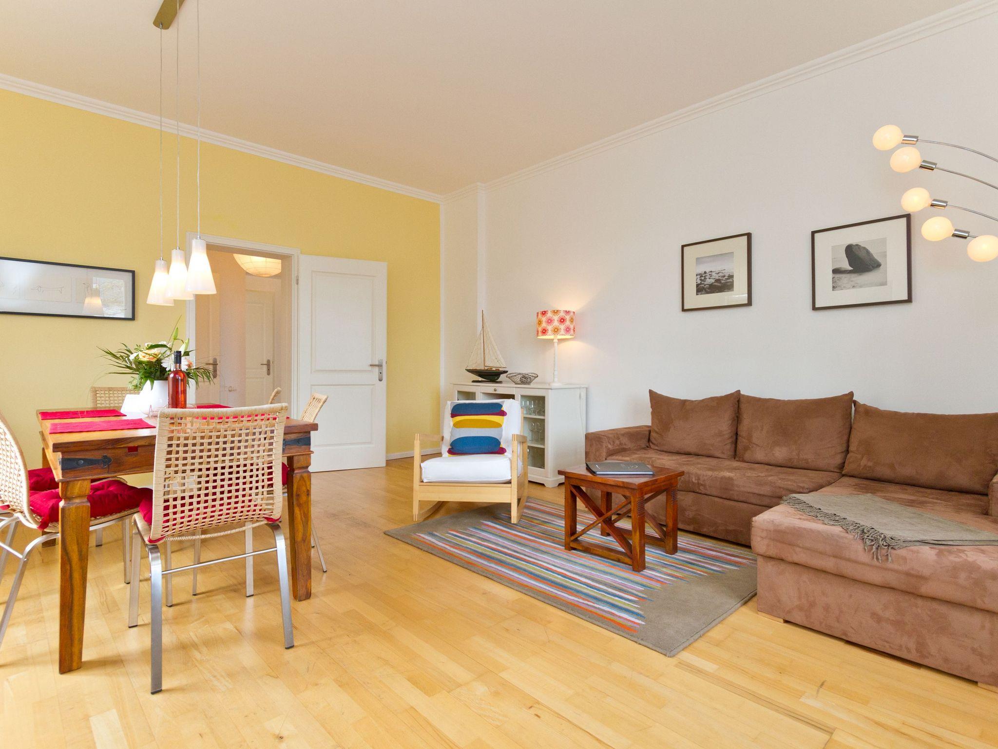 Diese geschmackvoll gestaltete 2-Raum-Ferienwohnung ist für 2 Personen und ein Kleinkind eingerichtet und befindet sich im Erdgeschoss der Villa. Die stilvolle, moderne Möblierung und die ausgesuchten Dekorationen sorgen für einen schönen Urlaub. Der Wohnbereich mit Sitzgruppe wird durch den Essplatz ergänzt. Die separate Küche ist komplett ausgestattet und bietet Zugang zum kleinen Südbalkon. Das Schlafzimmer ist mit einem Doppelbett eingerichtet. Ein schönes Bad mit WC und Dusche komplettiert das Appartement. Auf Wunsch stellen wir für unsere kleinen Gäste ein Kinderreisebett (ohne zusätzliche Matratze [&] Bettzeug, gegen einen Aufpreis) und einen Kinderhochstuhl ( kostenfrei) zur Verfügung.
