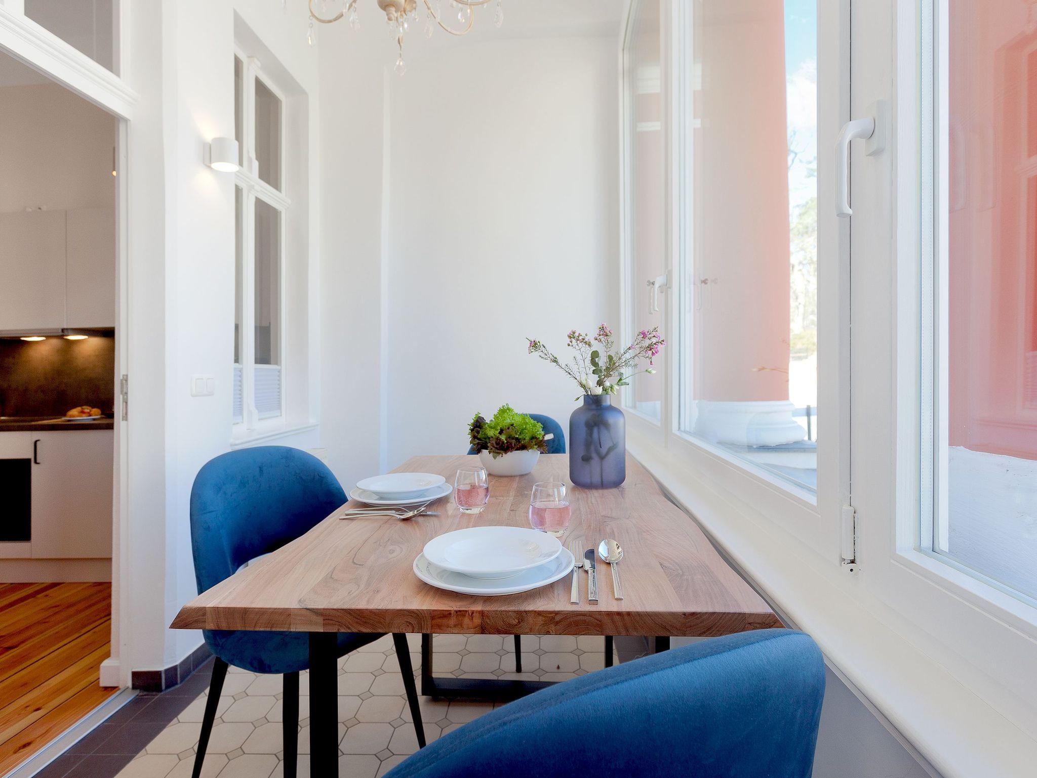 In den Appartements 1-5, 7 & 8 ist das Mitbringen von maximal 2 Haustieren gegen Gebühr erlaubt. Der Hundestrand befindet sich in nur 800 Meter Entfernung Richtung Bansin.