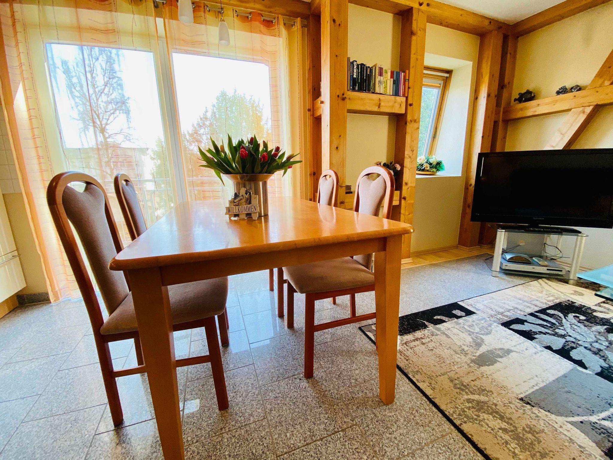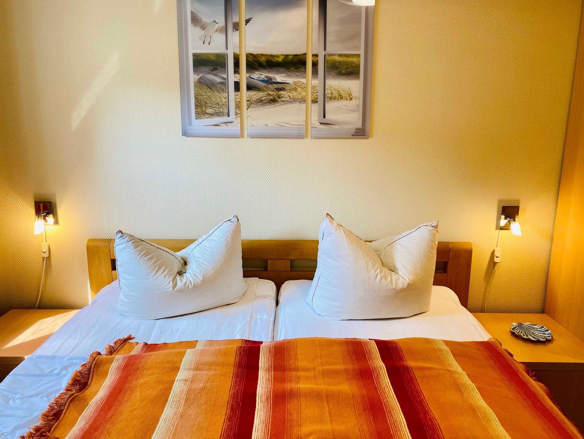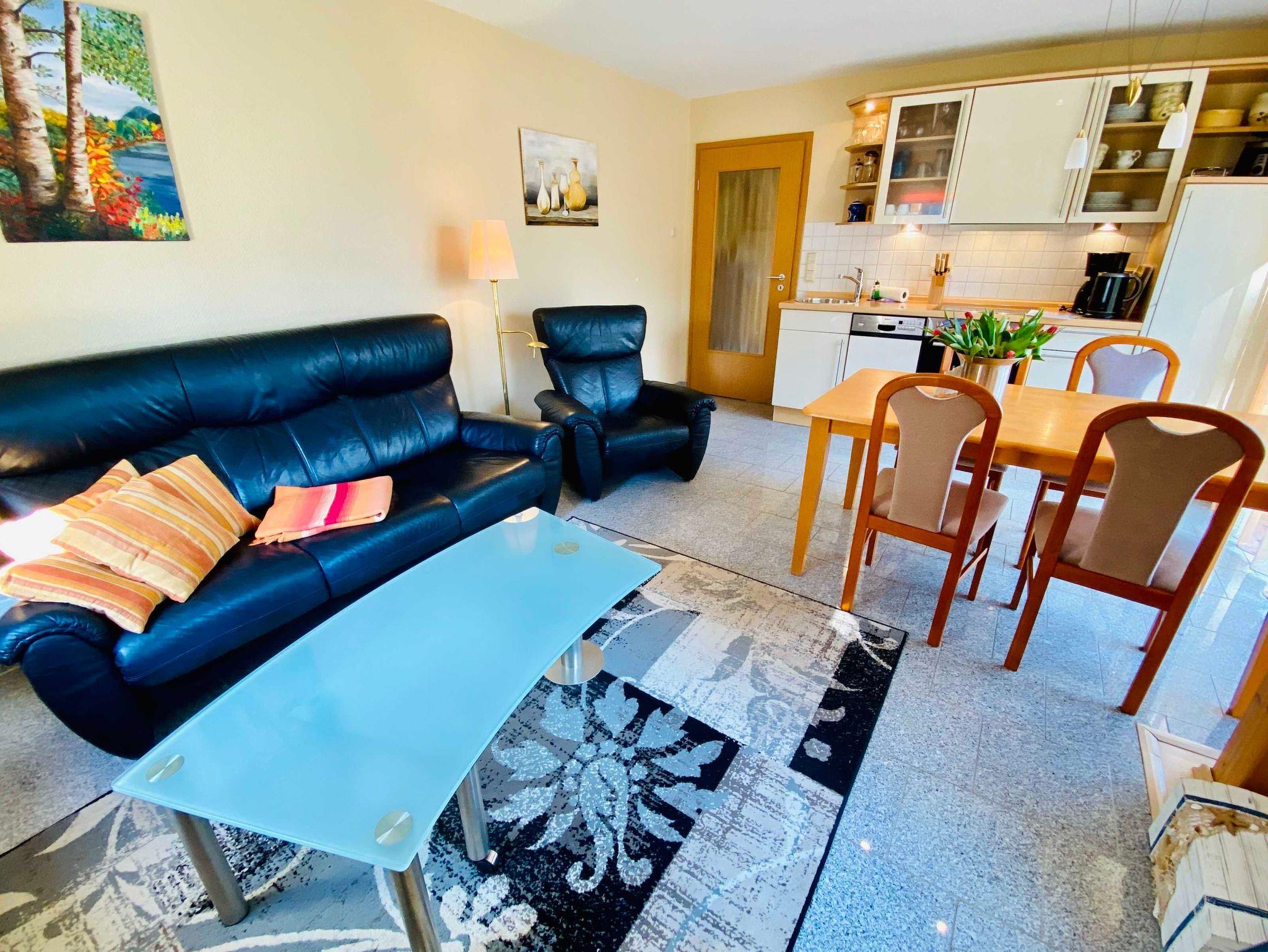 Eine moderne, gemütliche Dreiraumwohnung mit kombiniertem Wohn-Essraum mit Küchenzeile ( Geschirrspüler, Backofen, Cerankochfeld) , zwei Schlafzimmer mit Doppelbetten und ein Badezimmer mit Dusche. Die gesamte Ferienwohnung ist mit Granitfliesen ausgelegt (Fußbodenheizung) und sehr hochwertig eingerichtet. ( 2 Fernseher, DVD/CD Player, Internet). Zur Wohnung gehört ein Balkon sowie ein kostenfreier Stellplatz am Haus
