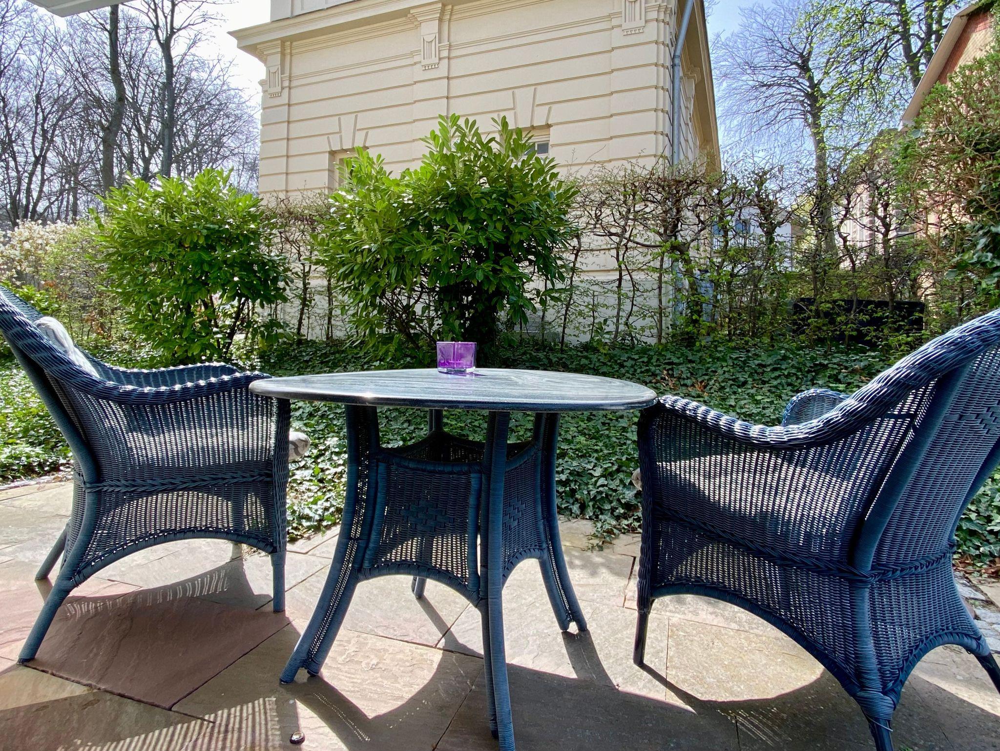 Zur Residenz Bleichröder gehören 4 Häuser : Villa Rondell, Villa Rosengarten, Remise sowie das Boutique Hotel und ein eigener Park mit Rosengarten, Springbrunnen und einem kleinen Spielplatz.