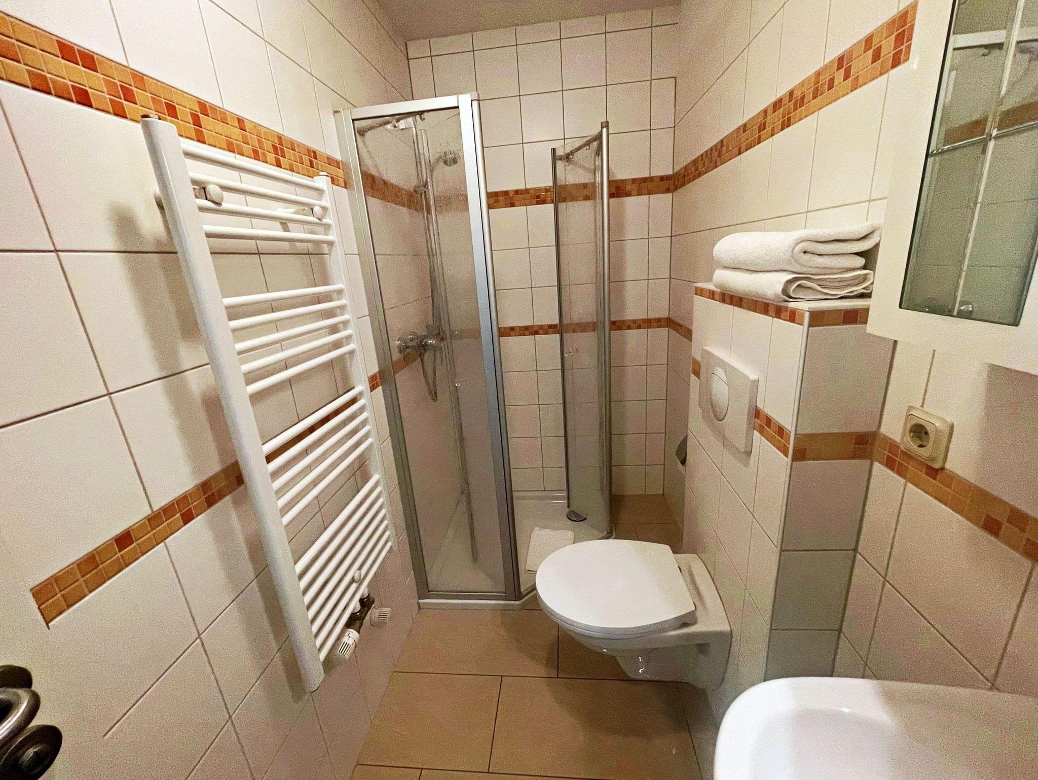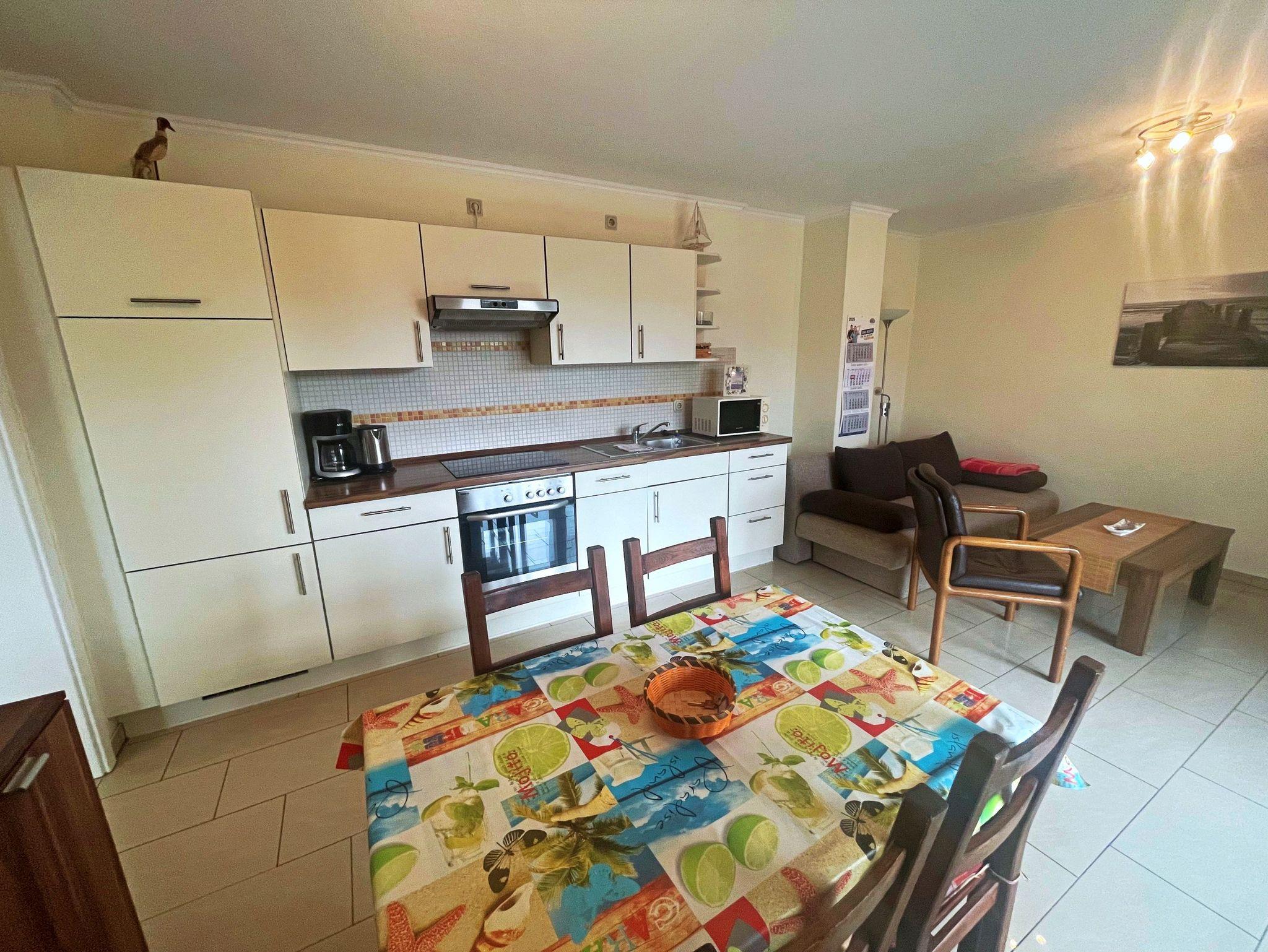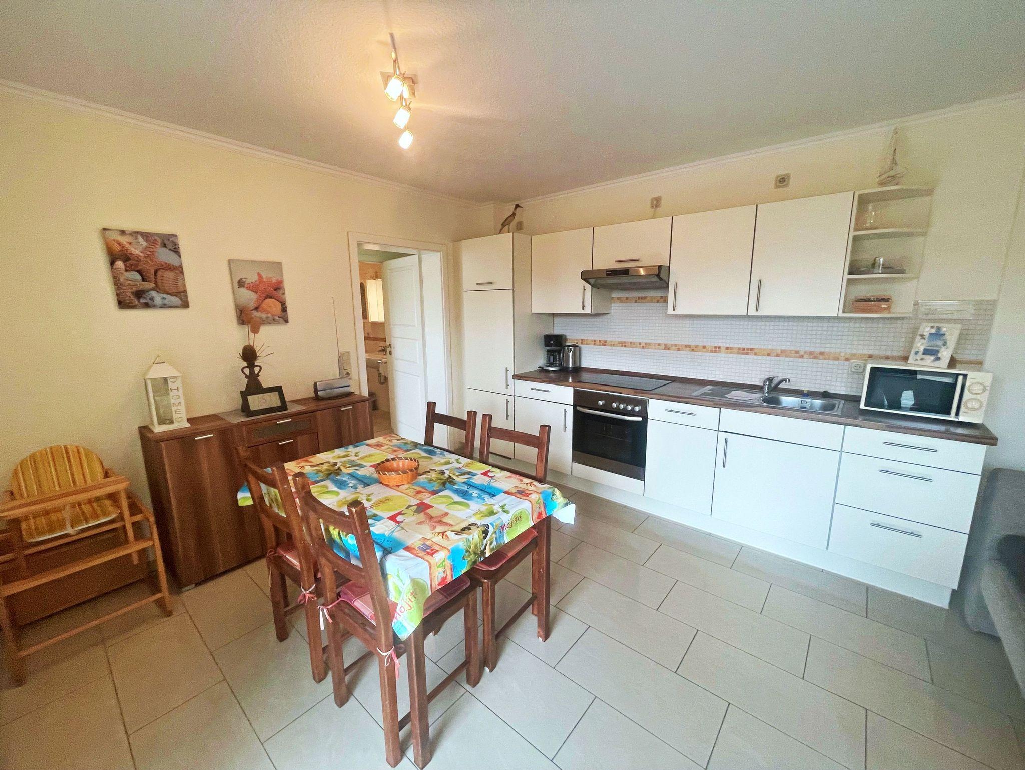 Der offene Wohnraum lädt zum Entspannen ein und verfügt über einen komfortablen Wohnbereich, in dem ein Schlafsofa Platz für zwei weitere Personen bietet. Die moderne Küche ist mit allem ausgestattet, was Sie benötigen, darunter ein Ceranherd, Backofen, Spülmaschine, Backofen und Kühlschrank - ideal für gesellige Kochabende am Esstisch. Das separate Schlafzimmer mit einem einladenden Doppelbett sorgt für erholsame Nächte. Das Badezimmer ist mit einer Dusche und WC ausgestattet, um Ihren Aufenthalt so angenehm wie möglich zu gestalten. Für Ihre Internetbedürfnisse steht Ihnen kostenfreies WLAN für ein Gerät zur Verfügung, für jedes weitere Gerät wird lediglich 10 € pro Woche berechnet. Zudem ist ein PKW-Stellplatz auf dem Grundstück vorhanden.