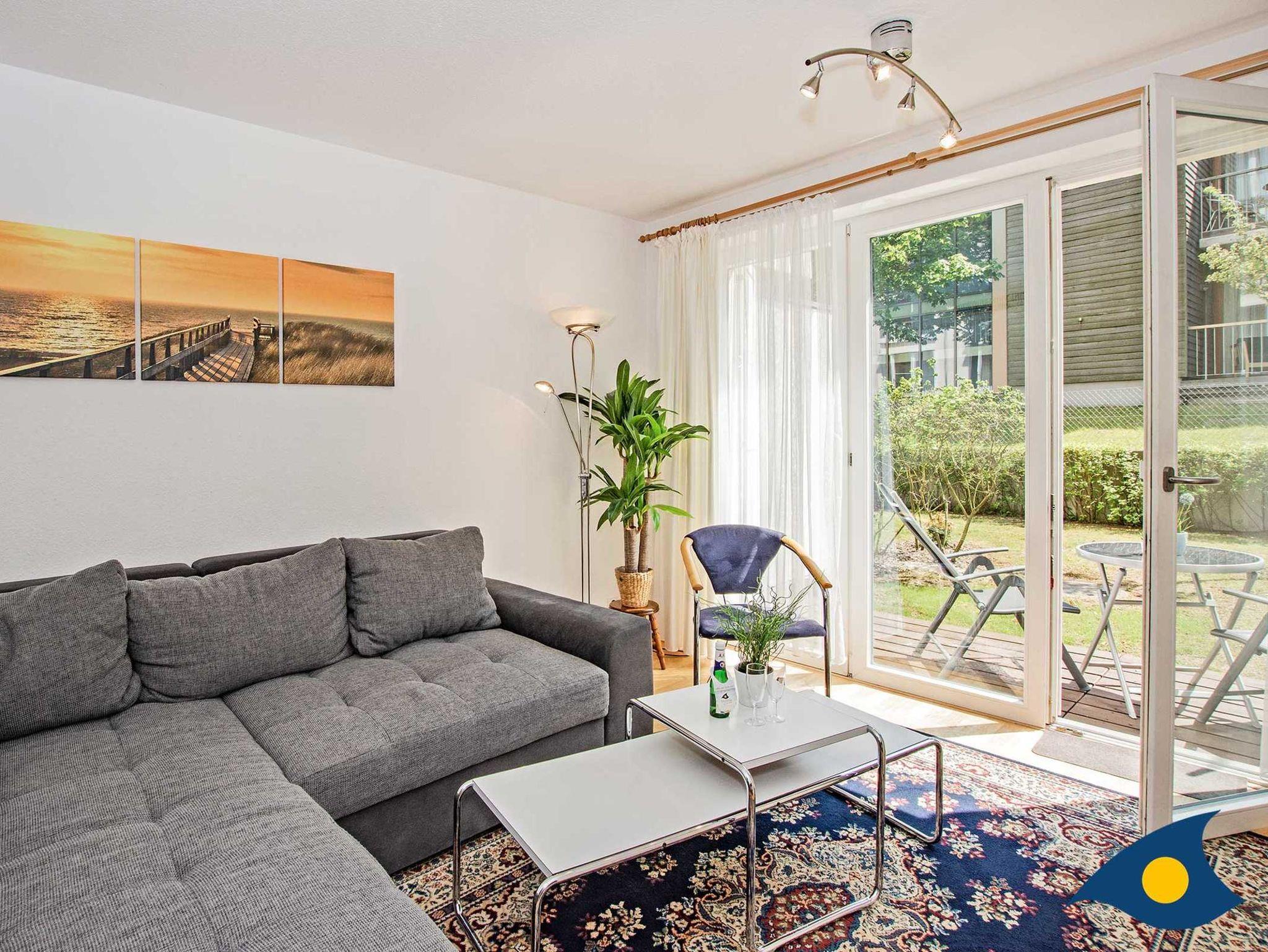 Die Couch im Wohnzimmer ist für die 3. und 4. Person als Schlafmöglichkeit schnell hergerichtet. Mit einer Schiebetür kann das Wohnzimmer vom übrigen Wohnbereich unkompliziert getrennt werden.