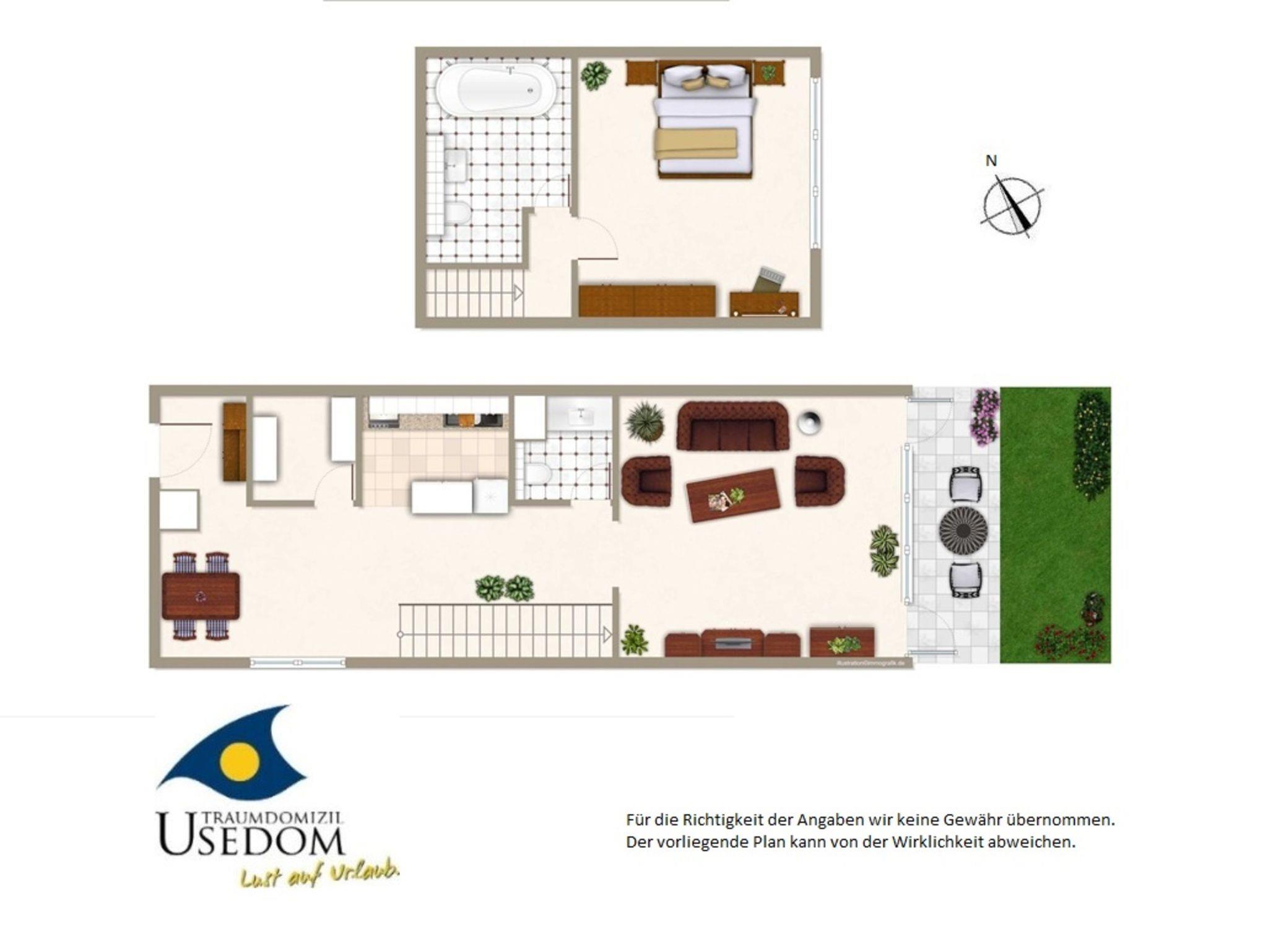 Dieses modern und liebevoll eingerichtete Appartement über 2 Etagen verfügt über eine Terrasse mit angrenzender Grünfläche, die vom Wohnzimmer aus begehbar ist.