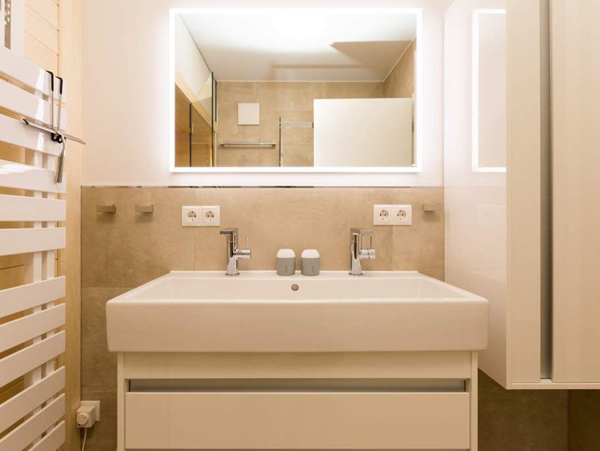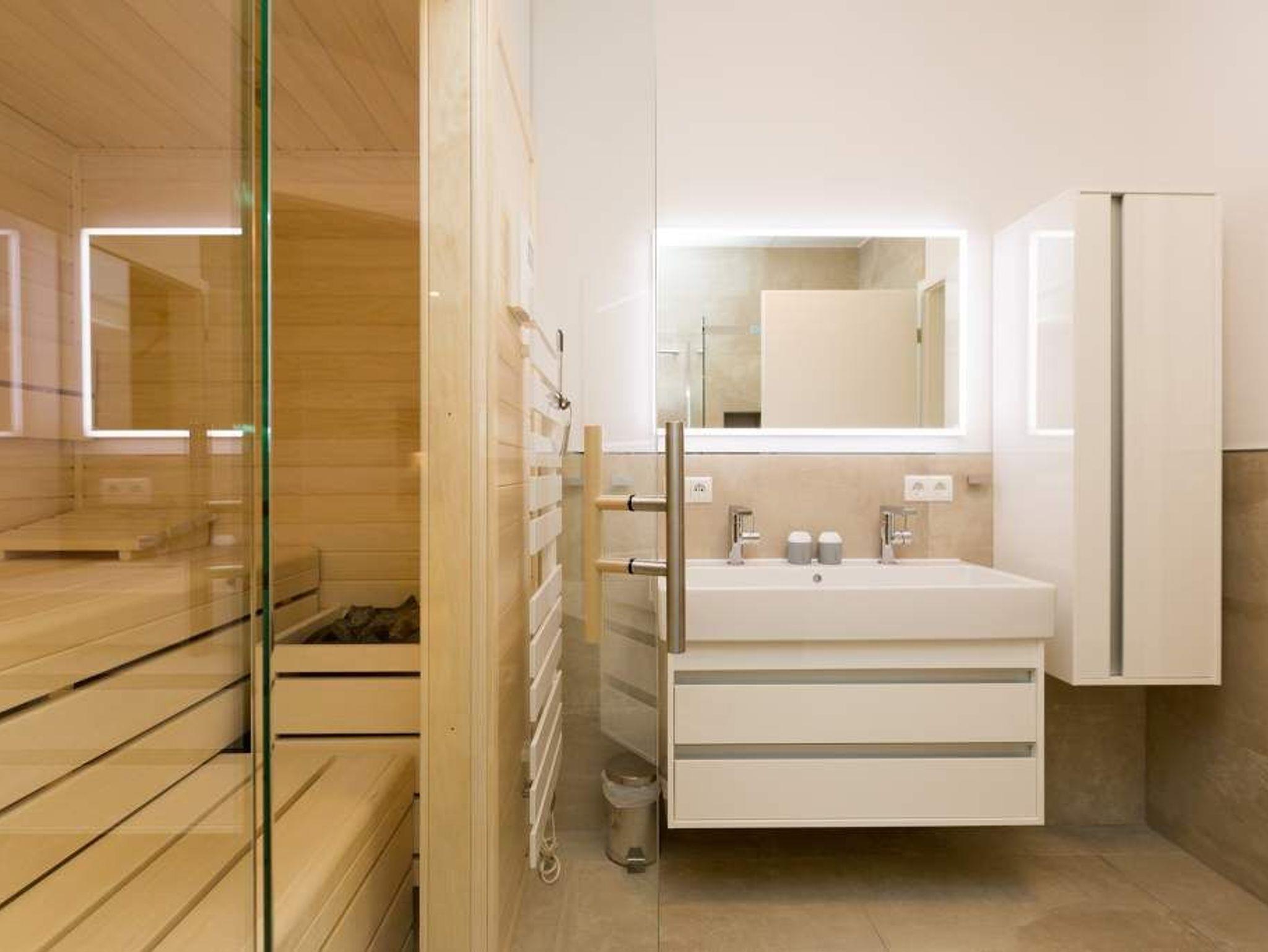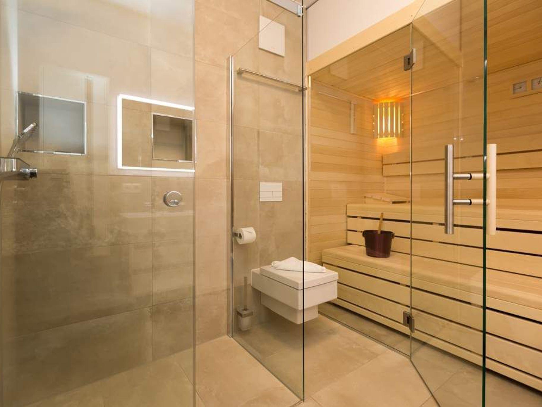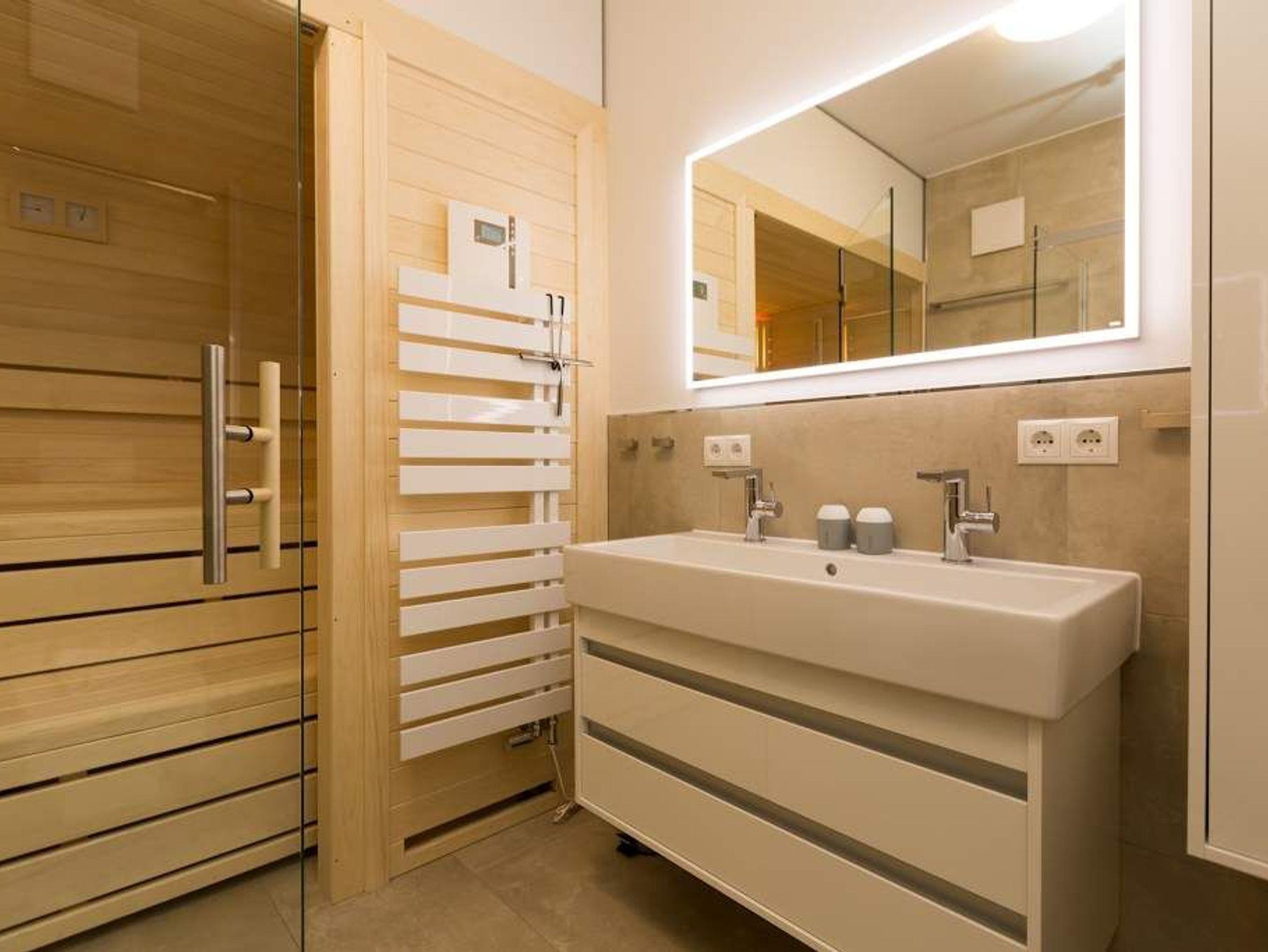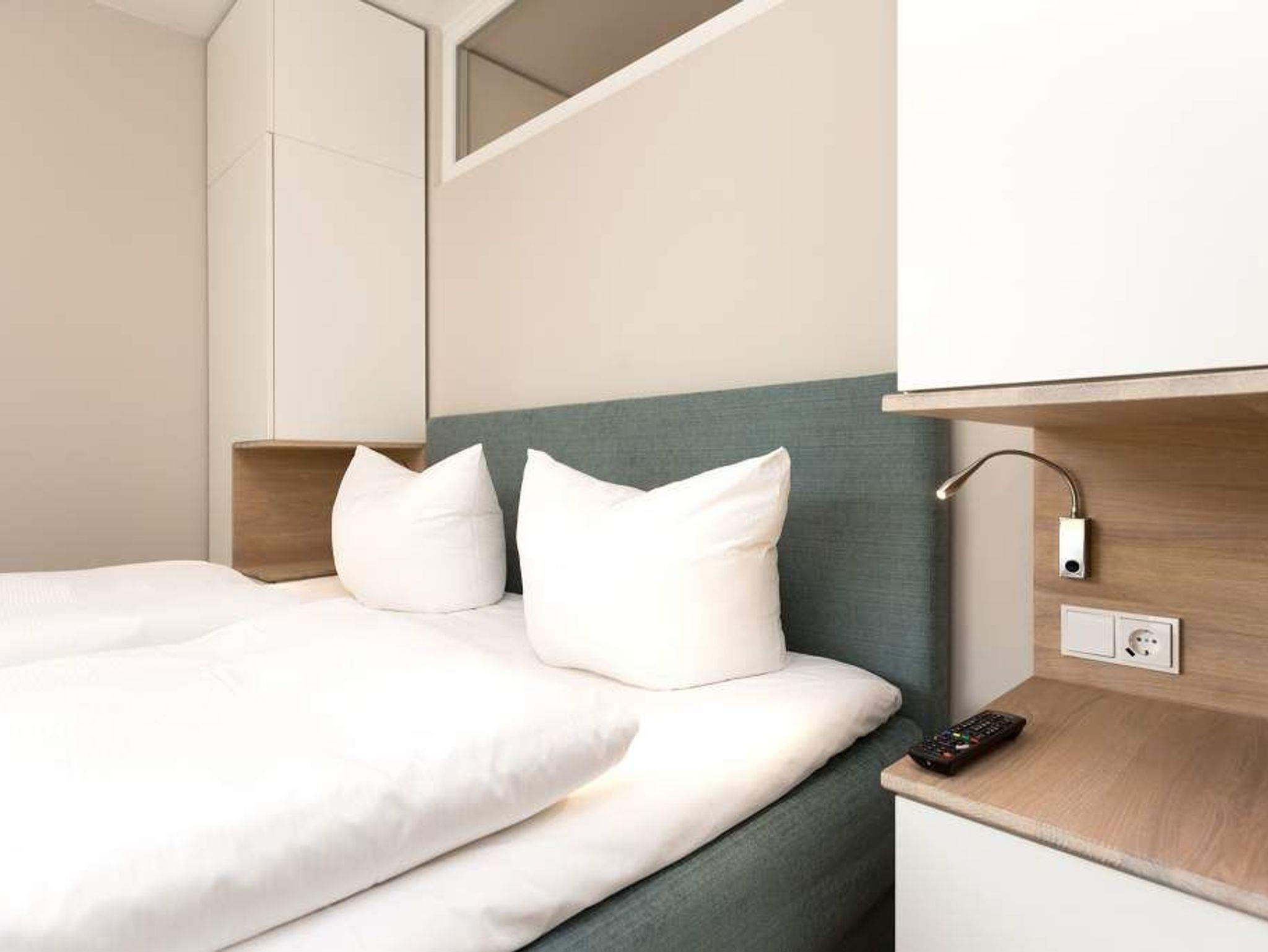 Ein Ferien-Appartement der Extraklasse erwartet sie im Erdgeschoss der Villa Strandgrün. Drei Räume ? außergewöhnlich, stylisch und absolut hochwertig eingerichtet ? machen Ihren Ostseeurlaub zu einem besonderen Erlebnis. Das knapp 68 Quadratmeter große Appartement ist für 4 Personen und 1 Kleinkind (bis zu 3 Jahre) im Kinderreisebett zusätzlich untergebracht werden. Helle und harmonisch aufeinander abgestimmte Farben verleihen der Wohnung in Kombination mit der Betonoptik der Bodenfliesen und den skandinavischen Designmöbeln ein modernes und exklusives Flair. Eine offene Wohnküche sorgt für eine kommunikative Atmosphäre. Der Wohnbereich besticht durch den Echtholztisch mit den Retro-Schalenstühlen aus Acryl. Entspannen Sie auf der chilligen Wohnlandschaft beim Blick auf den Echtholzkamin oder den 40 Zoll Flat-TV. Vom Wohnzimmer aus gelangt man auf die 30 Quadratmeter große Sonnenterrasse mit Süd-West-Ausrichtung. Zwei Schlafzimmer mit Boxspringdoppelbetten (1,80 m x 2,00 m), hochwertigen Einbauschränken und Flat-TV bieten komfortable Rückzugsmöglichkeiten. Die beiden Schlafzimmer sind über ein feststehendes Oberlicht-Fenster miteinander verbunden. Ein Schlafzimmer verfügt zusätzlich über einen direkten Zugang zur Terrasse. Das zweite Schlafzimmer hat kein zu öffnendes Fenster; die Lüftung erfolgt ausschließlich über die Tür zum Wohnbereich. Im geräumigen Wellnessbad befindet sich eine Panorama-Sauna, eine Tropendusche und ein Doppelwaschtisch. Die Ferienwohnung verfügt zusätzlich über ein Gäste-WC. In der Tiefgarage sind für Sie zwei Pkw-Stellplätze reserviert. Für Ihren Komfort sind die Betten bereits bezogen und Handtücher liegen bereit. Von Mai bis Anfang Oktober (je nach Wetterlage) kann der wohnungseigene Strandkorb am Strand genutzt werden.