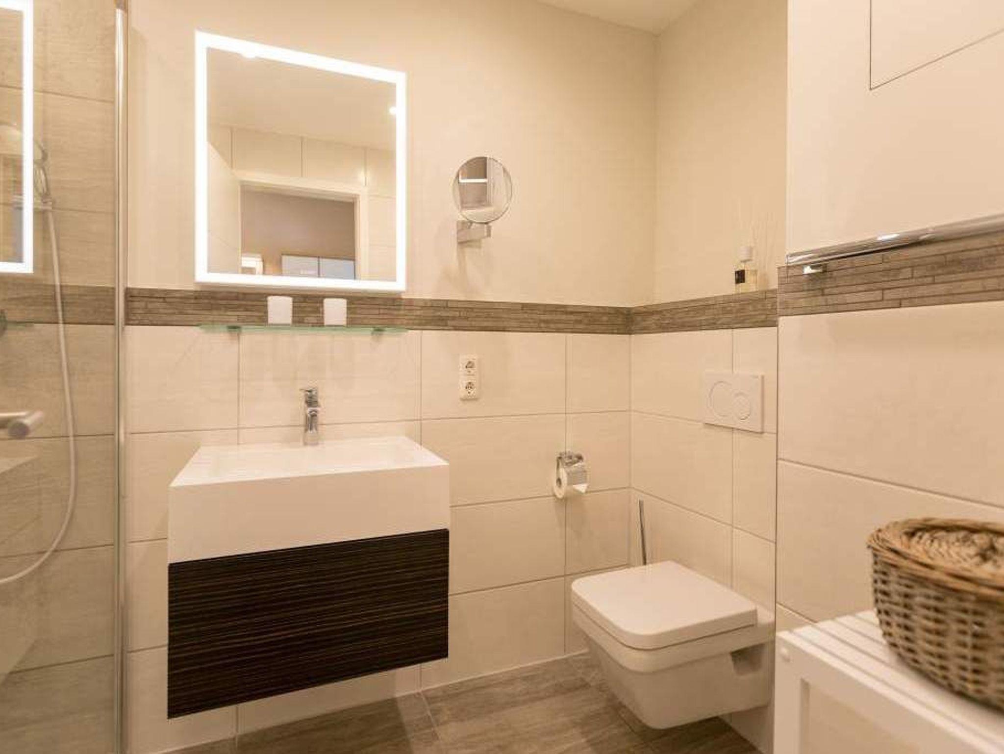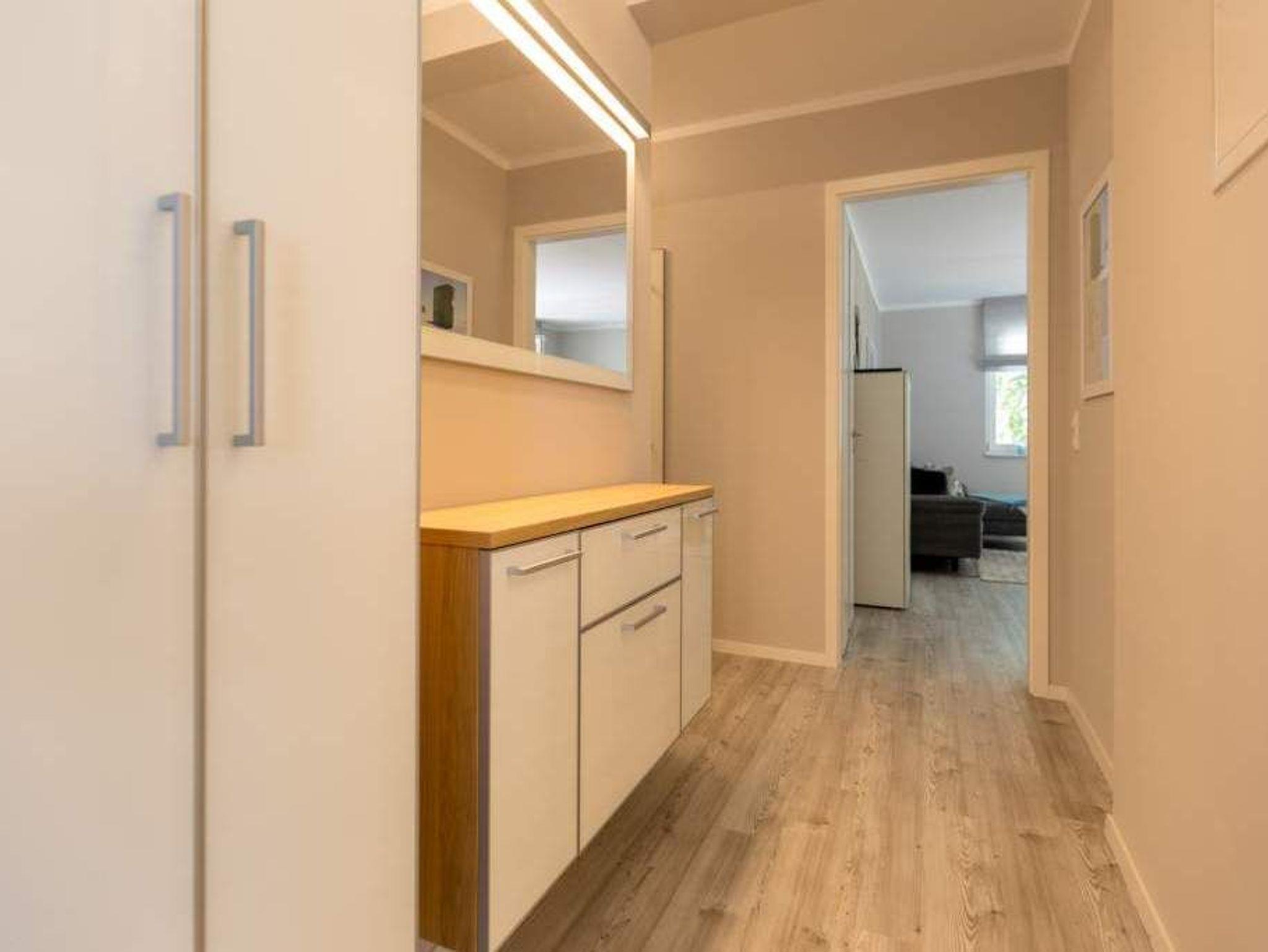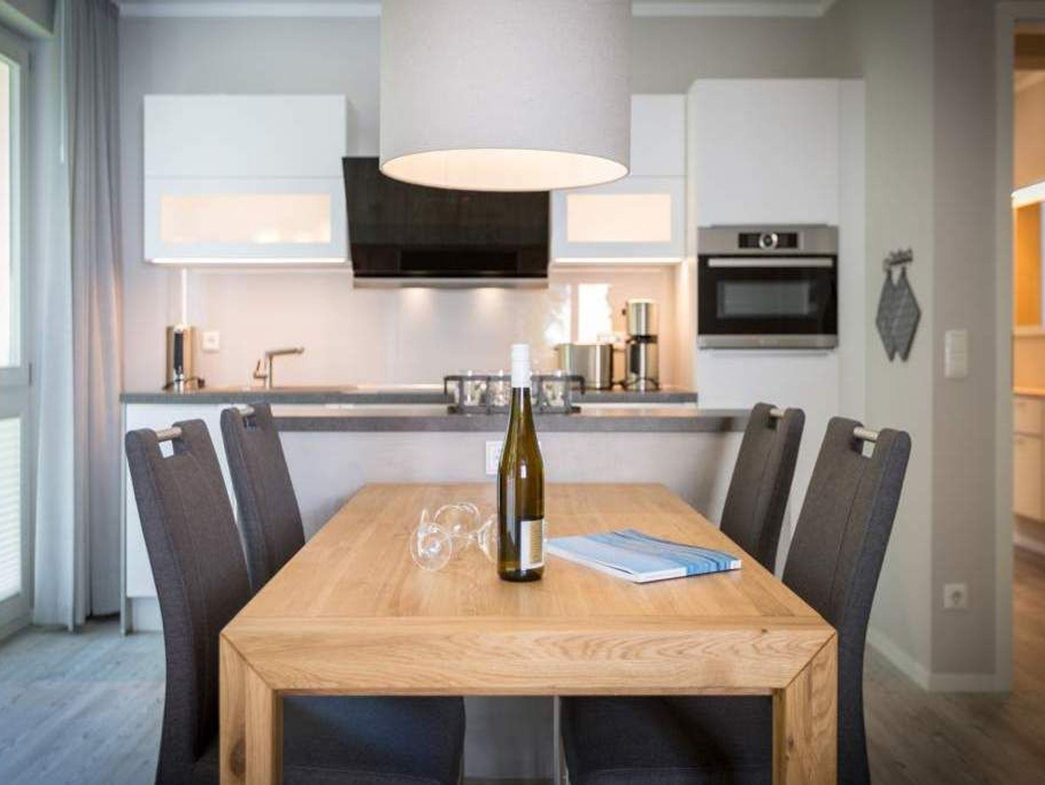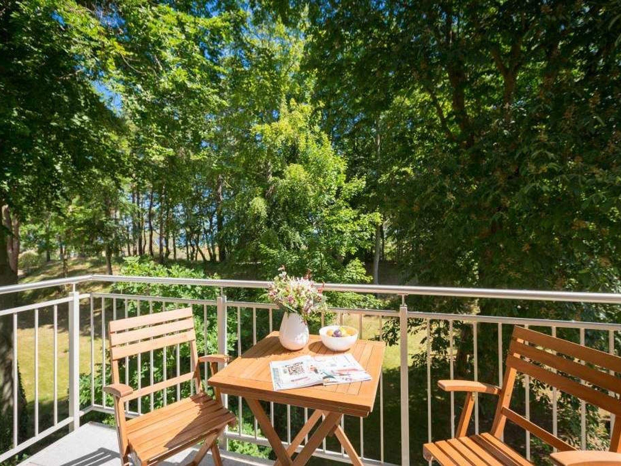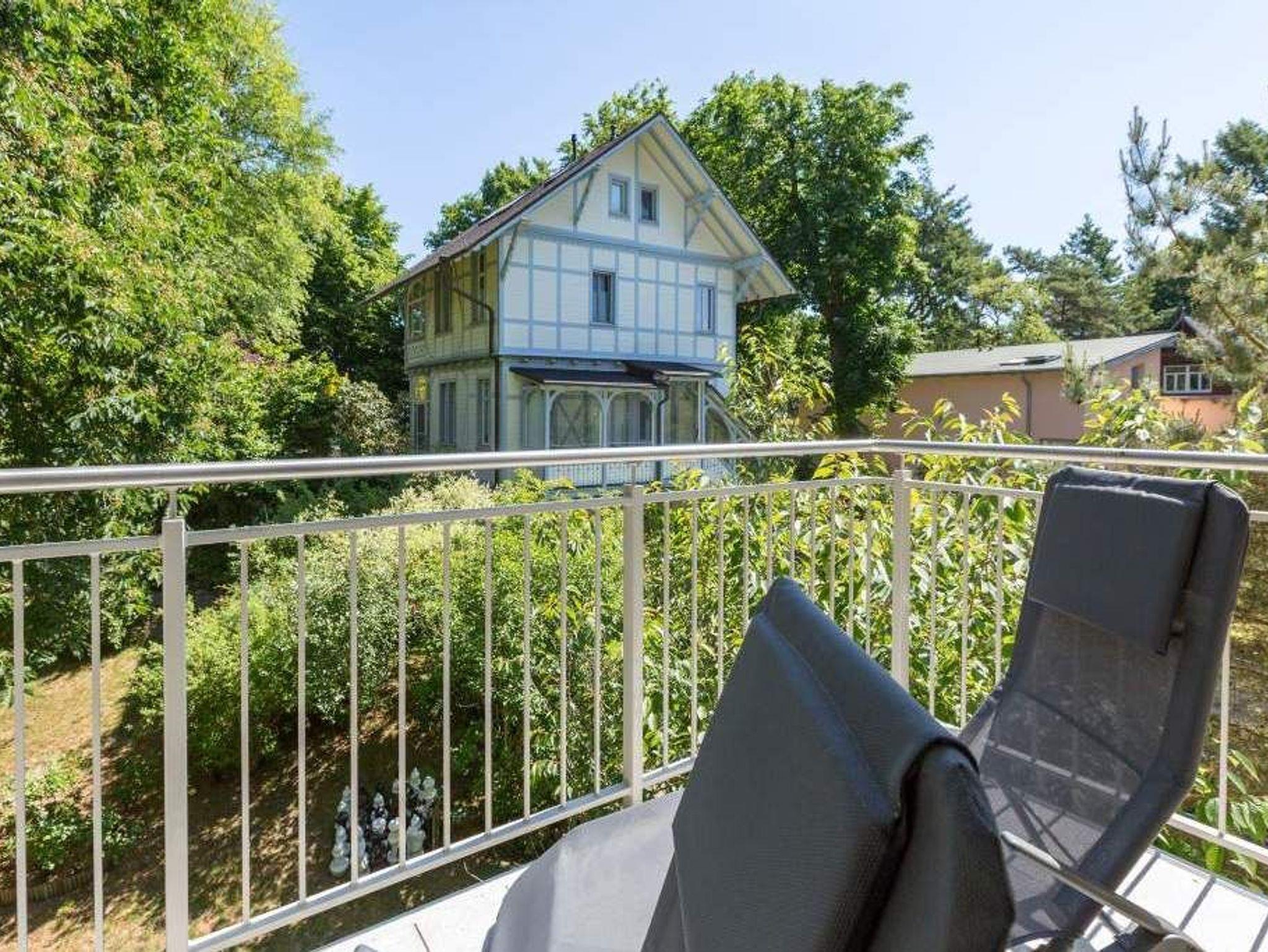 Durch das satte Grün der Bäume schimmert glitzernd blau die Ostsee hindurch. Morgens bei Sonnenschein auf dem Balkon zu sitzen, den Vögeln und dem Meeresrauschen zu lauschen, ist ein perfekter Start in den Urlaubstag. Ob allein oder zweit ? in diesem exklusiven und modernen Ferienappartement wird Ihre Erholung zum entspannten Genuss. Denn viel Platz, Leichtigkeit und Stil prägen die schick eingerichtete, 66 Quadratmeter große Wohnung. Hier gibt es nicht nur ein Highlight, das Ihre Ostseeauszeit zu etwas ganz Besonderem macht. Neben den beiden Balkonen ? vom Wohnzimmer aus und vom Schlafzimmer aus begehbar ? erwartet Sie hier eine kleine Wohlfühloase, die das ganze Jahr über ihre Reize hat. Gerade auch im Winter bietet dieses Urlaubsdomizil die Möglichkeit zur Entspannung. Wenn die Bäume kahl und starr vom kalten Nordost klirren und den Blick auf die schier endlose, in manchen Jahren sogar zugefrorene Ostsee frei geben, können Sie sich diese Landschaft aus dem Wohn- und dem Schlafzimmer, aber auch aus der kuschelig warmen Panorama-Sauna heraus anschauen. Denn auch die mit einem LED-Farblichtsystem versehene Sauna ( für finnischen Saunabetrieb und BIO-Betrieb mit Verdampfer) gehört zu der Wohnung Nummer 7 im 2. Obergeschoss der Villa Barbara dazu. Die unterschiedlichen Lichtstimmungen sorgen zusätzlich für Entspannung pur. Ruhe und Erholung finden Sie zudem in dem geräumigen Wohn-Esszimmer. Eine gemütliche Sofalandschaft lädt zum Relaxen vor dem großen Flat-TV ein. Eine Media-Anlage offeriert Internet Radio und Bluetooth Streaming. Das WLAN ist kostenfrei. Die offene Küche ist mit hochwertigen Geräten und Geschirr voll ausgestattet. Essen können Sie am schönen Echtholztisch. Die große, bodentiefe Fensterfront lässt viel Licht hinein. Echtes Schlafvergnügen gewährleistet im ebenso schönen Schlafzimmer ein komfortables Boxspringdoppelbett (1,60 m x 2,00 m). Viel Ablage bietet der große Kleiderschrank. Auch in diesem Zimmer befindet sich ein Flat-TV. Von hier aus haben Sie Zugang zu einem zweiten Balkon. Genießen Sie hier auf den Sonnenliegen den Sommer. Im Badezimmer steht Ihnen neben dem Zugang zur Sauna eine ebenerdige und sehr geräumige Regendusche, ein Waschtisch und ein WC zur Verfügung. Bei Ihrer Anreise liegen die Handtücher für Sie bereit und das Bett ist bezogen. Ein Pkw-Stellplatz befindet sich am Haus. Für den Tag am Strand steht Ihnen in den Sommermonaten ein Strandkorb (je nach Witterung) zur Verfügung.