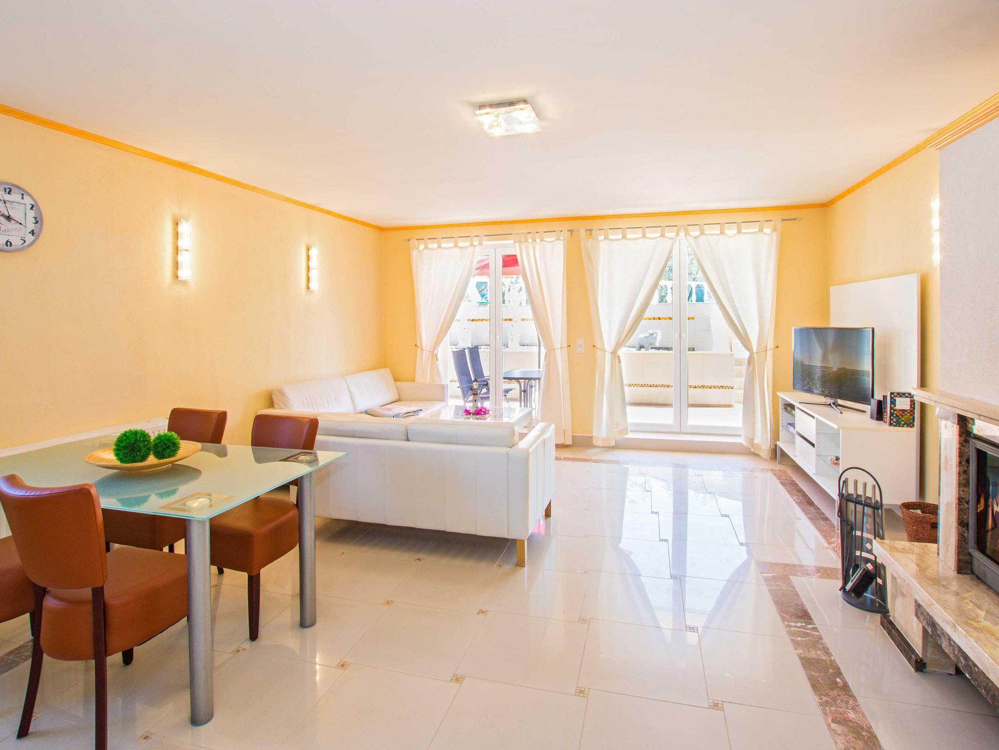 Im Erdgeschoss gelegen, unterteilt sich die Wohnung in ein Schlafzimmer mit einem großen Doppelbett, einen offenen Wohn-, Koch-, und Essbereich und ein Duschbad mit Handwaschbecken, Bidet und WC. Im Schlafzimmer finden Sie Komfort und Funktionalität im großzügigen Ehebett mit zwei Nachttischen und einem geräumigen Kleiderschrank mit Spiegeltüren.