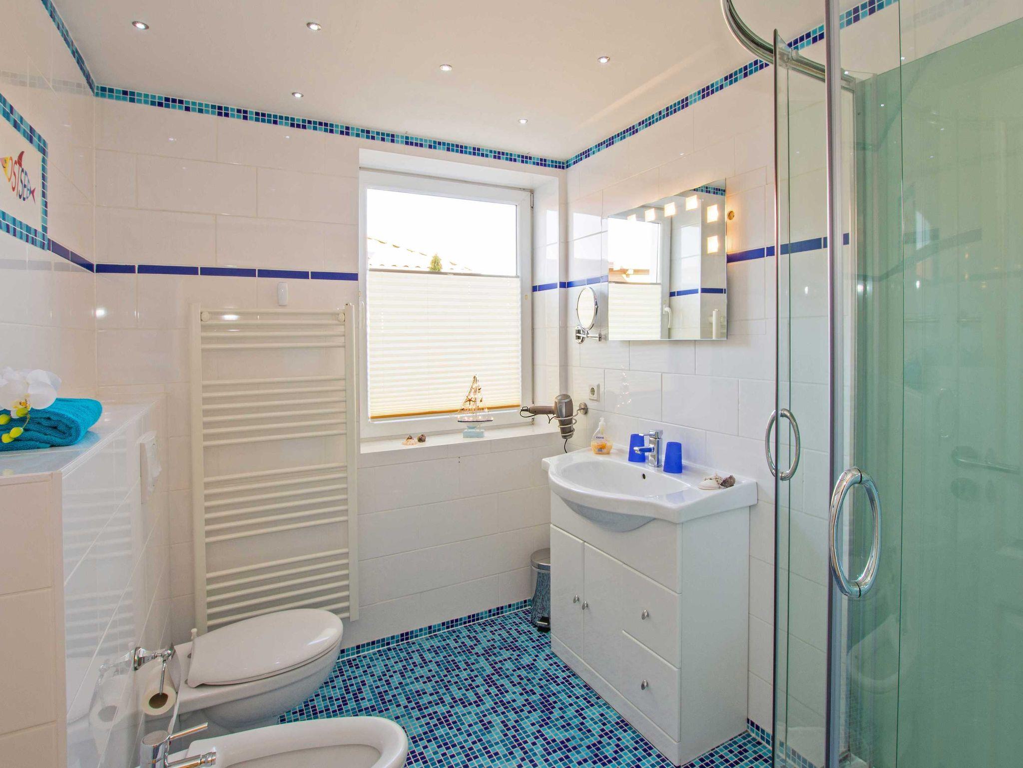 Jede der Ferienwohnungen ist ein gemütliches Zweiraumapartment mit einer großzügigen Wohnfläche von 50 Quadratmetern. Die Wohnung Nizza im 2. Obergeschoss ist perfekt für bis zu 2 Gäste plus Baby, während die anderen vier Wohnungen (Barcelona und Granada im Erdgeschoss, Pisa und Florenz im 1. Obergeschoss) Platz für bis zu 3 Gäste plus Baby bieten. Genießen Sie die exklusiv gestalteten Schlafzimmer und die bequeme Schlafcouch in den Wohnzimmern, die in einem warmen südländischen Flair erstrahlen und auch in der kalten Jahreszeit ein angenehmes Raumklima schaffen. In vier der Wohnungen (die im Erdgeschoss und 1. OG) sorgt ein Kamin im Wohnbereich für zusätzliche Gemütlichkeit. Der Wohnbereich ist mit modernem Komfort ausgestattet, darunter ein 40 3D Flat TV, eine Hifi-Soundanlage mit Blue-Ray Player und hochwertigem Mobiliar. Die voll ausgestattete Küche lässt keine Wünsche offen. Die maritim gestalteten Bäder verfügen über eine Dusche, WC, Bidet und einen Waschtisch mit Spiegel.