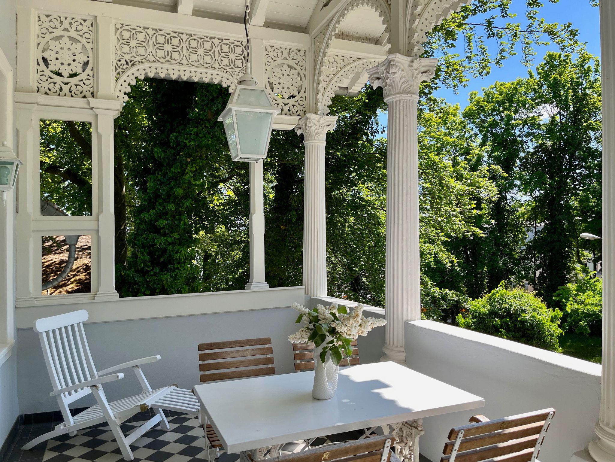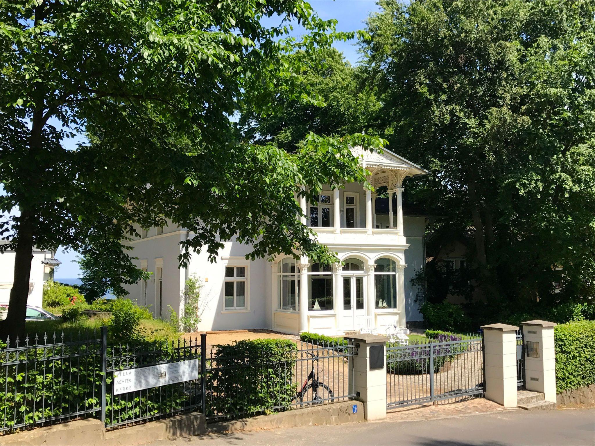 Die bezaubernde 5-Sterne-Villa (erbaut im Jahre 1845) ist eine der ältesten erhaltenen Villen Heringsdorfs. Erhaben liegt sie - mit phantastischem Blick - auf der Anhöhe des Kulms, auf einem großzügigen, gepflegten Grundstück mit altem Baumbestand. Meerseitig wurde das Haus erweitert und öffnet sich zur Ostsee ? mit Meerblick aus allen Wohnungen. Viele Stammgäste kehren immer wieder an diesen erholsamen Ort zurück und schätzen das inhabergeführte Haus.