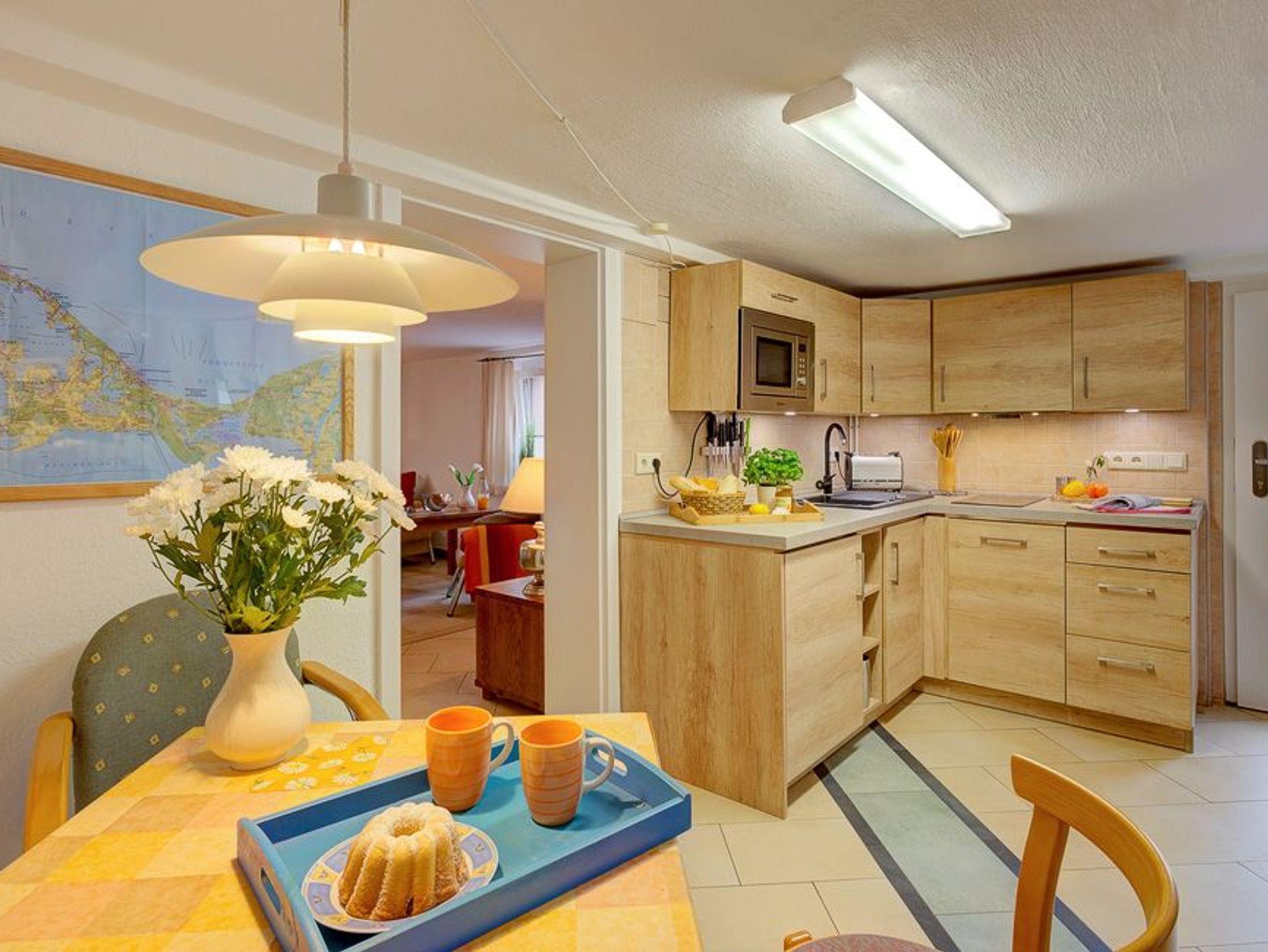 Damit Sie Ihre wohlverdiente Urlaubszeit bereits am Anreisetag in vollen Zügen genießen können, haben wir das Bett für Sie und das für Ihre lieben Mitreisenden bereits bezogen und ein Duschtuch sowie ein kleines Handtuch bereitgelegt. Die separate Küche mit moderner Küchenzeile inkl. Induktionskochfeld (2Felder), Geschirrspüler, Mikrowelle m. Grillfunktion, Kühlschrank mit Gefrierfach, Wasserkocher, Toaster, Kaffeemaschine sowie Eierkocher lässt keine Wünsche offen. An dem Esstisch können Sie Platz nehmen um den kulinarischen Freuden zu frönen.