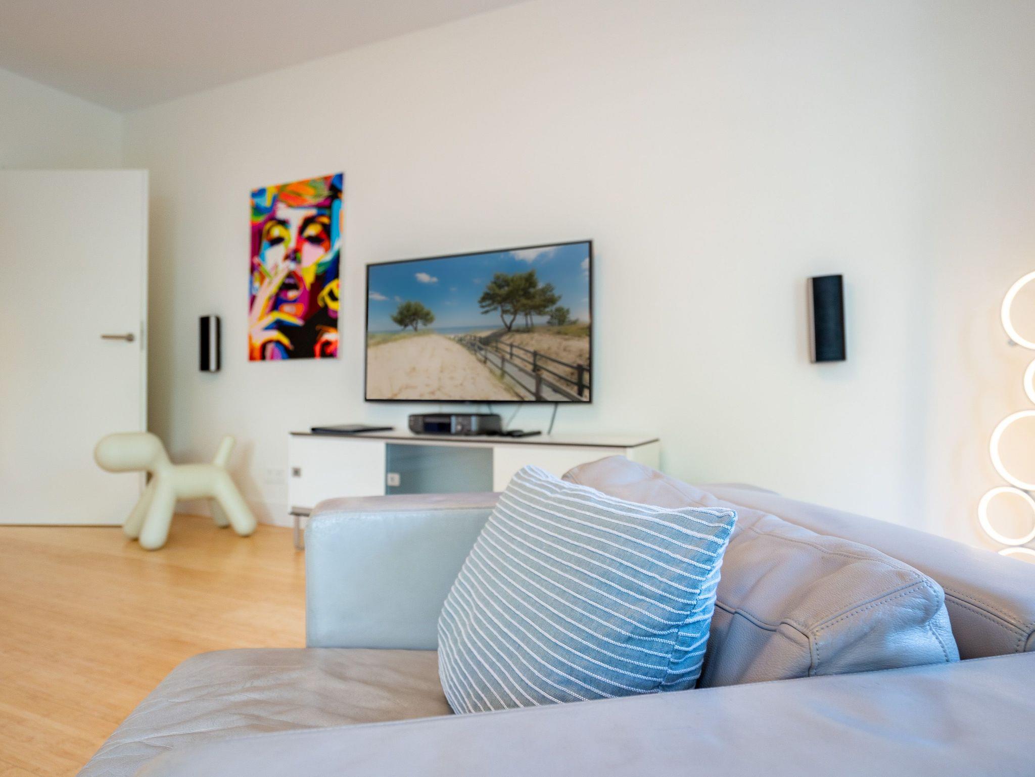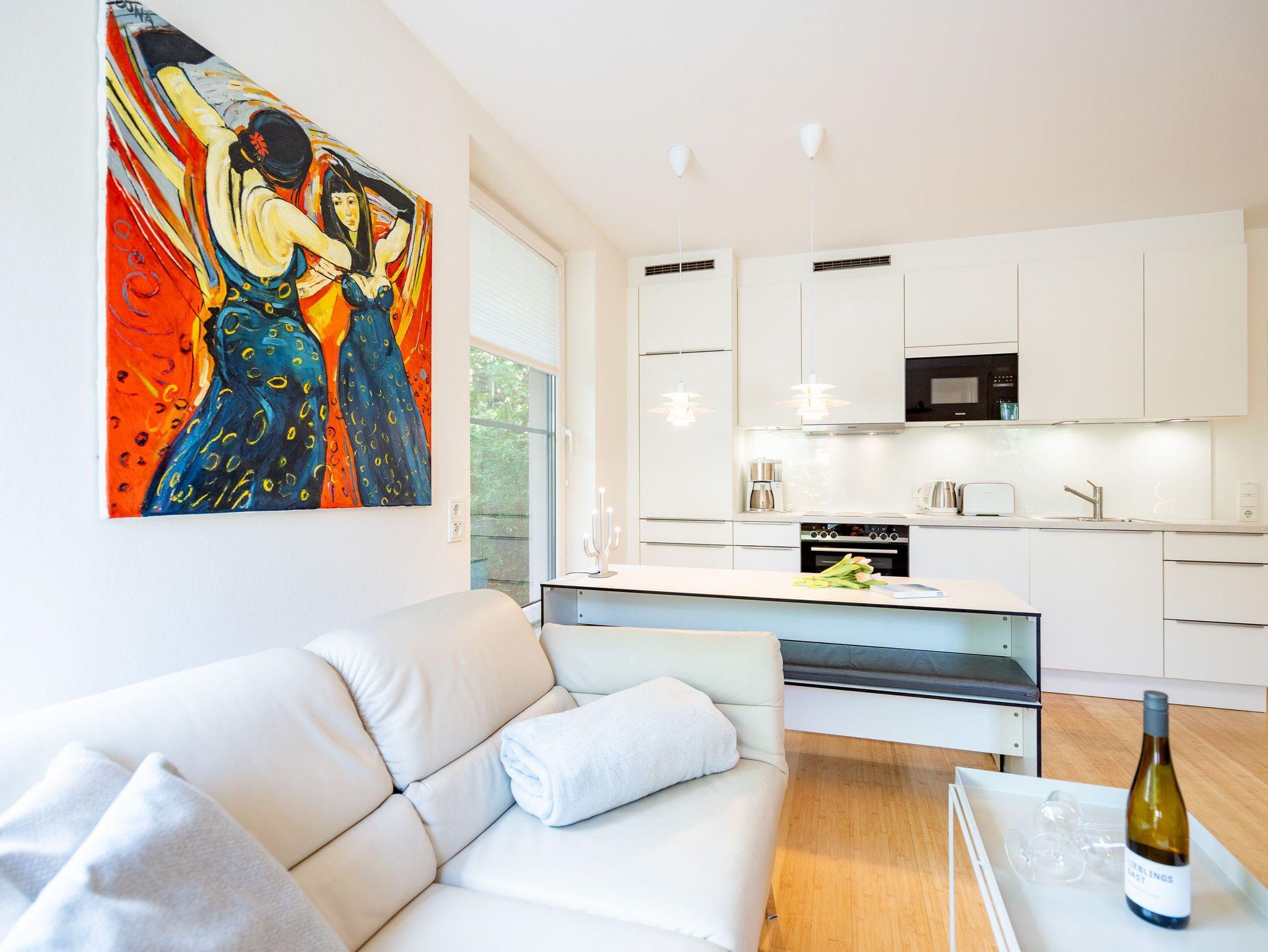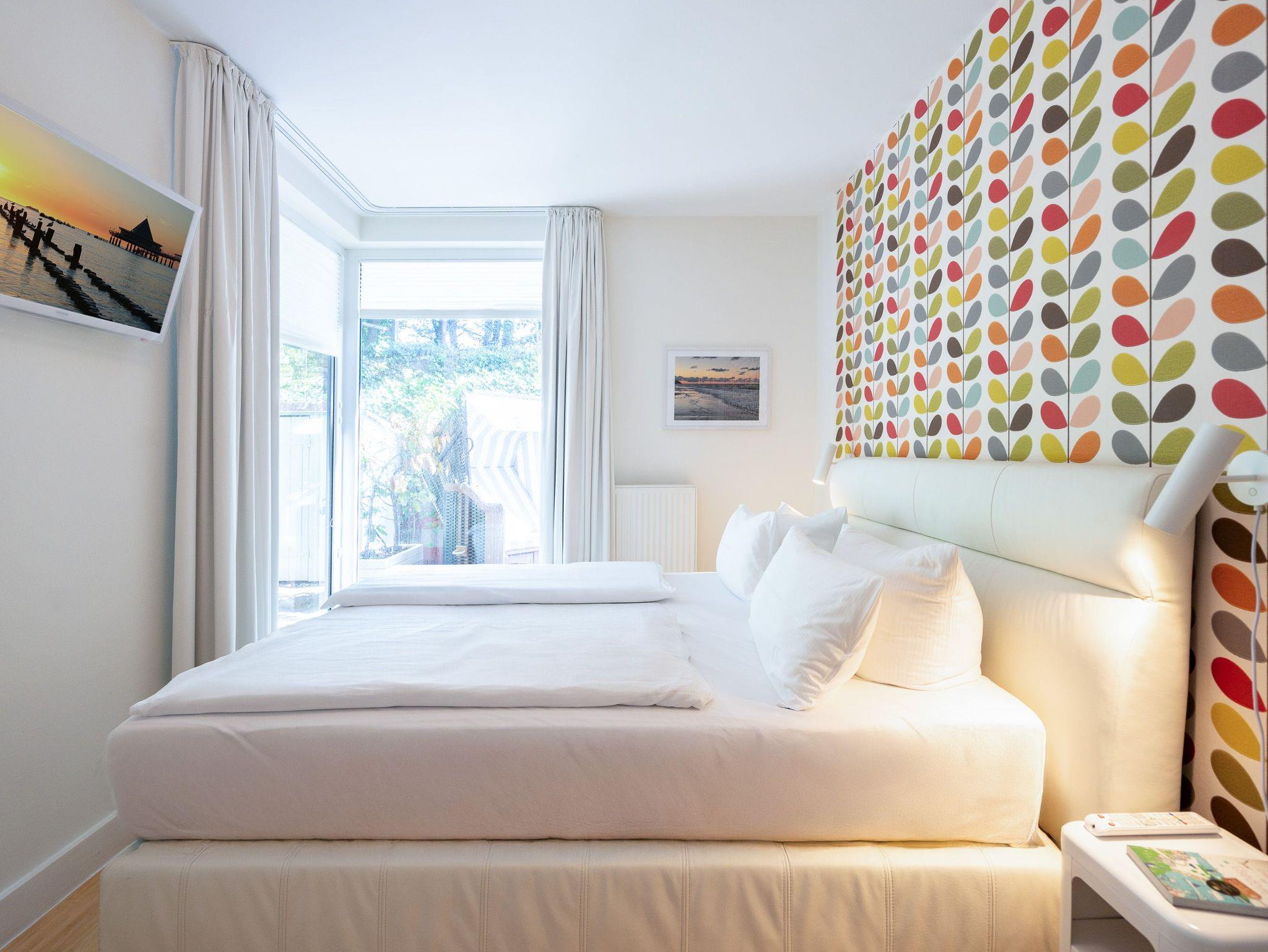 Wellness, Entspannung und die unmittelbare Nähe zum Meer machen die Erdgeschoss-Ferienwohnung 10 zu einem ganz besonderen Urlaubserlebnis. Die helle und modern eingerichtete Wohnung bietet drei stilvolle Zimmer, eine perfekt ausgestattete Küchenzeile mit großem Esstisch und gemütlichen Sitzbänken sowie einen Designer-Elektrokamin, der für eine behagliche Atmosphäre sorgt. Das luxuriöse Badezimmer verwöhnt mit hochwertigen Markenmöbeln, einem Doppelwaschtisch und einem Duschpaneel mit Fitness- und Massagefunktion. Ein besonderes Highlight ist die integrierte Tylö Infrarotsauna mit Farblicht, Touch-Bedienfeld, Bluetooth und Carbonstrahlern, die nach ausgedehnten Spaziergängen am Wasser oder an warmen Sommertagen wie auch in der kalten Jahreszeit für pure Entspannung sorgt. Das erste Schlafzimmer lädt mit einem komfortablen 1,80 m x 2,00 m Boxspringbett aus Leder, einem Smart-TV, einem geräumigen Schrank sowie einem angenehmen Blick in den angrenzenden Gartenbereich zum Träumen ein. Das zweite Schlafzimmer präsentiert sich in modernem Industrial-Design und bietet ein 1,40 m x 2,00 m Doppelbett sowie einen weiteren Smart-TV. Besonderen Komfort bieten die beiden großzügigen Terrassen: Während die hintere Terrasse zum sonnigen Frühstück einlädt, bietet die vordere den perfekten Platz für entspannte Nachmittage und gemütliche Abendstunden. Zwei Liegen, komfortables Außenmobiliar und ein Strandkorb sorgen für zusätzlichen Genuss. Alle Räume sind mit Insektenschutz ausgestattet, sodass ungestörte Erholung garantiert ist. Für Familien mit kleinen Kindern stehen auf Wunsch ein Kinderreisebett (ohne zusätzliche Matratze [&] Bettzeug) sowie ein Hochstuhl zur Verfügung. Damit der Urlaub von Anfang an entspannt beginnt, sind die Betten bei Anreise bereits bezogen und frische Handtücher liegen bereit. Genießen Sie einen erholsamen Urlaub in erster Reihe zum Strand ankommen, abschalten und wohlfühlen.