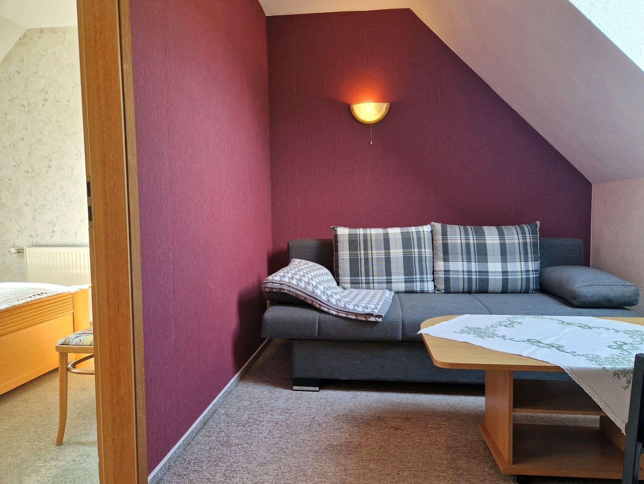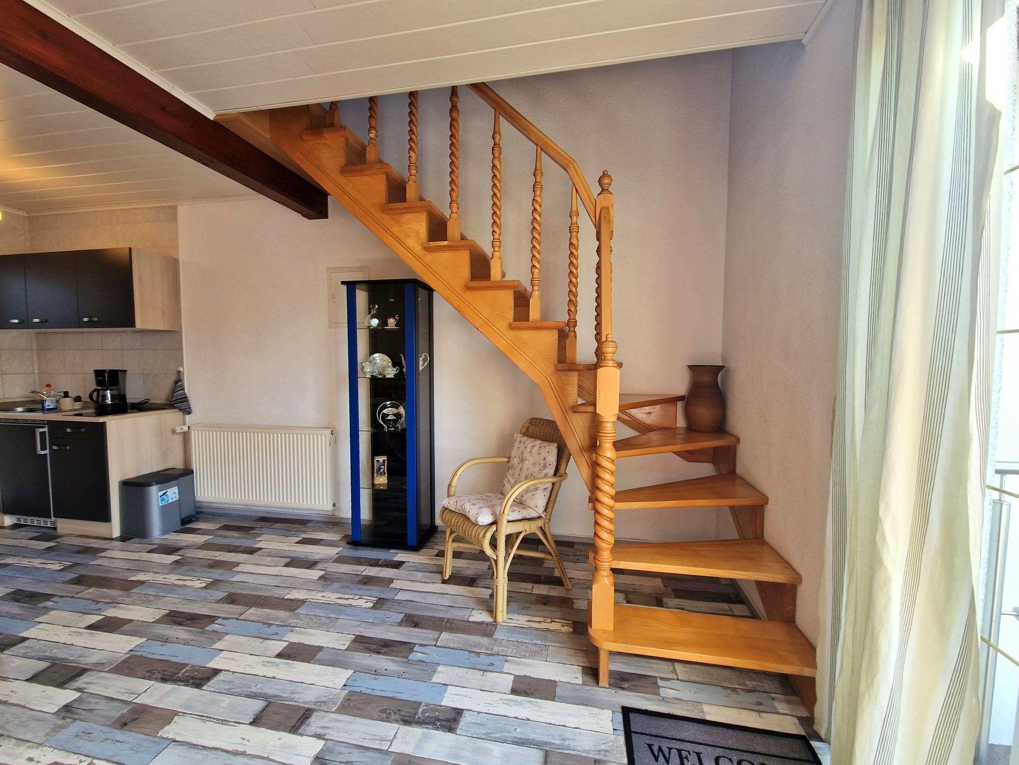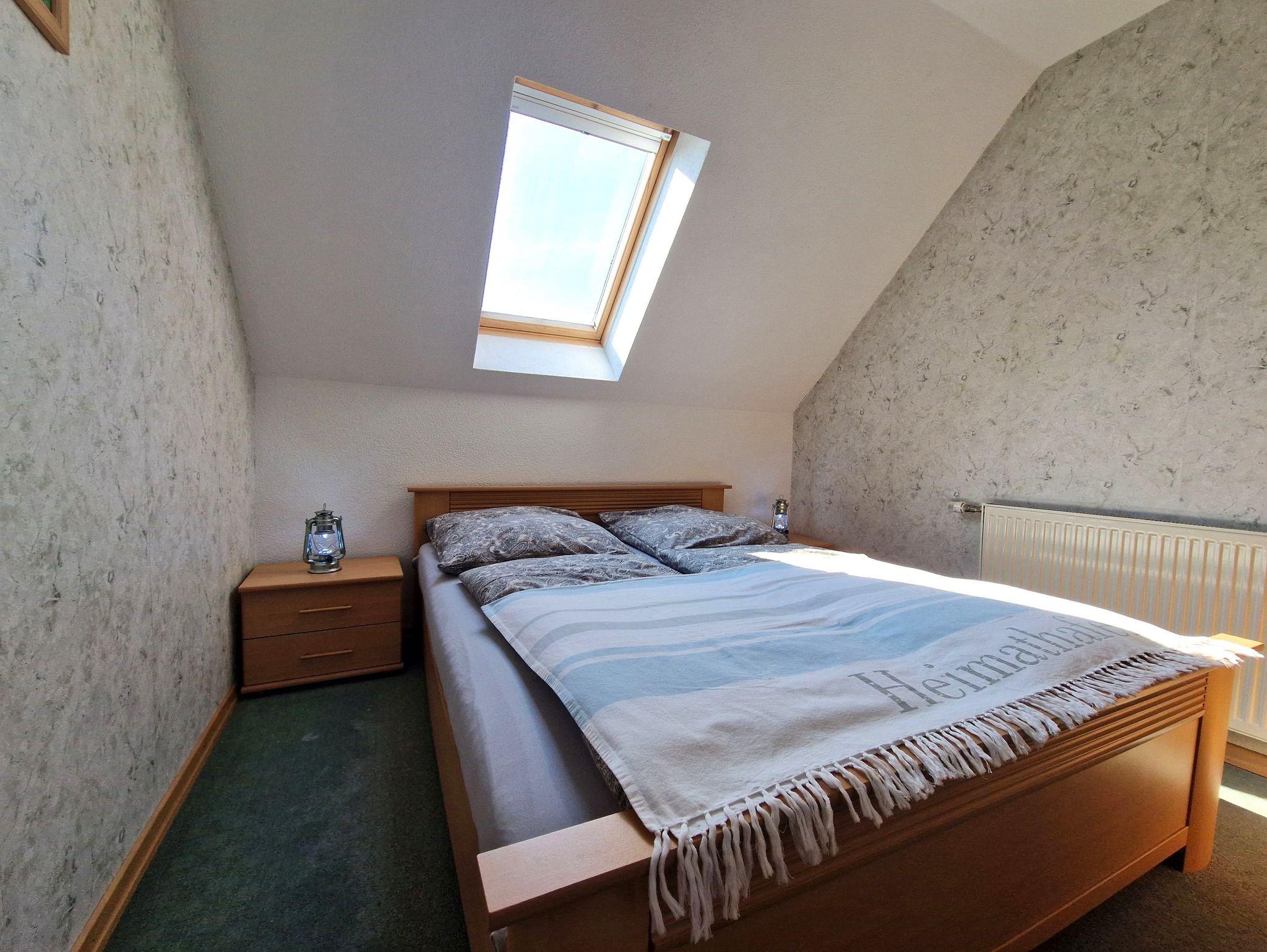Die Ferienwohnung in der rechten Doppelhaushälfte bietet auf ca. 50 m² Platz für bis zu 4 Personen und ist der perfekte Ort für einen entspannten Urlaub. Im oberen Bereich finden Sie ein gemütliches Schlafzimmer mit einem komfortablen Doppelbett. Direkt davor gibt es einen einladenden Sitzbereich, in dem sich die Couch bei Bedarf schnell in ein zusätzliches Bett verwandeln lässt - ideal für zwei weitere Personen. Für Unterhaltung sorgen ein Flachbild-TV und ein Radio, und im gesamten Objekt haben Sie freien Zugang zum Internet über WLAN.