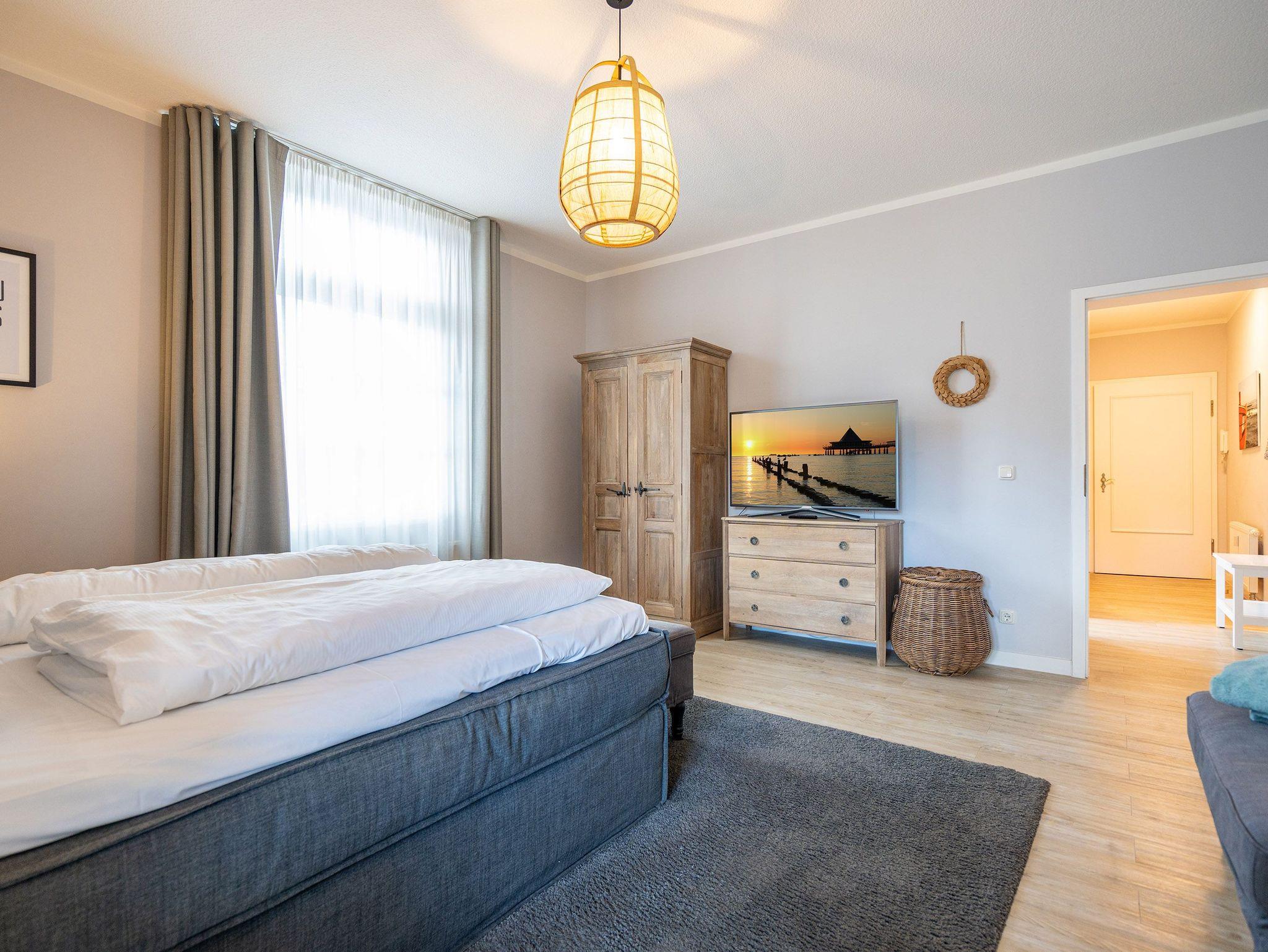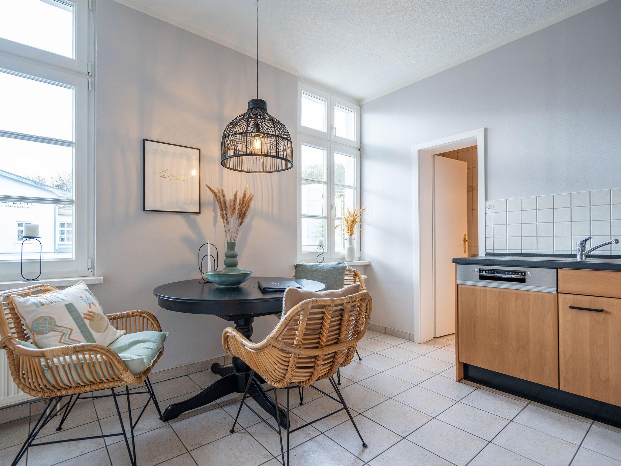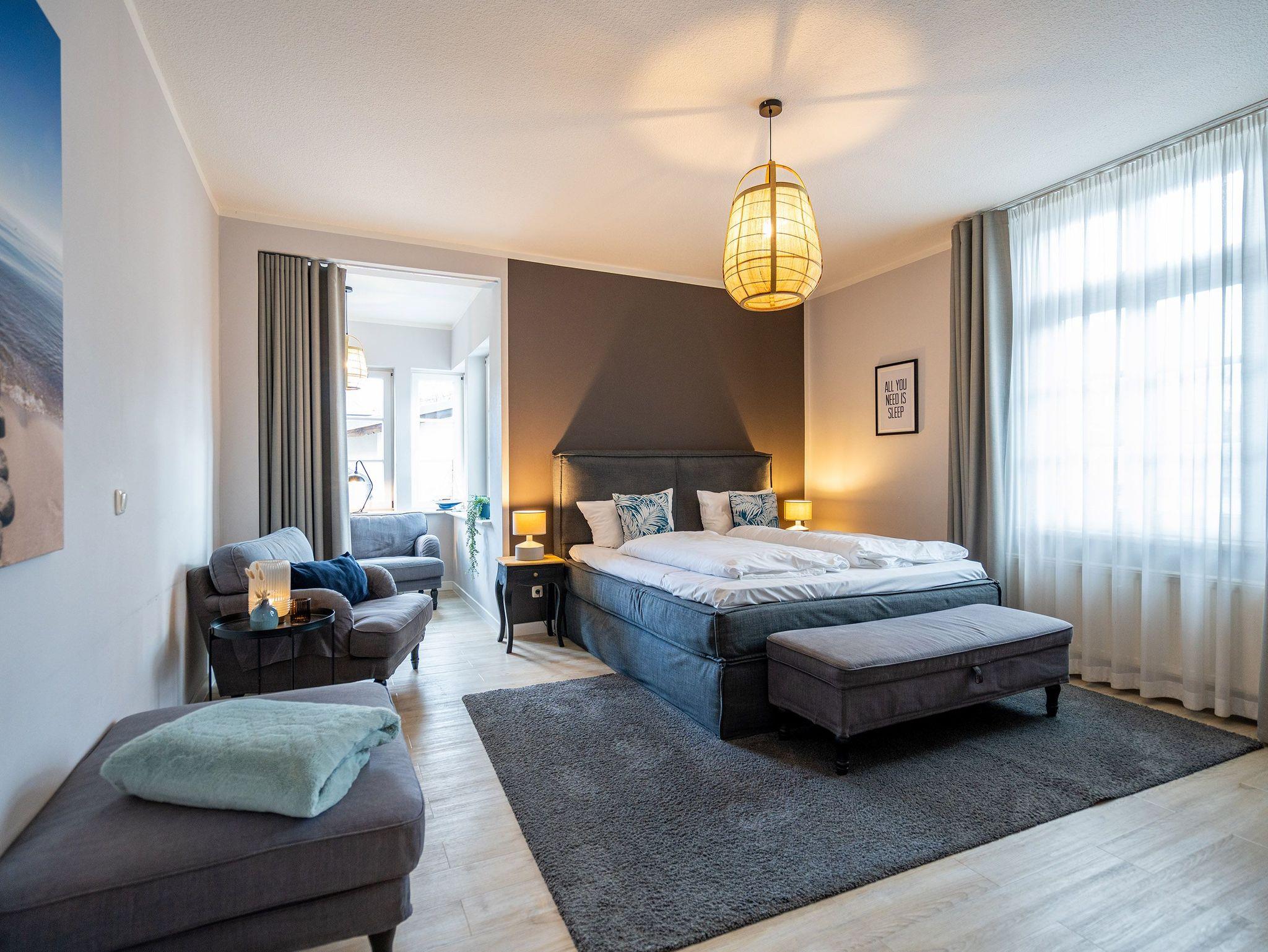 Modern, stylisch [&] trotzdem gemütlich - im 1. Obergeschoss der Villa Brunnenstraße erwartet Sie unser 1-Raum-Appartement mit Platz für 2 Personen [&] 1 Kleinkind ( im Kinderreisebett). Der kombinierte Wohn-Schlafbereich ist mit einem komfortablen Doppelboxspringbett ( 1,80m x 2,00m) und einer bequemen Couch ausgestattet, von beiden hat man Blick auf den Flat-TV. Die kleine, lichtdurchflutete Loggia lädt zum Relaxen im gemütlichen Sessel ein, von hier hat man einen schönen Blick auf die Villen der Brunnenstraße. Eine separate, komplett ausgestattete Küche mit Essplatz und ein Duschbad ergänzen die Wohnung. Ein PKW-Stellplatz steht auf dem Innenhof zur Verfügung.
