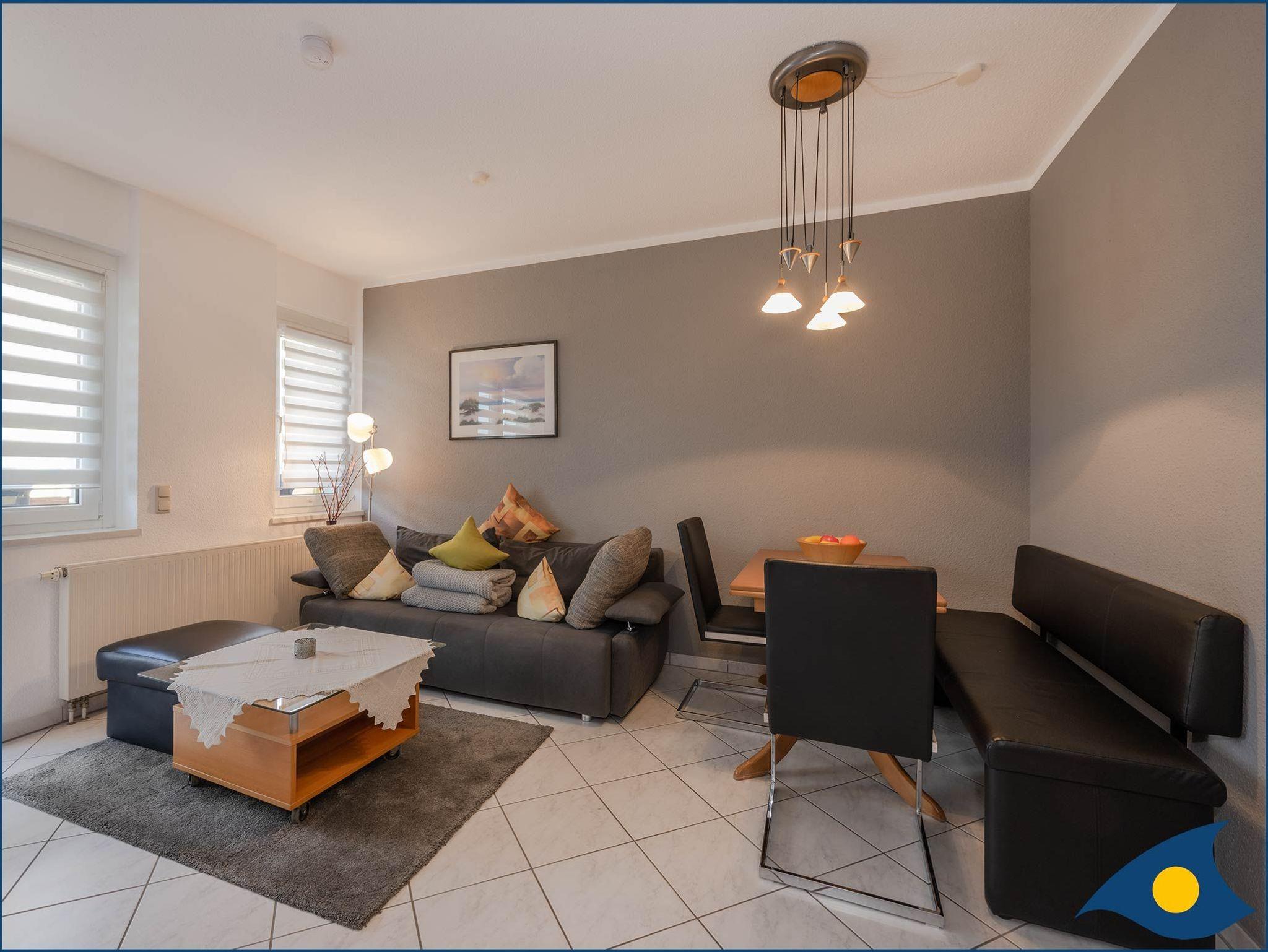 Die separate, voll ausgestattete Küche lädt zum gemeinsamen Kochen ein. Ihre kulinarischen Kreationen können Sie an dem großen Esstisch im Wohnzimmer genießen. Das bequeme Sofa im Wohnbereich kann als Aufbettung für 2 Kinder bis 9 Jahre genutzt werden. Das Wohnzimmer dient zudem als Zugang zum sonnigen Balkon.
