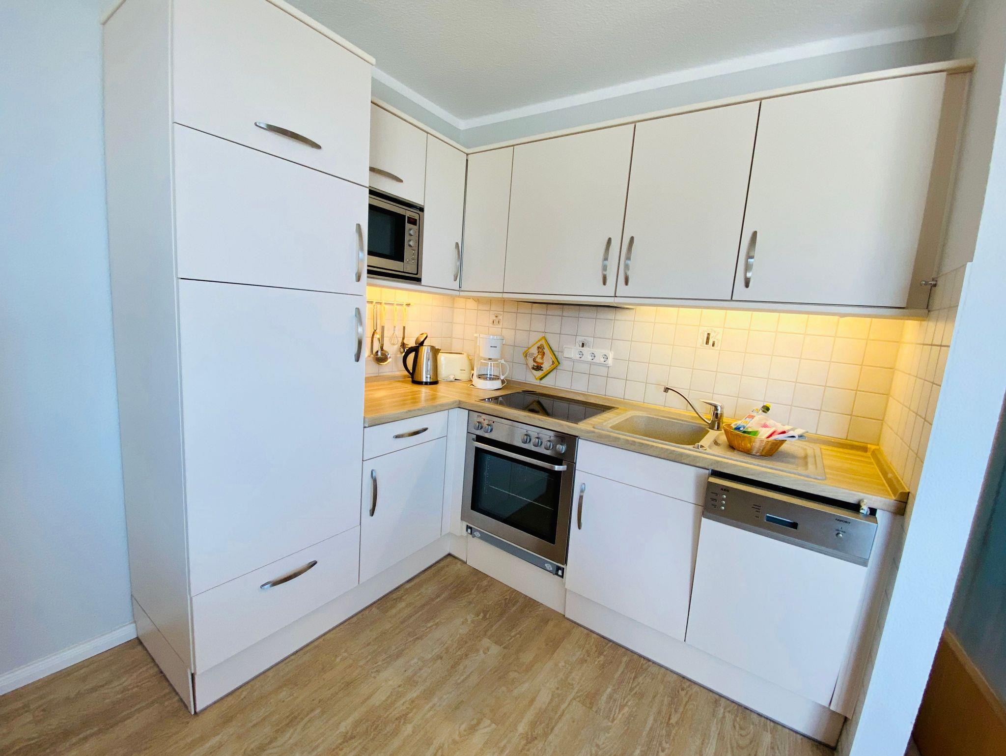 Die schöne 2 Raumwohnung Nr. 9 mit 65m² befindet sich im ersten Obergeschoss des Hauses und ist über das Treppenhaus zu erreichen. Sie ist komplett modernisiert und bietet Platz für 2 bis 4 Personen (Schlafcouch im Wohnzimmer). Die hochwertige Möblierung und viele geschmackvolle Details schaffen das perfekte Urlaubsfeeling. Aus allen Zimmern Seeblick und natürlich vom Balkon. Die Komplettküche ist klug in den Wohnraum inegriert, so dass Kochen zum Familienerlebnis werden kann. Das Bad überzeugt durch eine schicke Echtglasdusche und die Waschmaschine. Die gesamte Ferienwohnung ist mit pflegleichtem Designbelag ausgelegt.