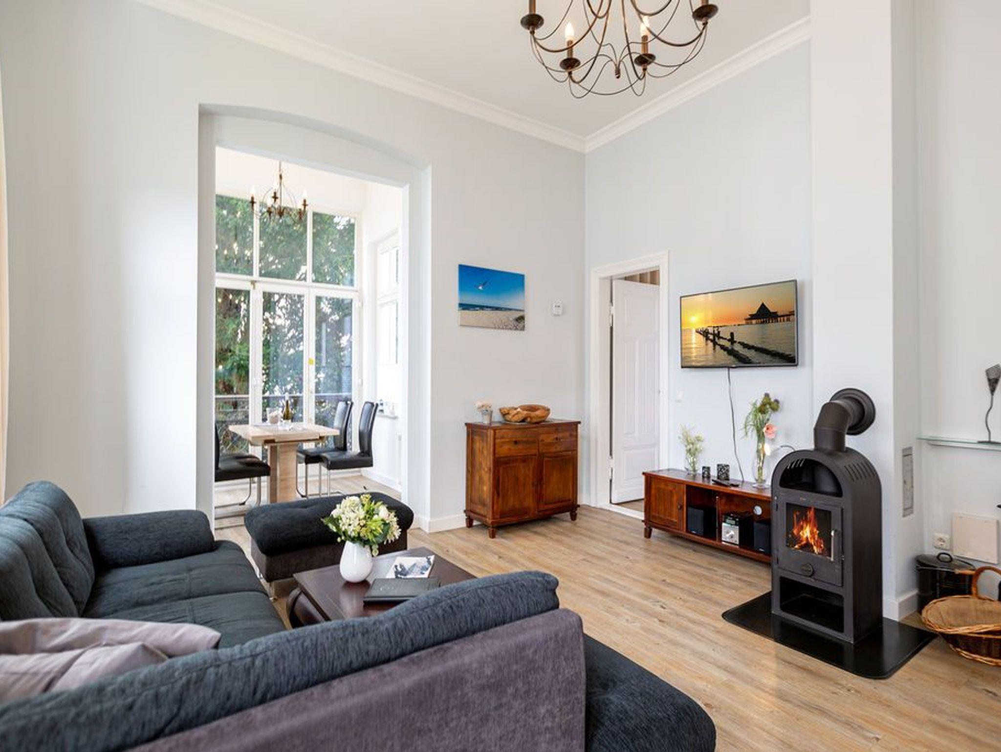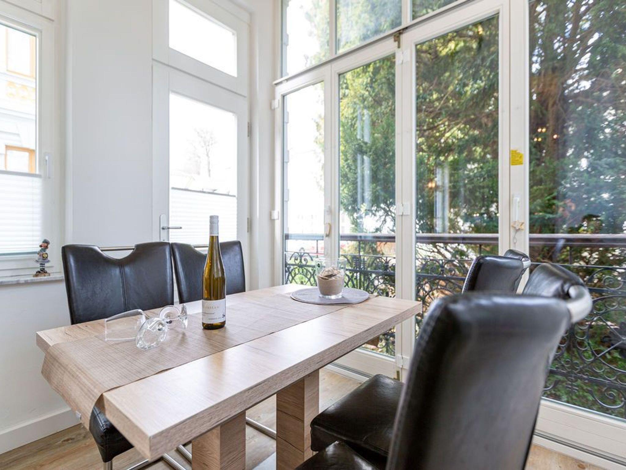 Freuen Sie sich auf eine neu gestaltete 2-Raum-Ferienwohnung (50 qm) im Erdgeschoss der historischen Villa Lucie-Else. Das modern eingerichtete Domizil für 2 Personen gestaltet Ihren Urlaub vom Moment Ihrer Ankunft komfortabel und erholsam zugleich. Der helle Wohnbereich ist mit einer bequemen Sitzgruppe, Flat-TV und Kaminofen ausgestattet, der besonders in der kühlen Jahreszeit für behagliche Stunden sorgt. Auch die offene, komplett ausgestattete Küchenzeile findet sich hier. In der vorgelagerten, verglasten Loggia befindet sich der Essplatz, von hier hat man Zugang zur kleinen Süd-West Terrasse mit Gartenmöbeln. Das Schlafzimmer mit Doppelbett (1,75 m x 2,00 m) verfügt über einen zusätzlichen Flat-TV. Das Bad ist mit Dusche und WC ausgestattet. Ein Pkw-Stellplatz (gekennzeichnet mit Lucie Else 03) steht am Haus zur Verfügung. Das Wlan in dieser Wohnung ist kostenlos nutzbar.