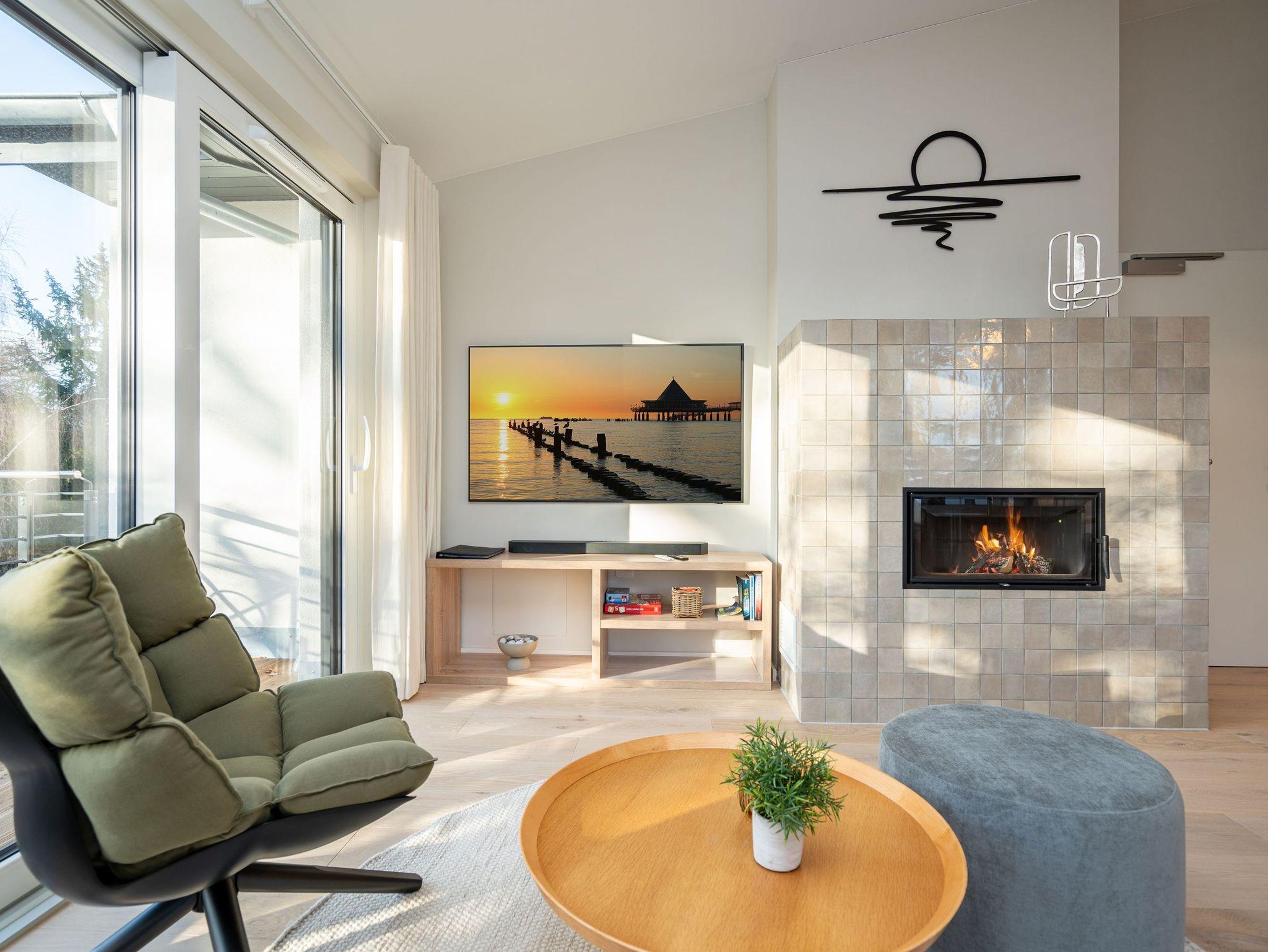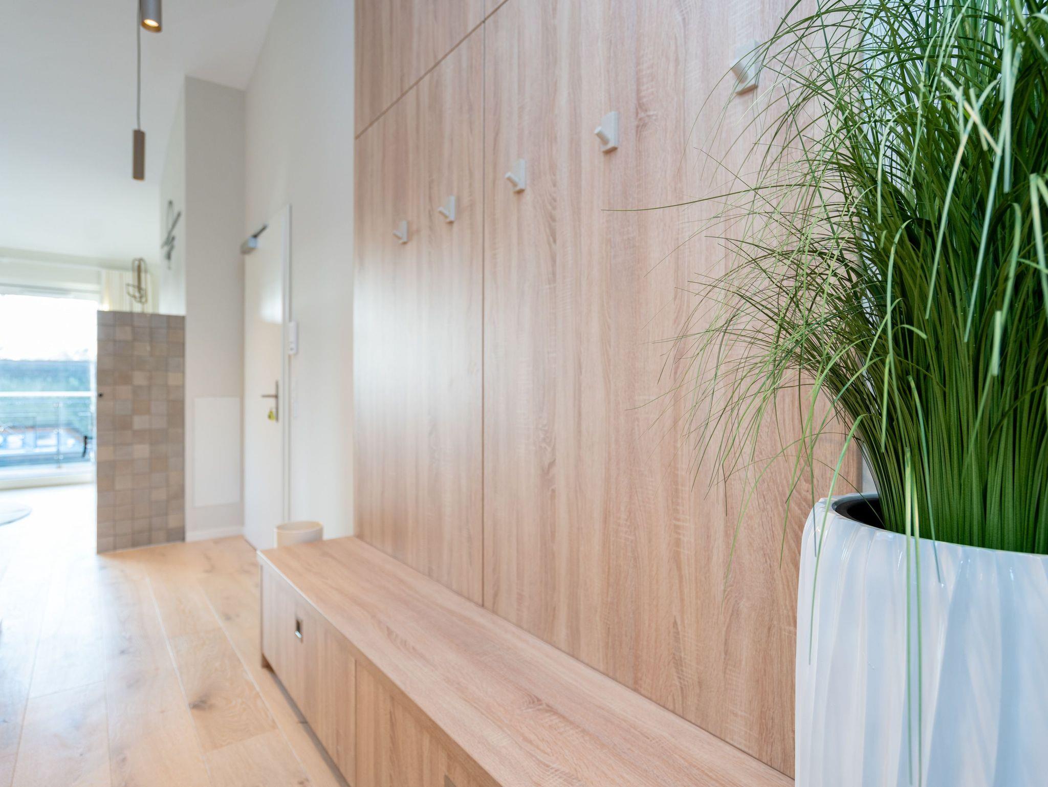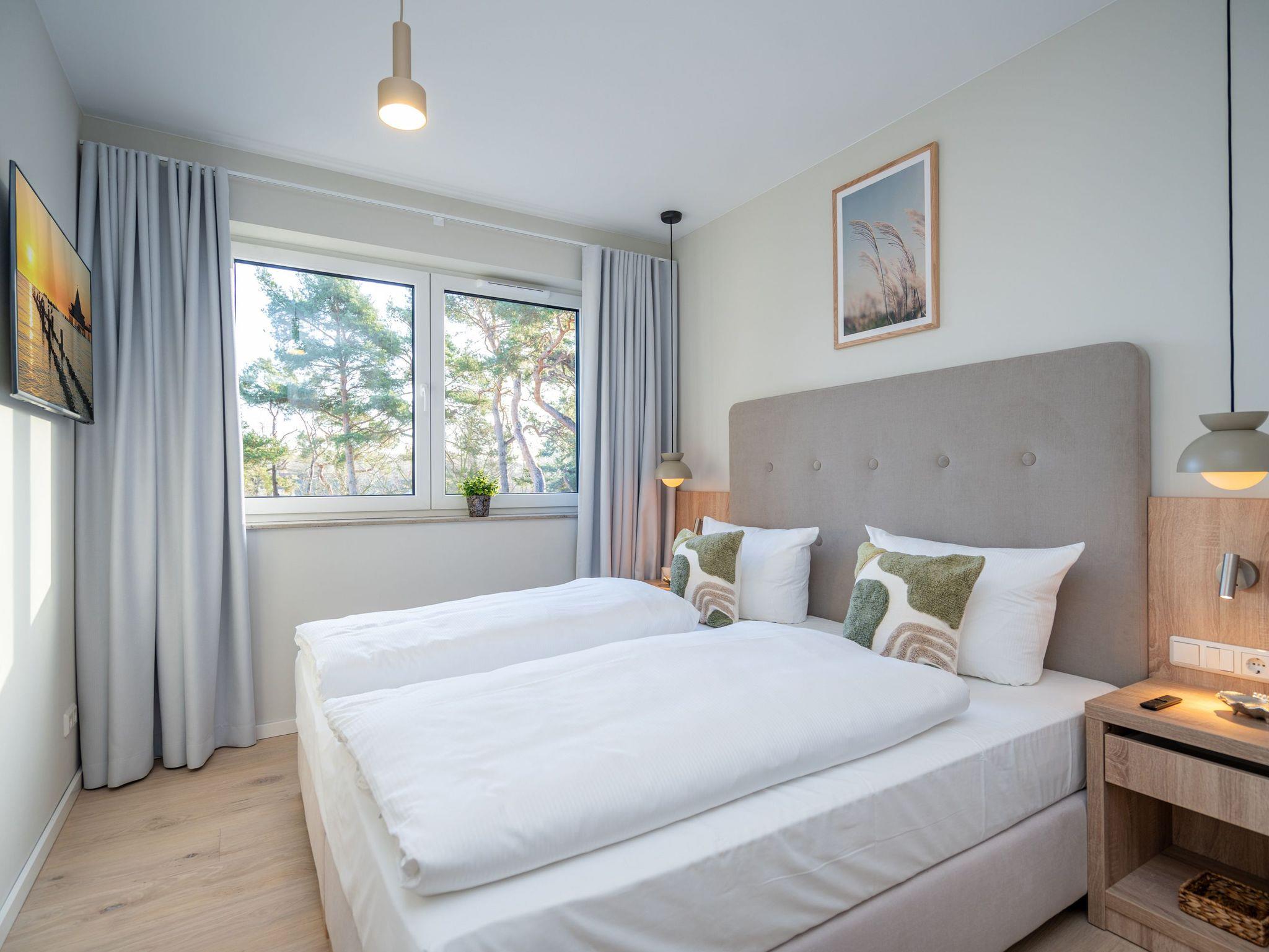 Willkommen im Quartier Maxim ? App. 9, einem stilvollen 3-Raum-Appartement in der 2. Etage, das auf 68 qm Platz für bis zu 4 Personen bietet. Hier erwartet Sie eine perfekte Kombination aus Komfort, Eleganz und durchdachter Ausstattung für unvergessliche Urlaubstage. Der lichtdurchflutete Wohnbereich lädt mit einer gemütlichen Sitzgruppe, einem Kaminofen und einem beeindruckenden 65-Zoll-Flat-TV zu entspannten Stunden ein. Genießen Sie die frische Luft und den Ausblick auf dem Süd-West-Balkon (ca. 7 qm), der mit komfortablen Gartenmöbeln ausgestattet ist ? der perfekte Ort für ein Frühstück oder ein Glas Wein zum Sonnenuntergang. Die offene Küchenzeile lässt keine Wünsche offen. Sie ist mit einem 4-Platten-Cerankochfeld, einem Backofen mit Mikrowellenfunktion, einem geräumigen Kühlschrank sowie einem Gefrierschrank mit drei Fächern ausgestattet. Ideal, um auch im Urlaub kulinarische Highlights zu zaubern! Erholsame Nächte versprechen die beiden stilvollen Schlafzimmer, die jeweils mit luxuriösen Boxspring-Doppelbetten (1,80 m x 2,00 m), Kleiderschränken und Flat-TVs ausgestattet sind. Ein besonderes Highlight: Eines der Schlafzimmer verfügt über direkten Zugang zum Tageslicht-Masterbad, das mit Dusche, Waschtisch und WC besticht. Ein zweites, innenliegendes Bad bietet zusätzlichen Komfort und punktet mit einer Sauna, Dusche und WC ? ein wahres Wellness-Erlebnis. Kostenfreies WLAN sorgt dafür, dass Sie auch im Urlaub jederzeit vernetzt bleiben können. In den Sommermonaten genießen Sie zusätzlich die kostenfreie Nutzung eines Strandkorbs direkt am Strand ? perfekte Voraussetzungen für entspannte Tage an der Küste. Ein PKW-Stellplatz in der Tiefgarage steht ebenfalls zur Verfügung, mit einer kostenpflichtigen Lademöglichkeit für E-Autos. Freuen Sie sich auf ein Urlaubserlebnis, das Komfort, Entspannung und moderne Ausstattung harmonisch vereint ? Quartier Maxim ? App. 9 erwartet Sie!