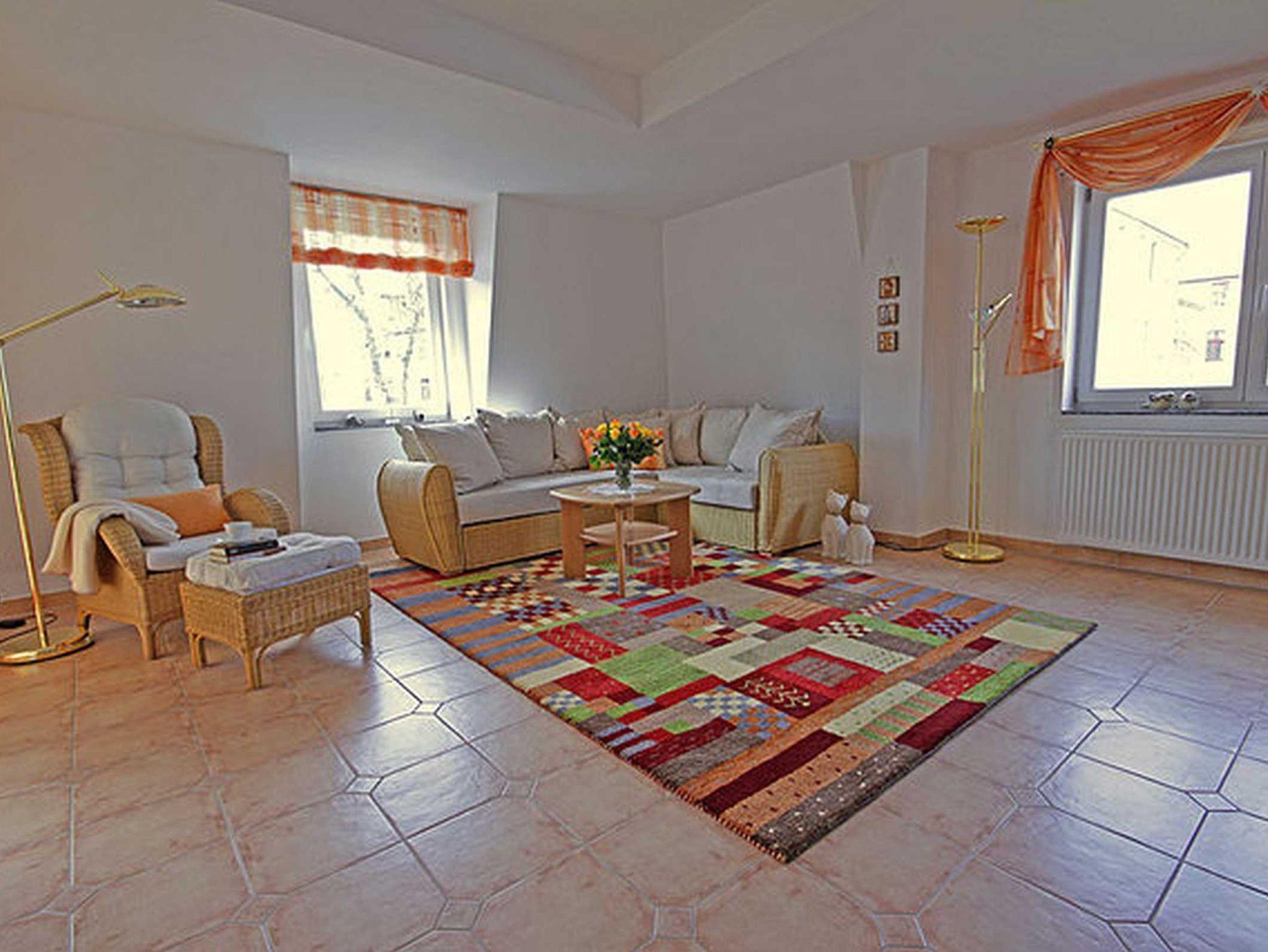 Die individuell gestaltete Dachgeschosswohnung bietet eine Logia (Süd/West), ein Schlafzimmer mit Doppelbett, ein großes Wohnzimmer mit einer Schlafgelegenheit für weitere zwei Personen sowie eine luxeriöse Wohnküche und ist modern eingerichtet. Für diese Ferienwohnung steht ein Garagenplatz kostenfrei im Haus zur Verfügung. Das WLAN-Netzwerk steht Ihnen kostenfrei zur Verfügung. Für Fahrräder gibt es einen Fahrradkeller. Im Keller stehen Ihnen eine Waschmaschine und ein Trockner im Münzbetrieb zur Verfügung.