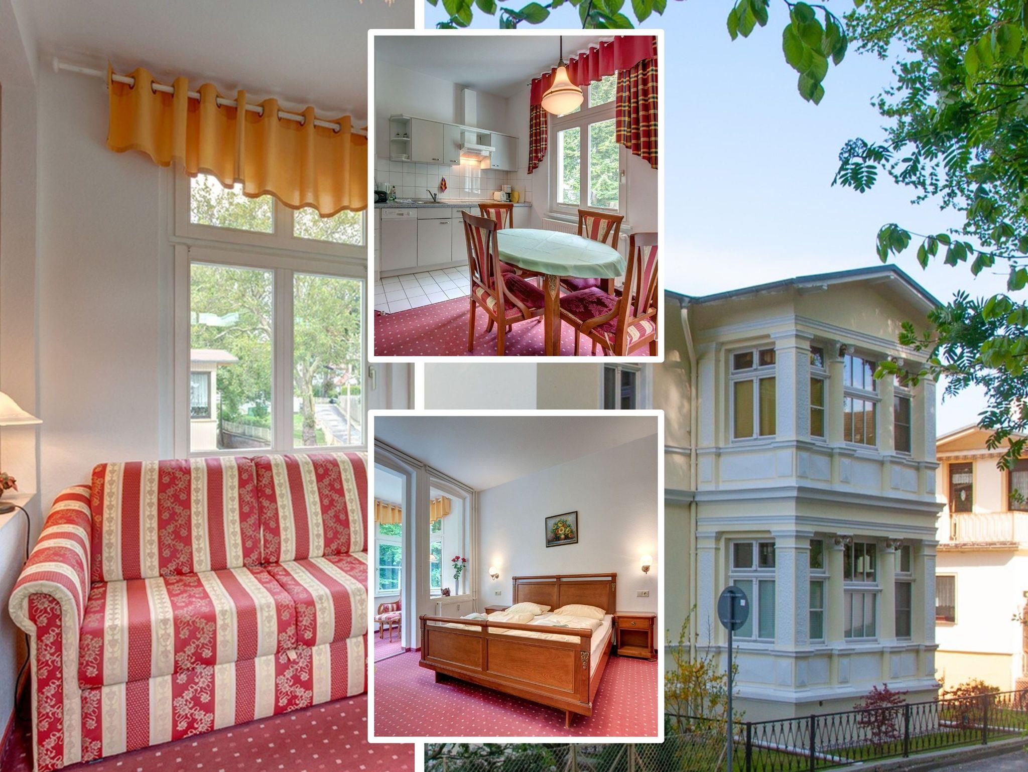In einer stilvoll modernisierten Jugendstilvilla erwartet Sie diese gemütlich eingerichtete 60m² große Ferienwohnung ? ideal für bis zu 5 Personen plus Kleinkind. Die Lage ist ruhig und doch zentral: Nur wenige Gehminuten trennen Sie vom feinen Ostseestrand und dem Zentrum von Heringsdorf. WLAN ist kostenfrei.